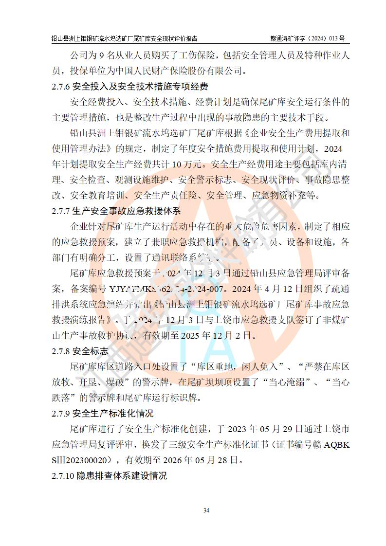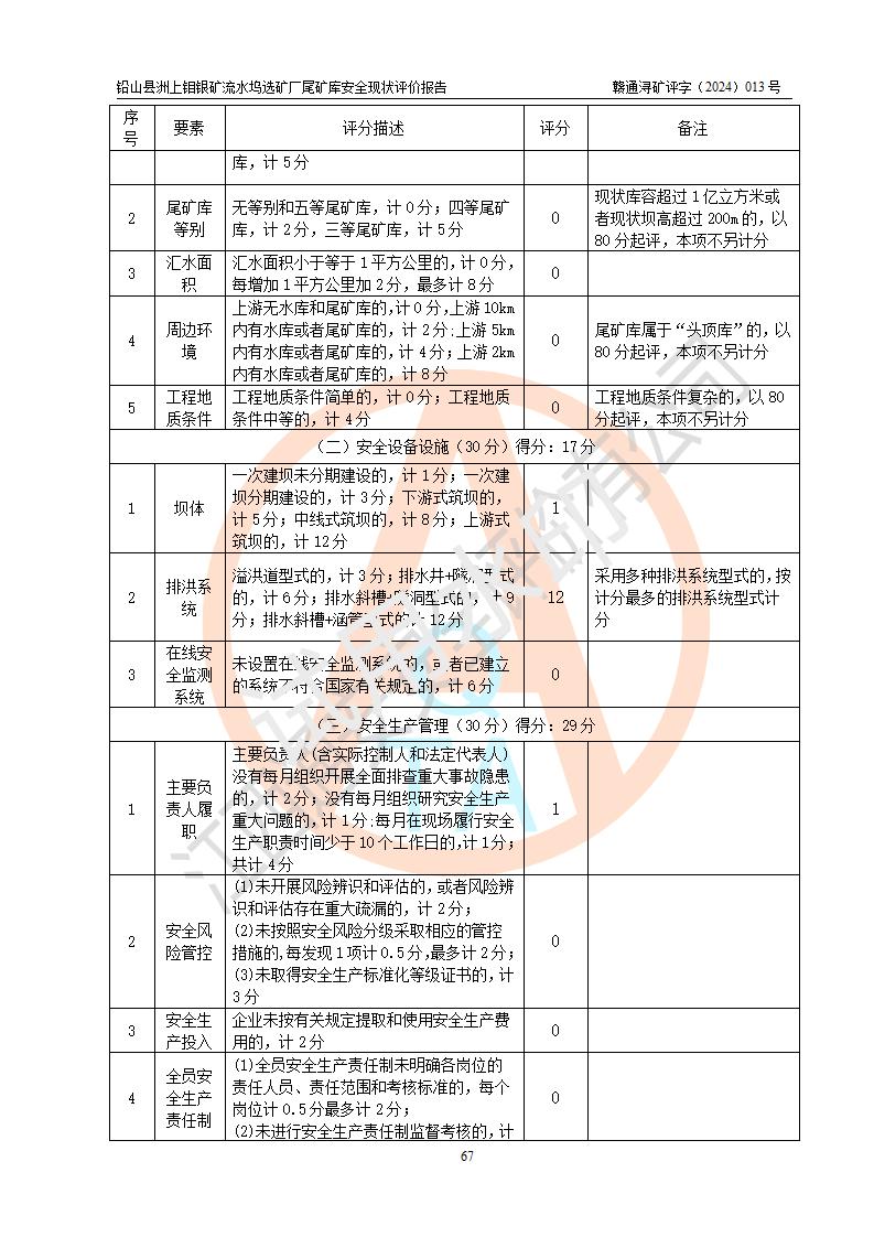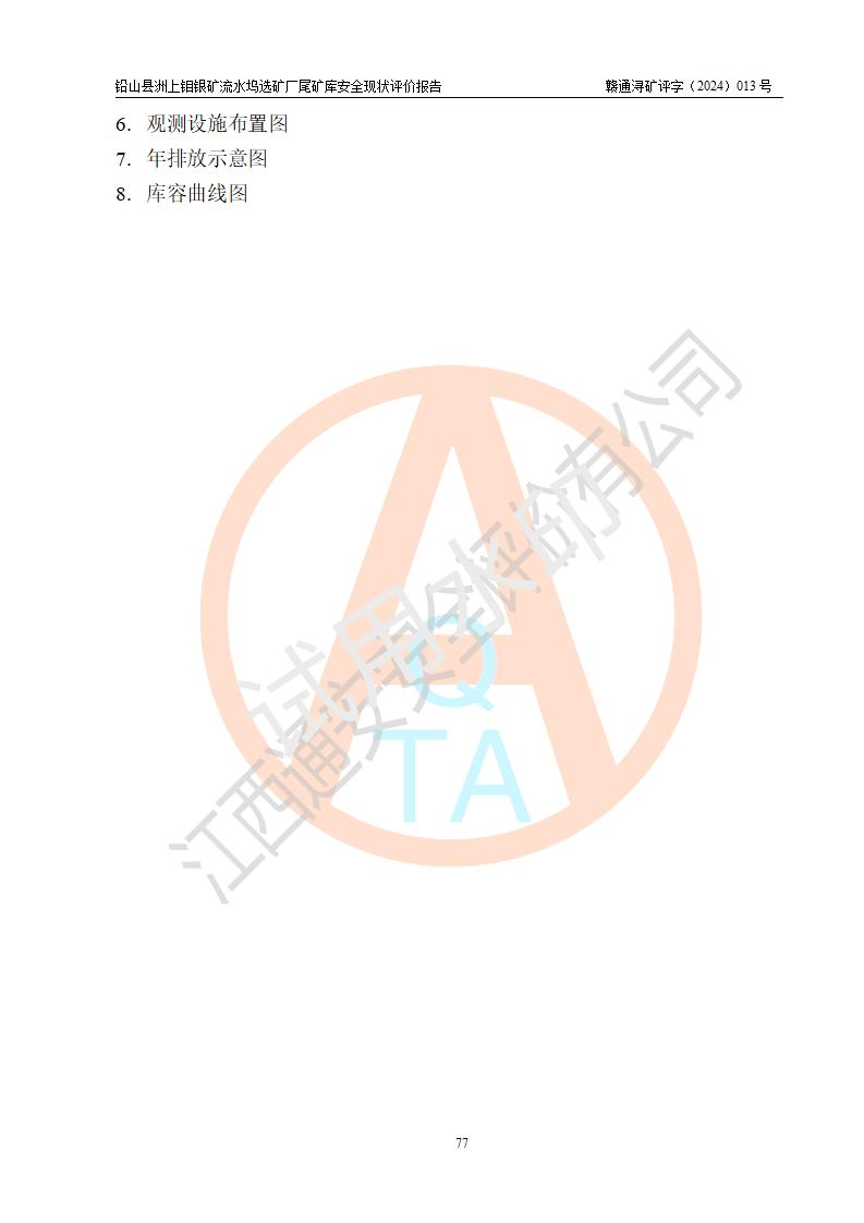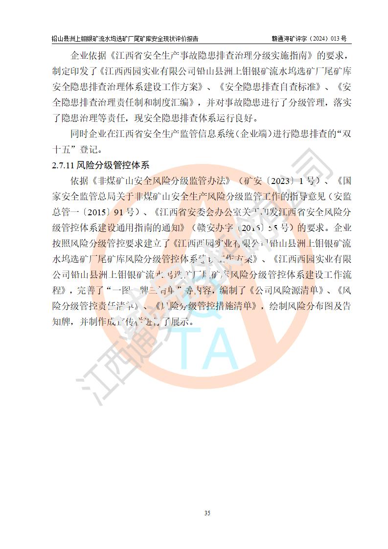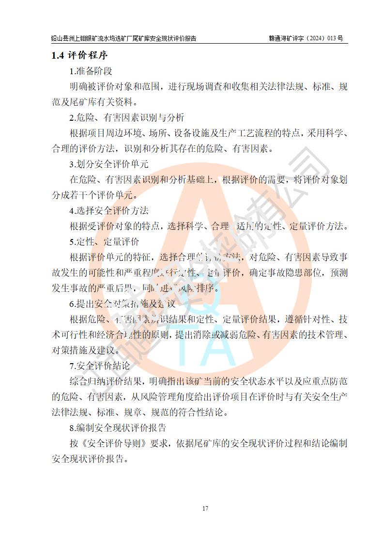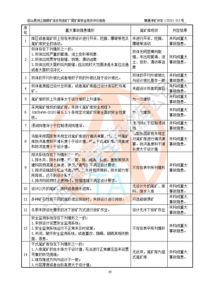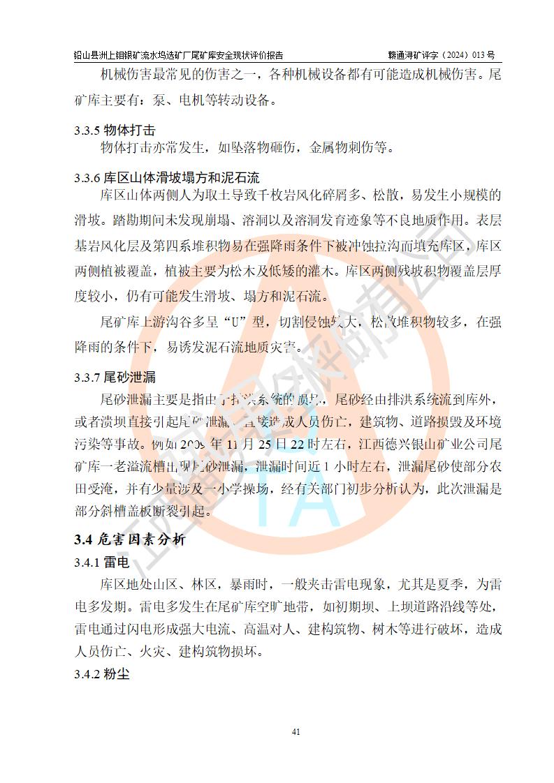 報(bào)告名稱 | 鉛山縣洲上鉬銀礦流水塢選礦廠尾礦庫(kù)安全現(xiàn)狀評(píng)價(jià)報(bào)告 | ||||||