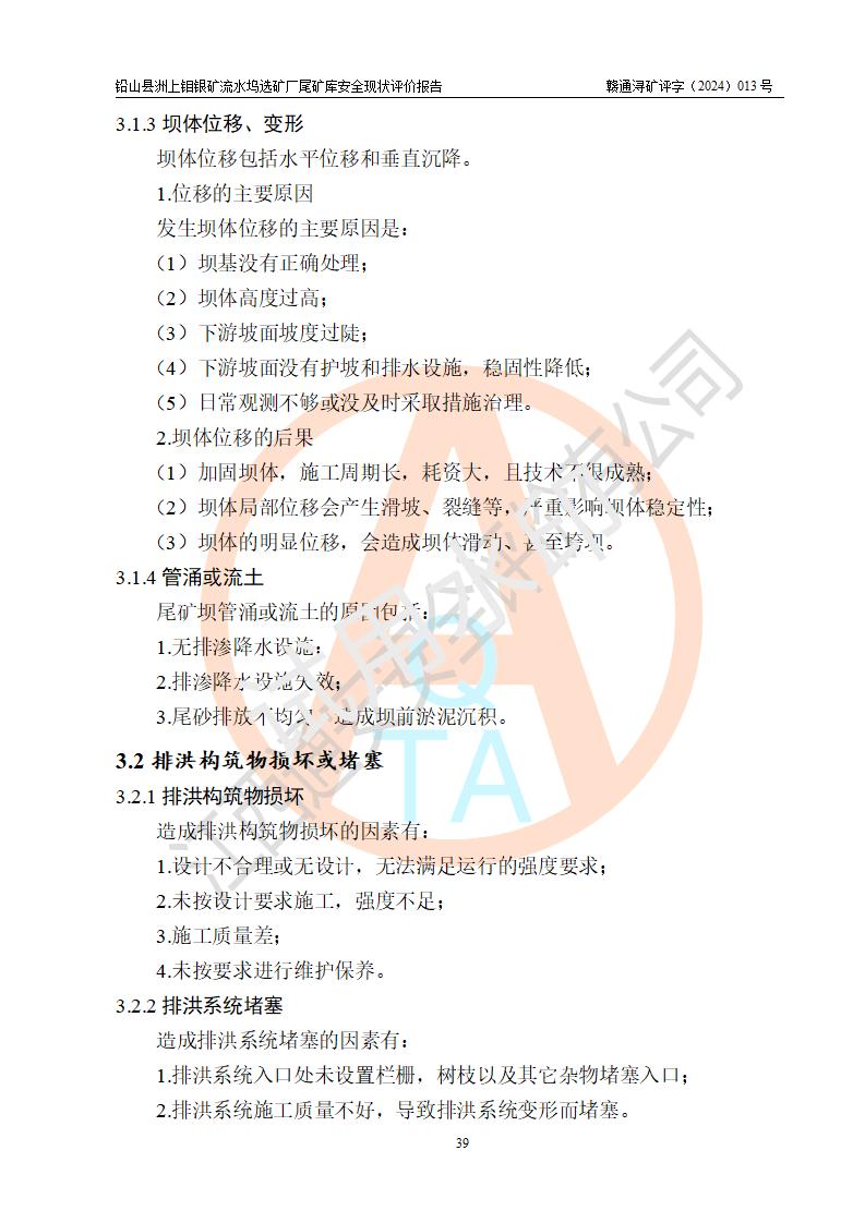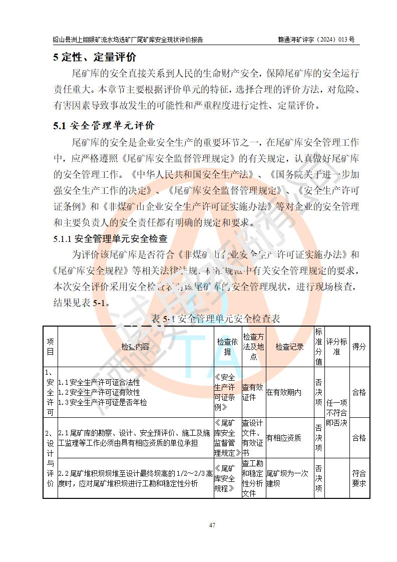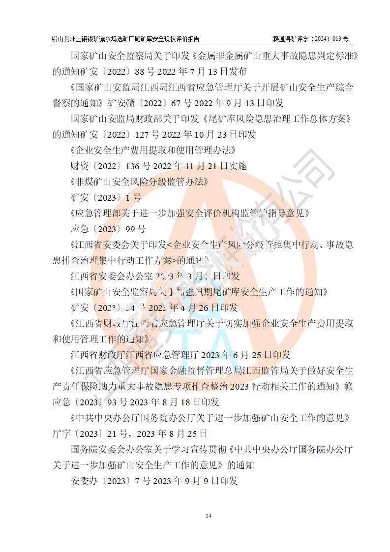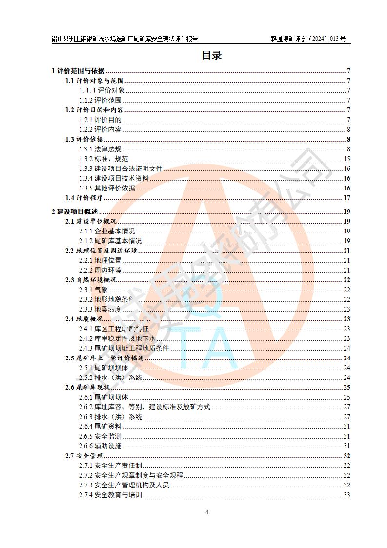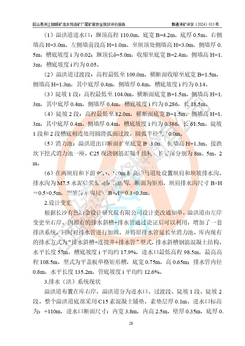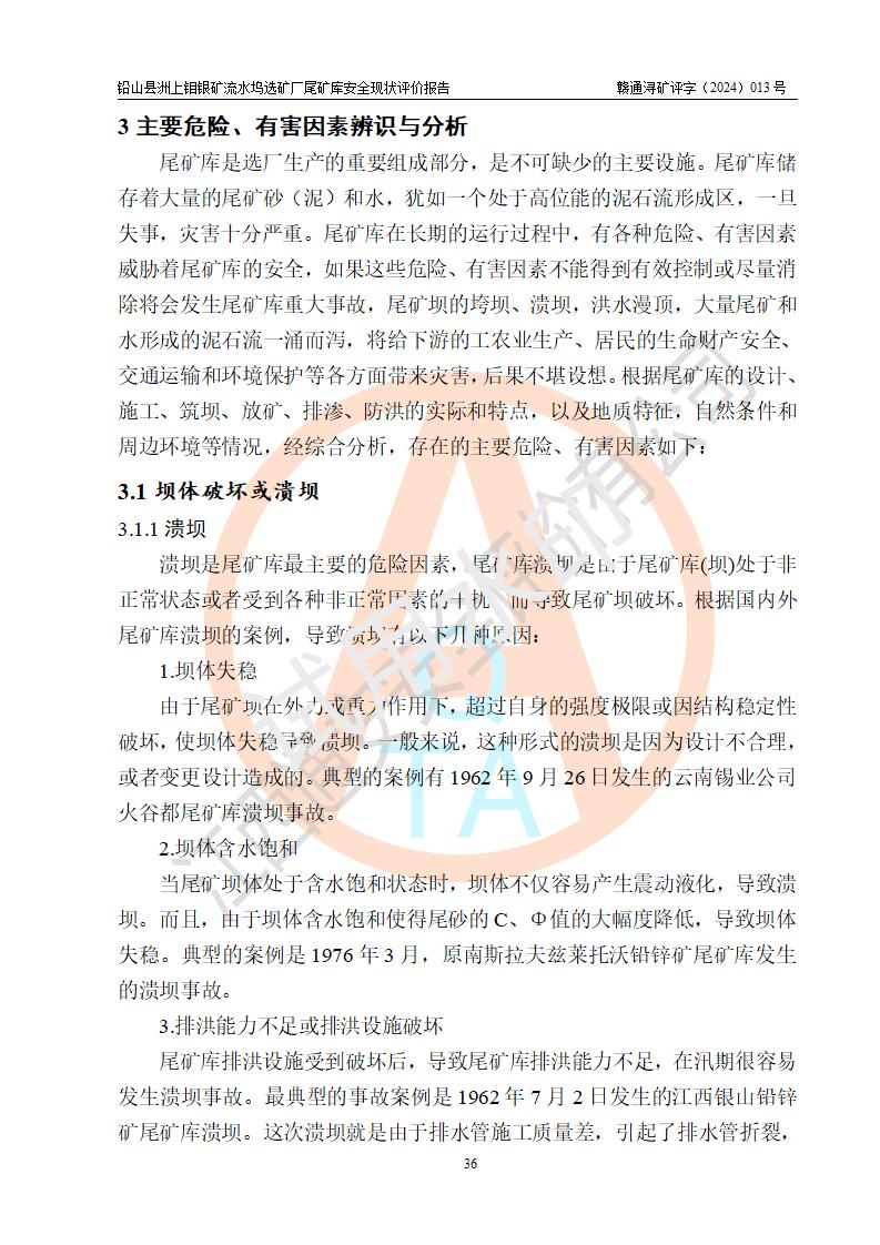 報(bào)告名稱 | 鉛山縣洲上鉬銀礦流水塢選礦廠尾礦庫(kù)安全現(xiàn)狀評(píng)價(jià)報(bào)告 | ||||||