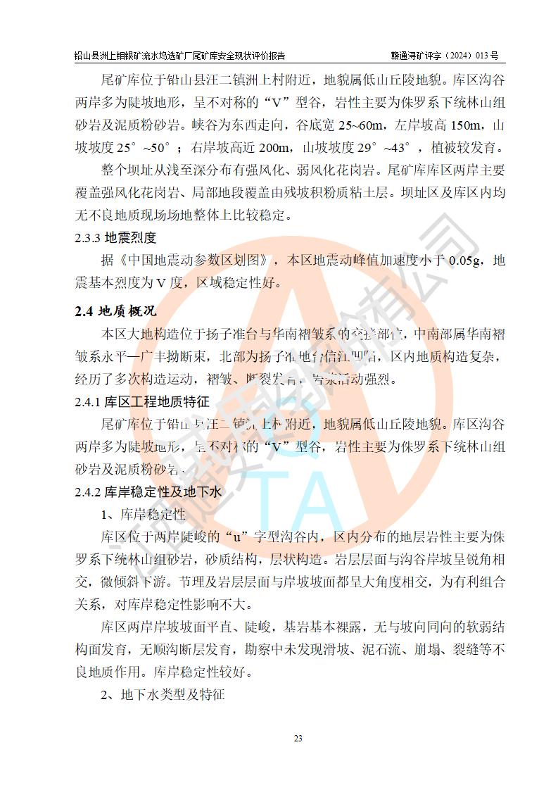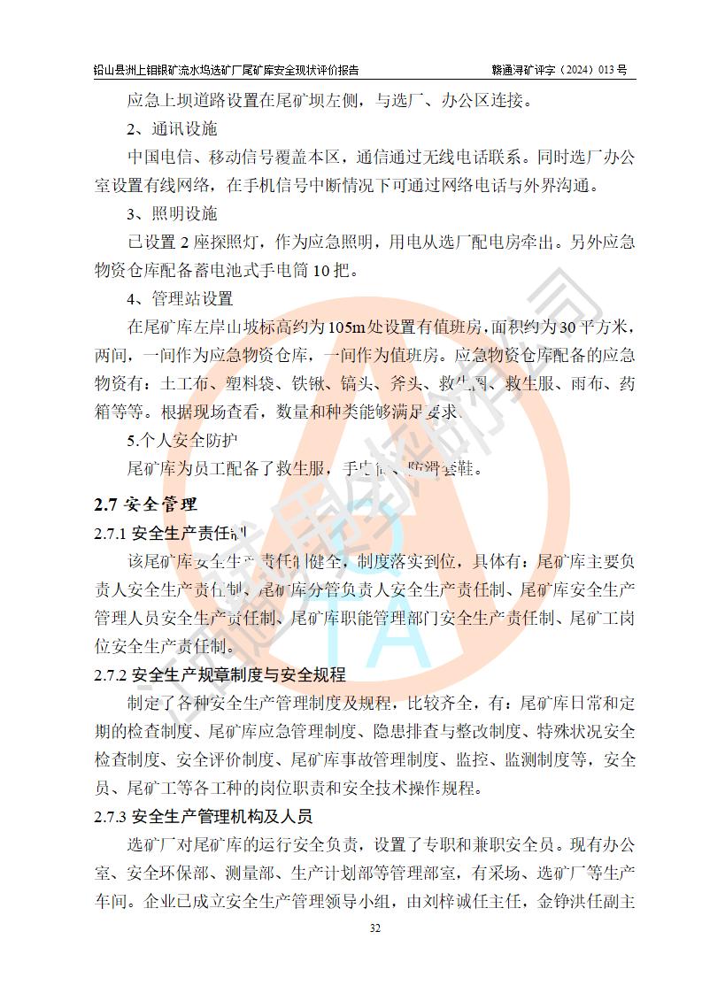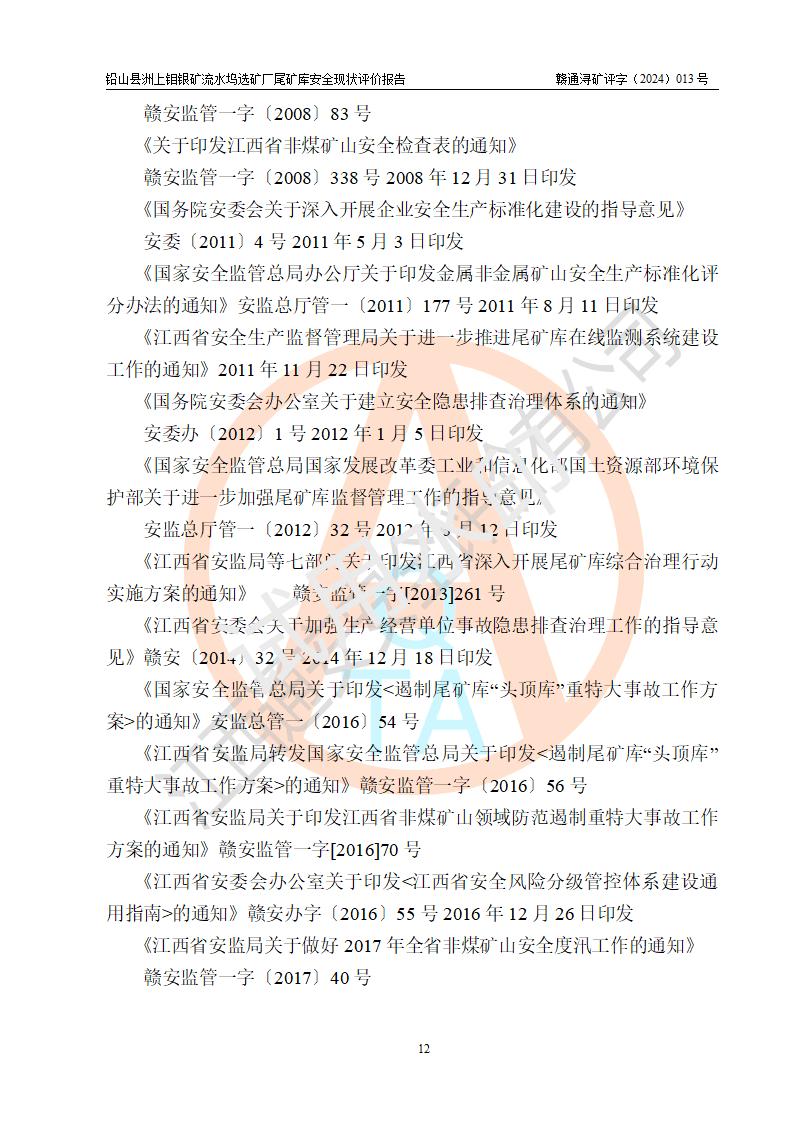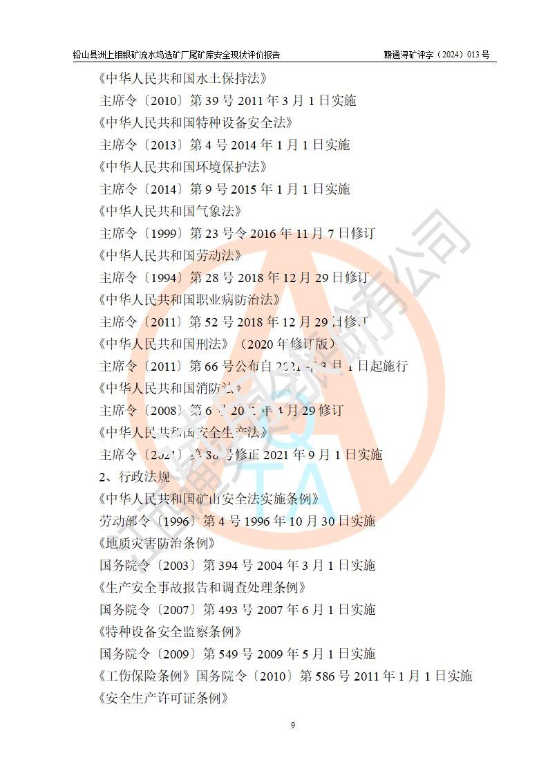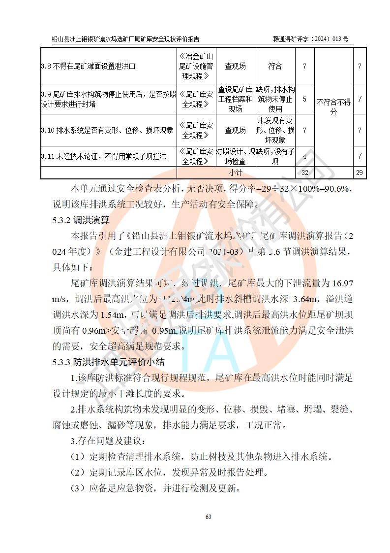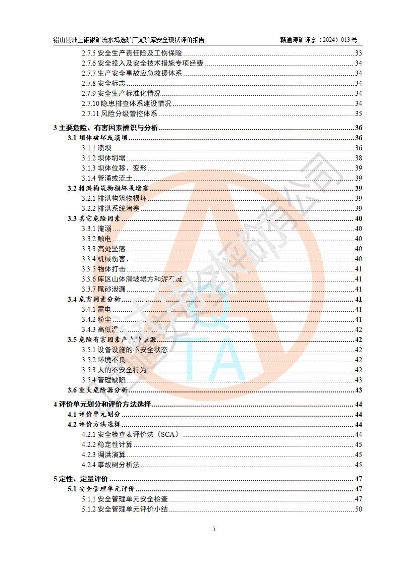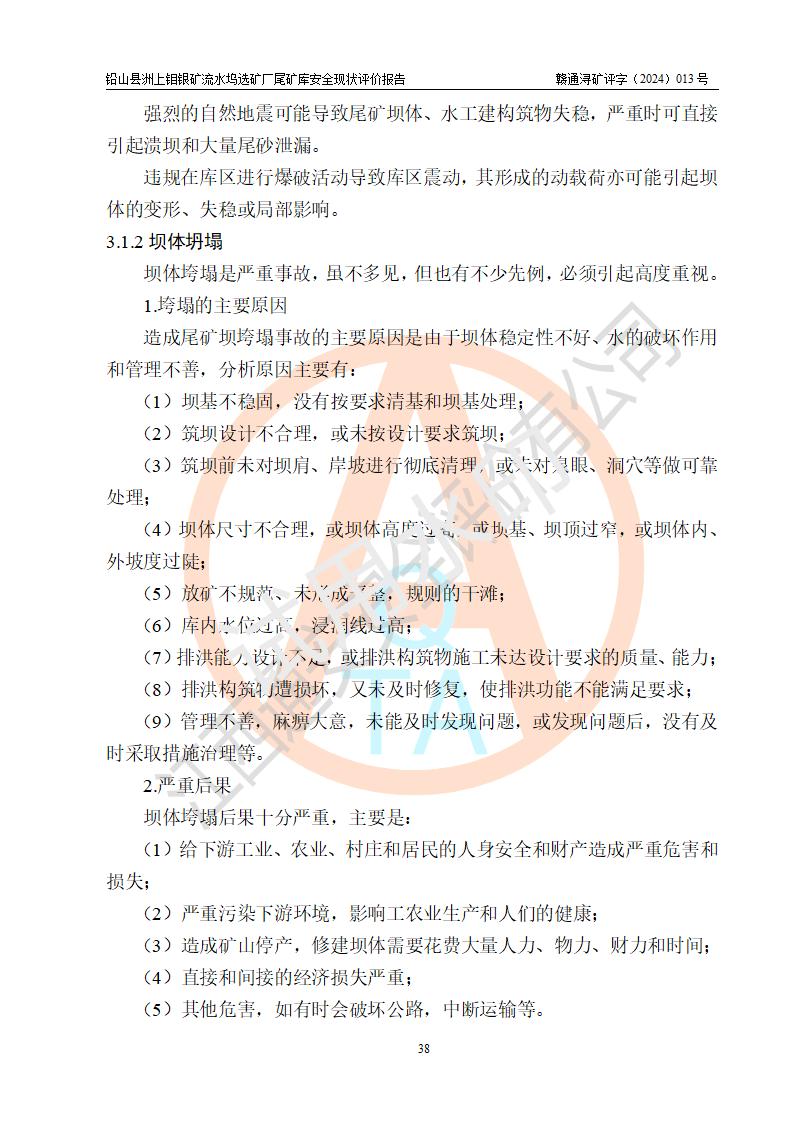 報(bào)告名稱 | 鉛山縣洲上鉬銀礦流水塢選礦廠尾礦庫(kù)安全現(xiàn)狀評(píng)價(jià)報(bào)告 | ||||||