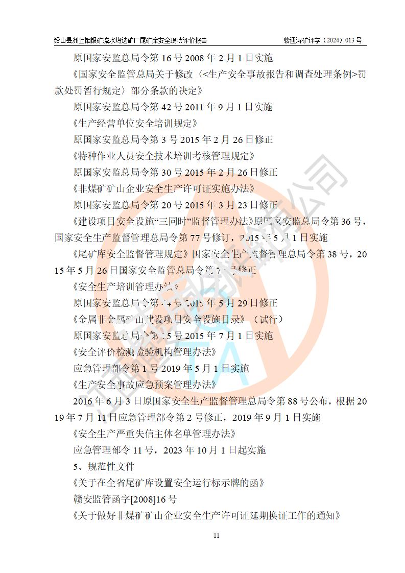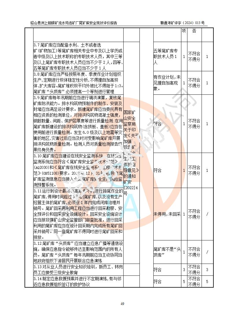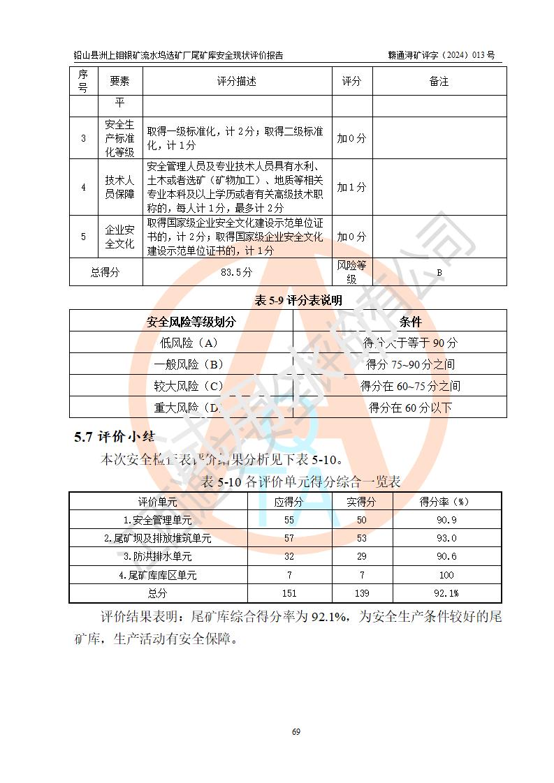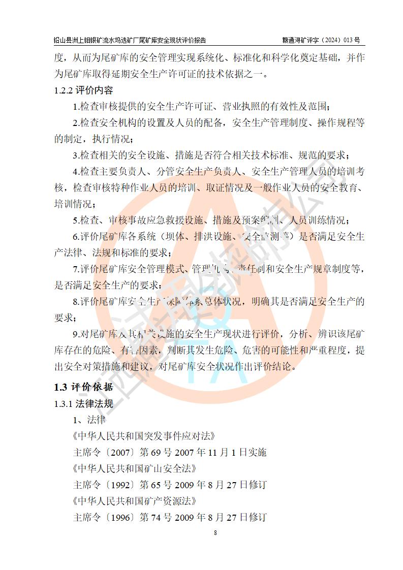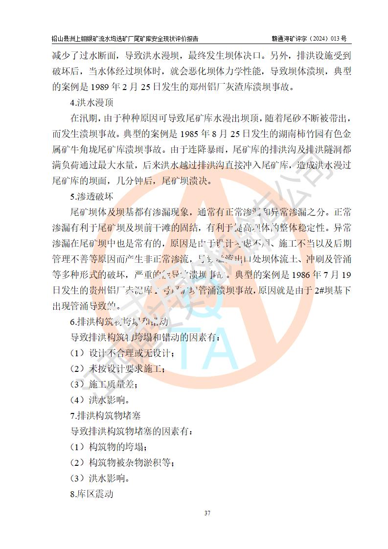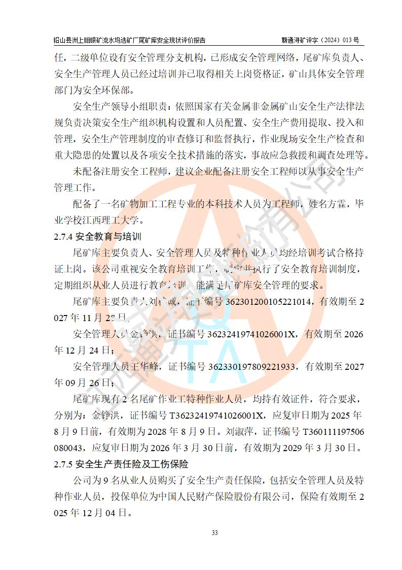 報(bào)告名稱 | 鉛山縣洲上鉬銀礦流水塢選礦廠尾礦庫(kù)安全現(xiàn)狀評(píng)價(jià)報(bào)告 | ||||||