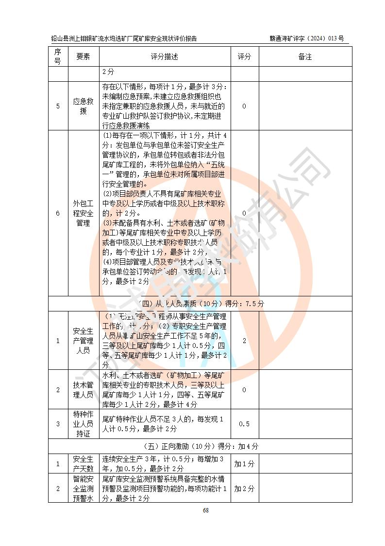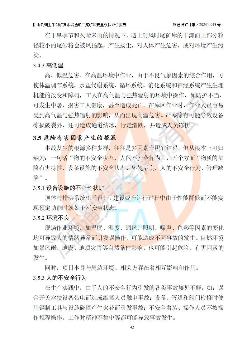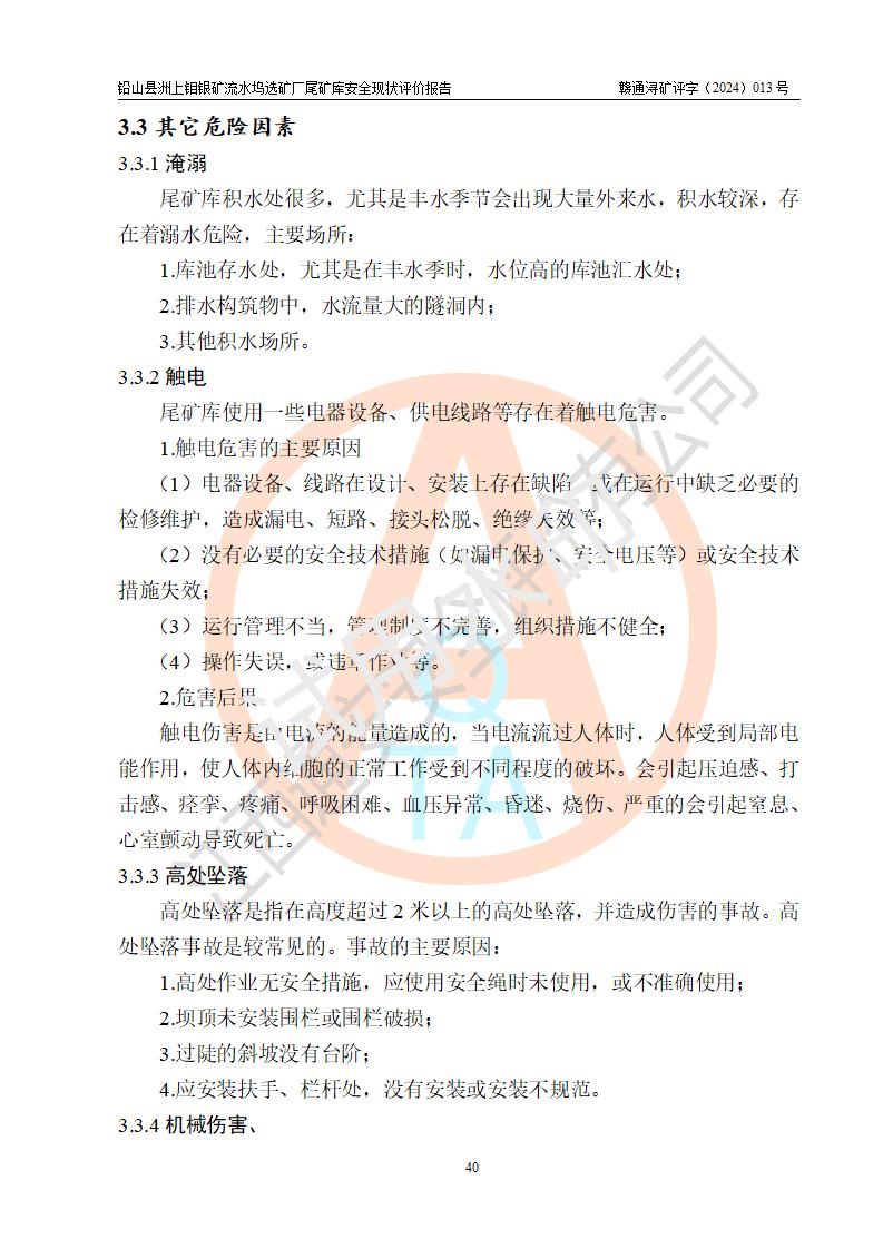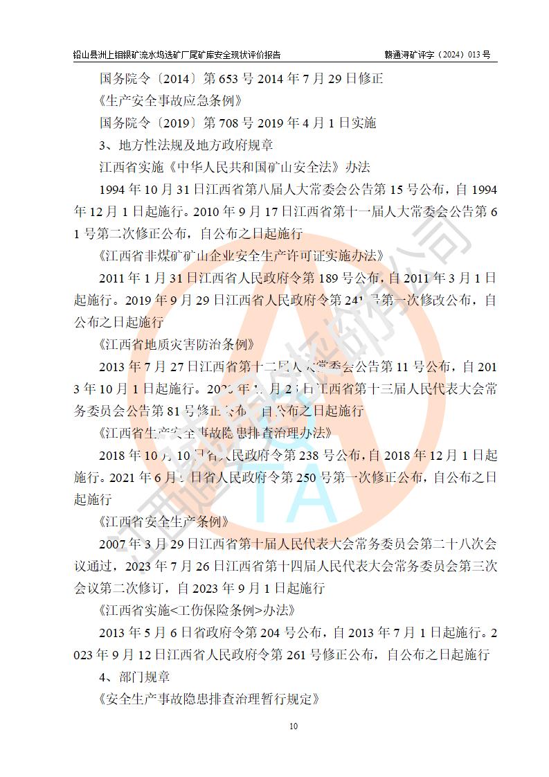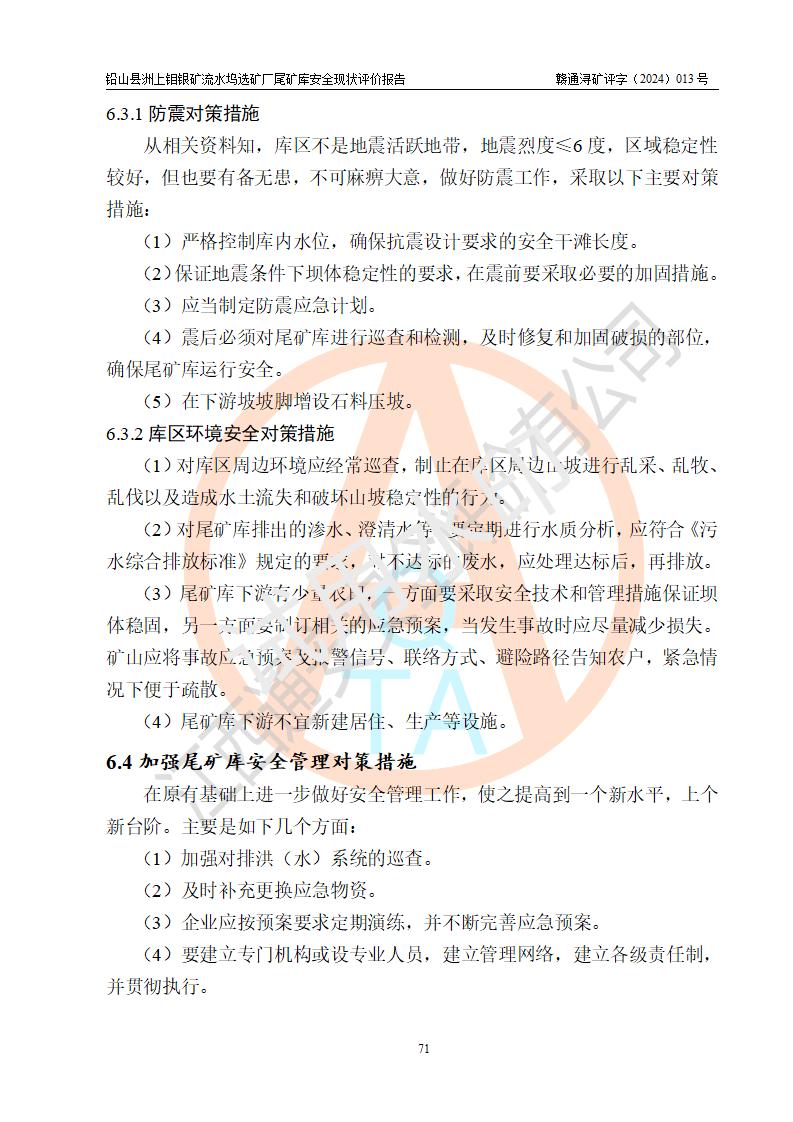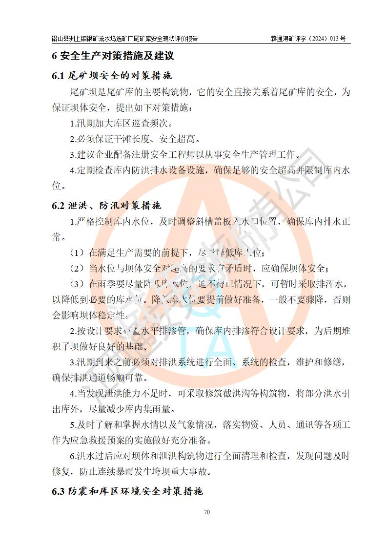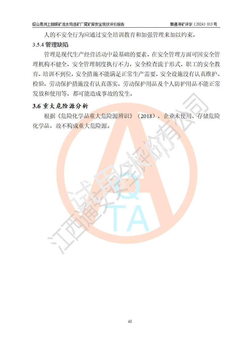 報(bào)告名稱 | 鉛山縣洲上鉬銀礦流水塢選礦廠尾礦庫(kù)安全現(xiàn)狀評(píng)價(jià)報(bào)告 | ||||||