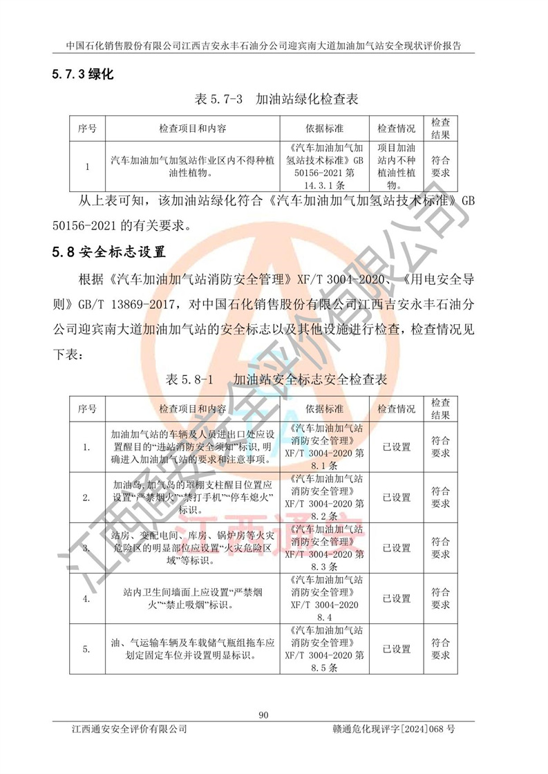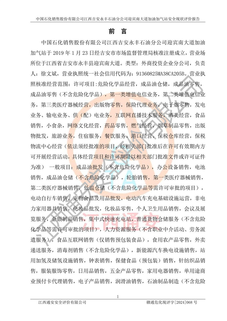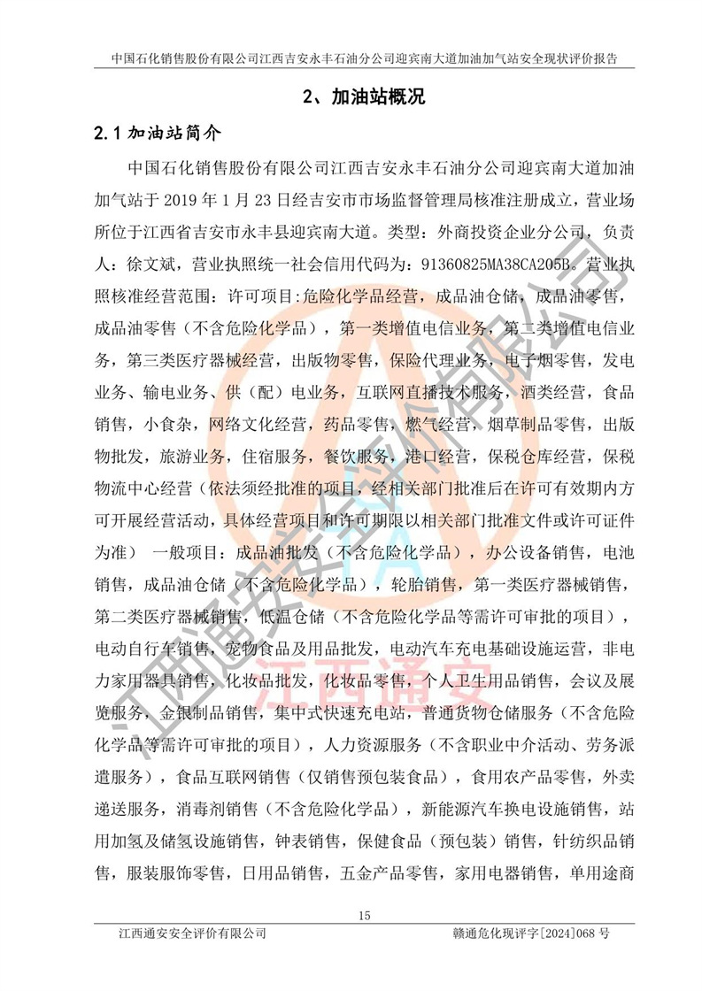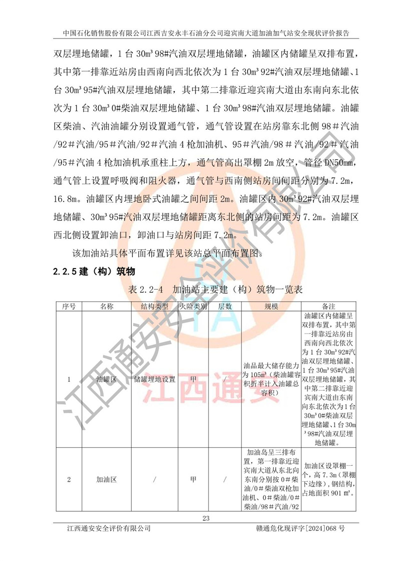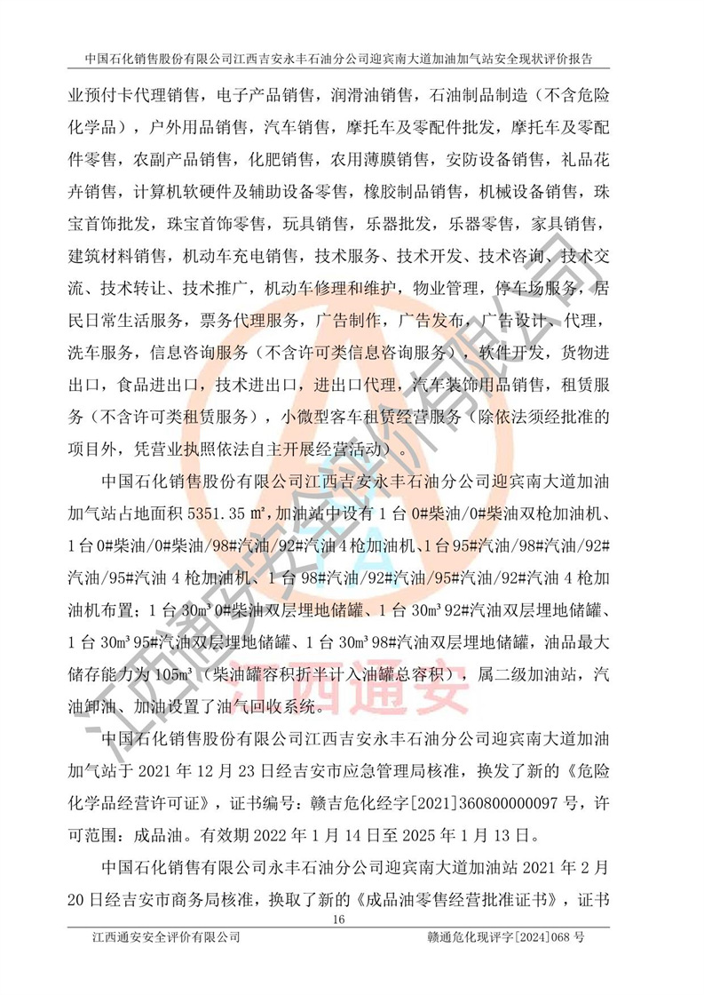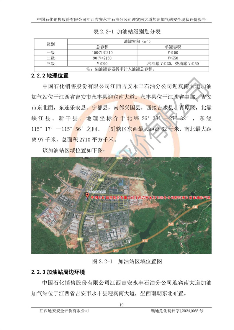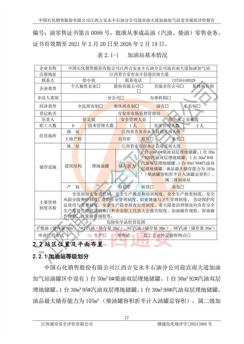 項目名稱 | 中國石化銷售股份有限公司江西吉安永豐石油分公司迎賓南大道加油加氣站 安全現(xiàn)狀評價報告 | ||||