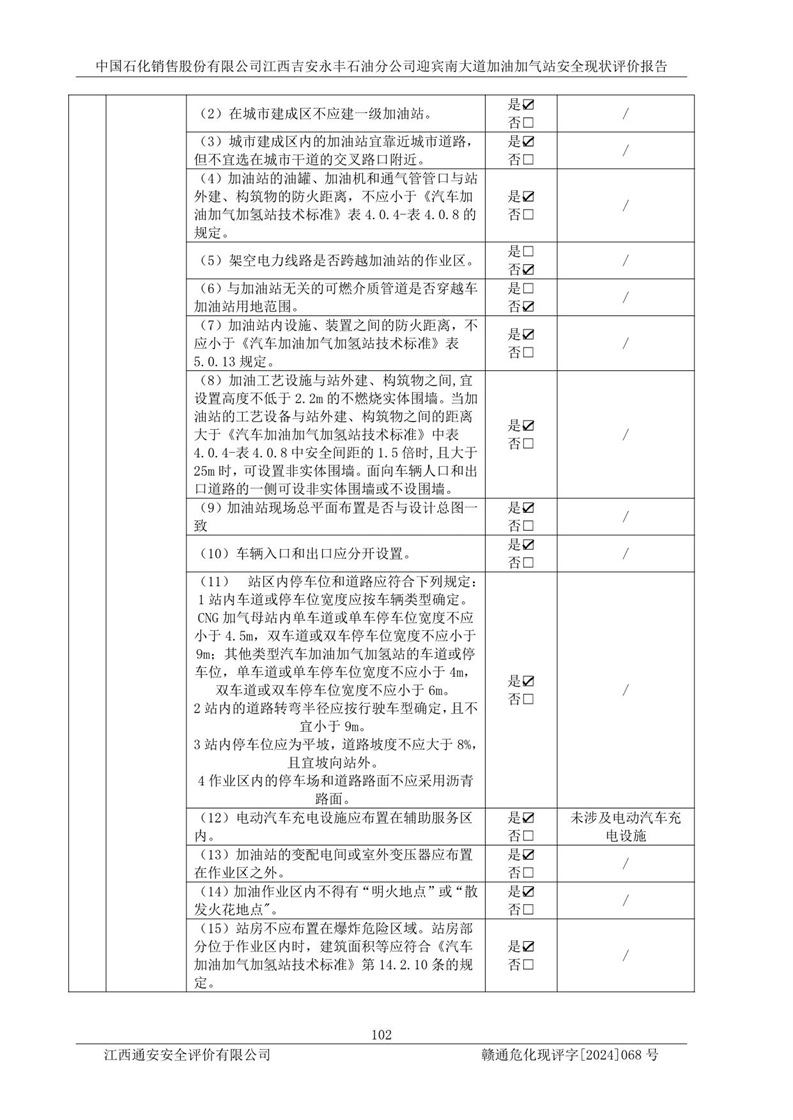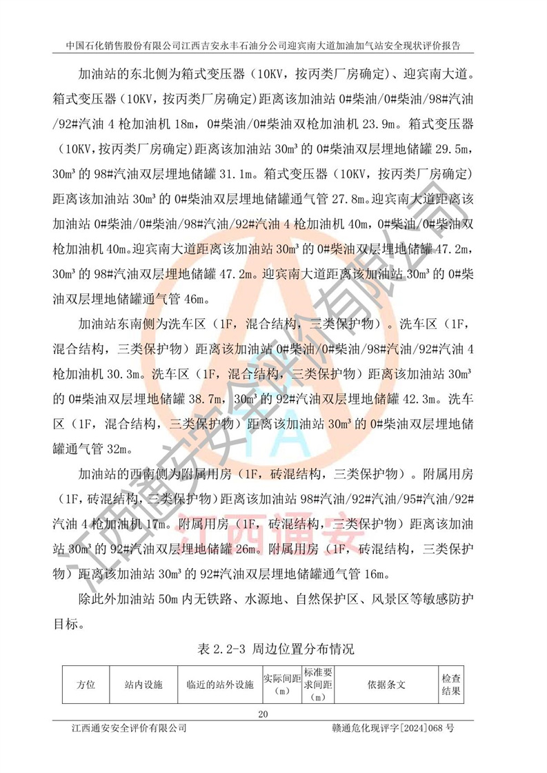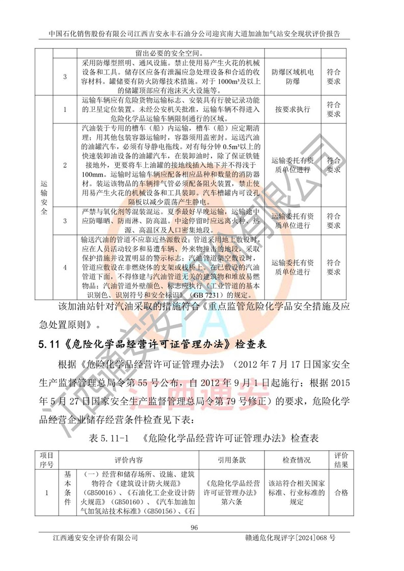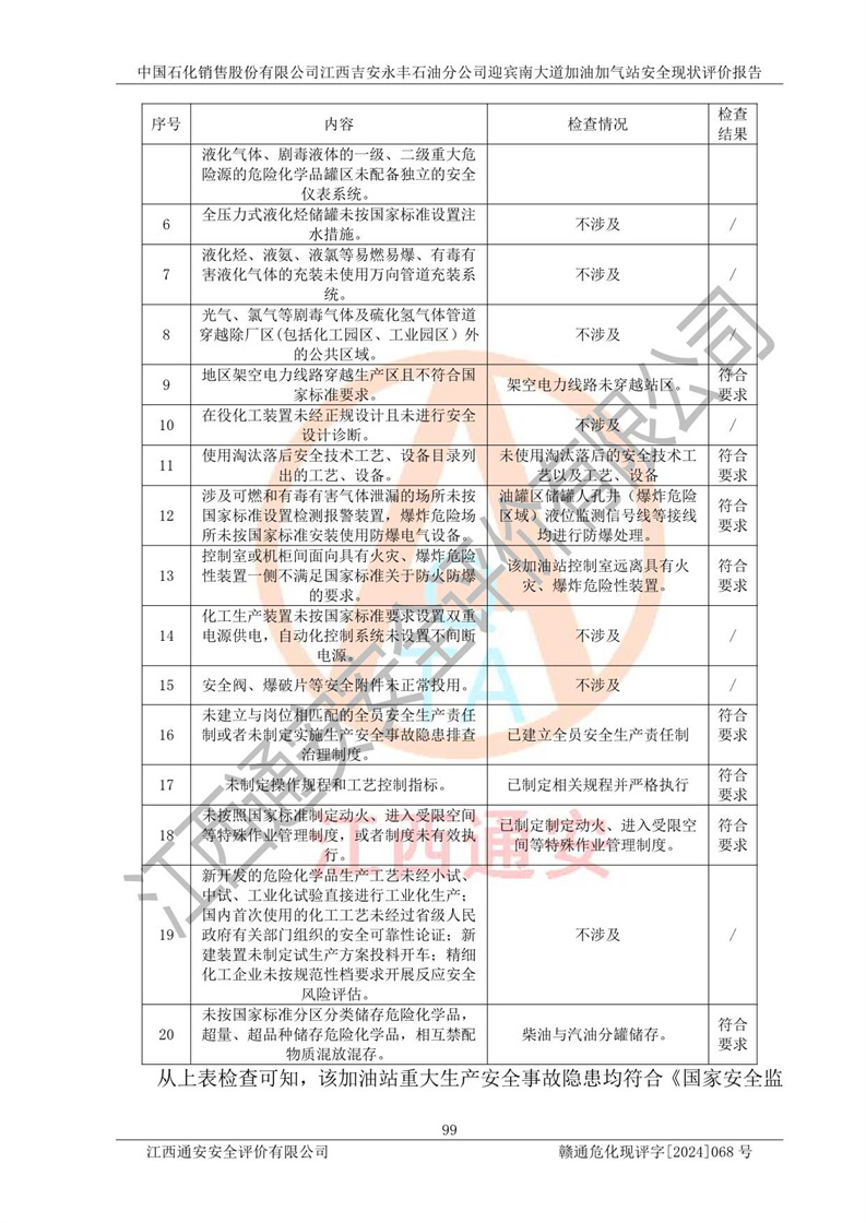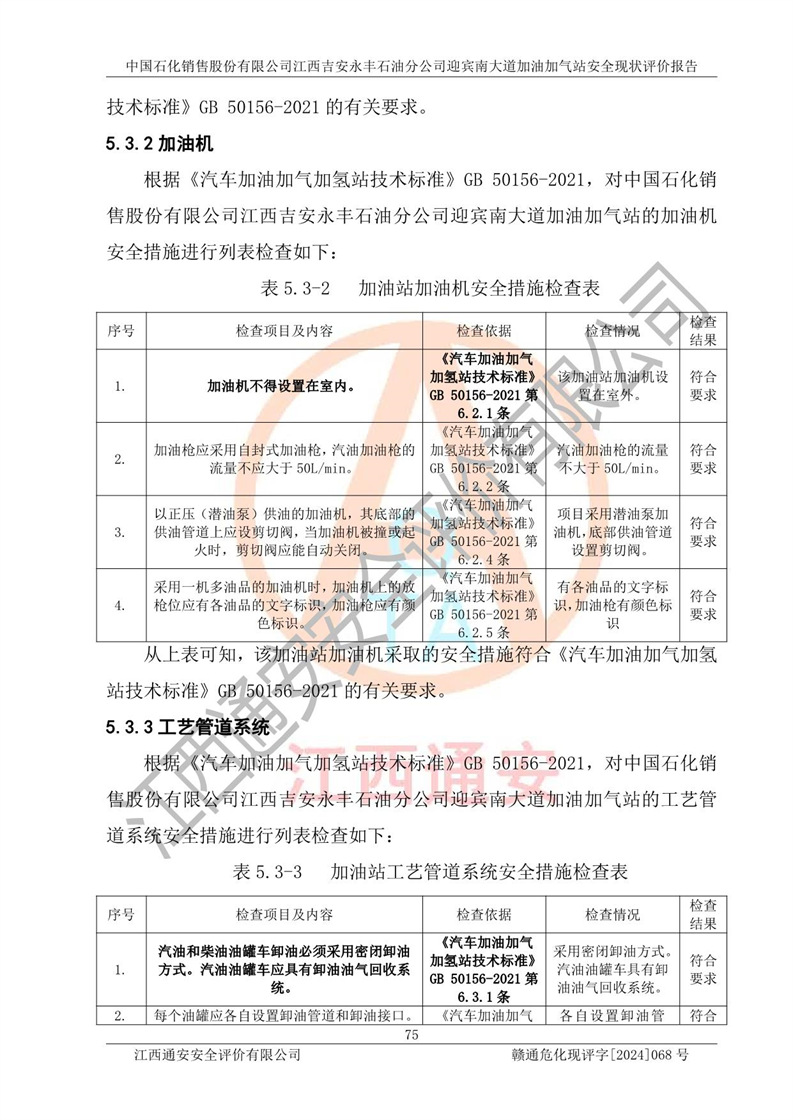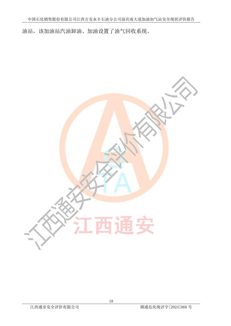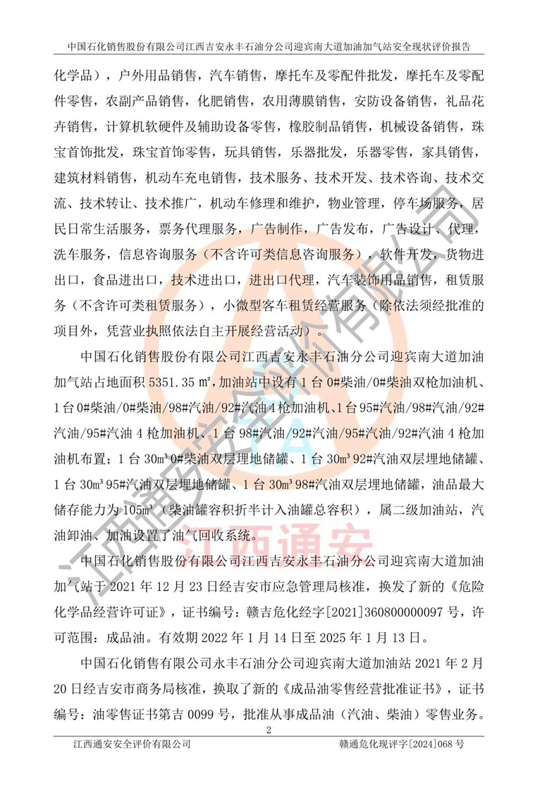 項目名稱 | 中國石化銷售股份有限公司江西吉安永豐石油分公司迎賓南大道加油加氣站 安全現(xiàn)狀評價報告 | ||||