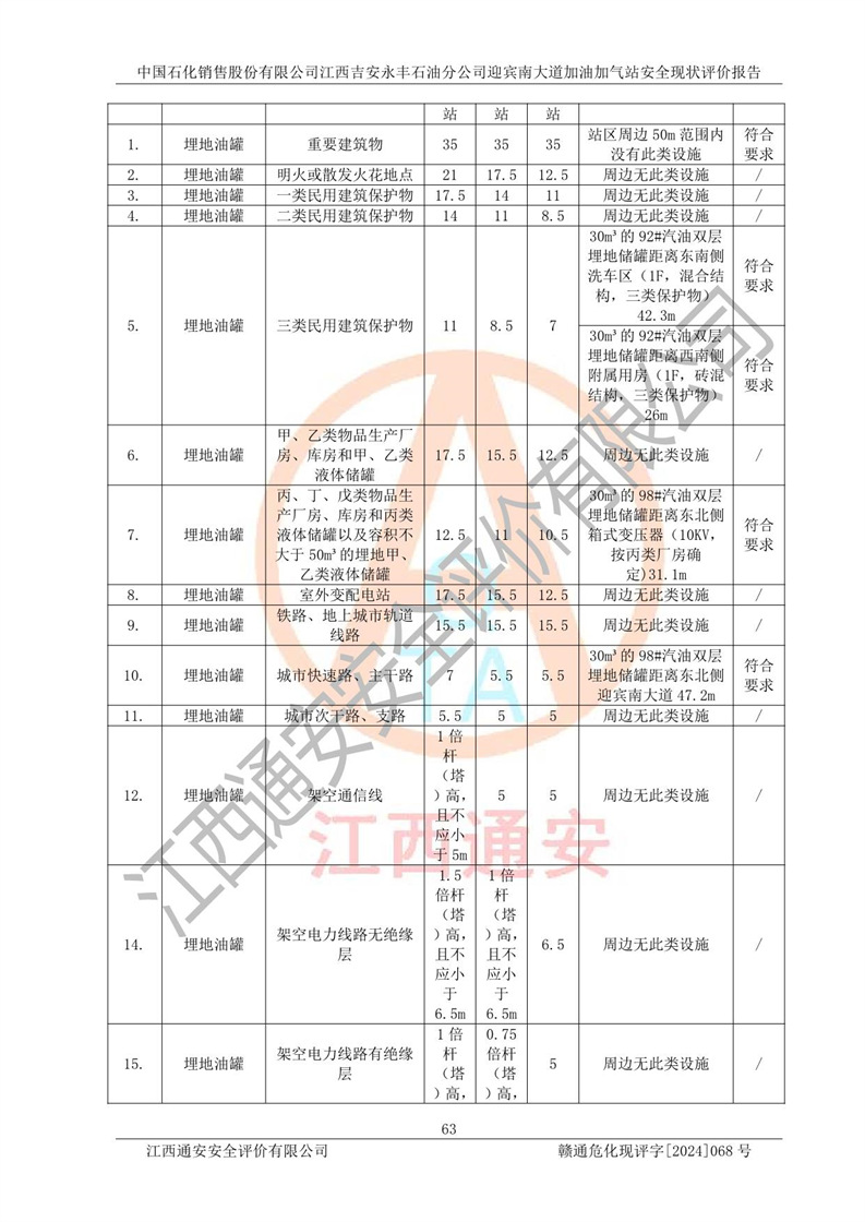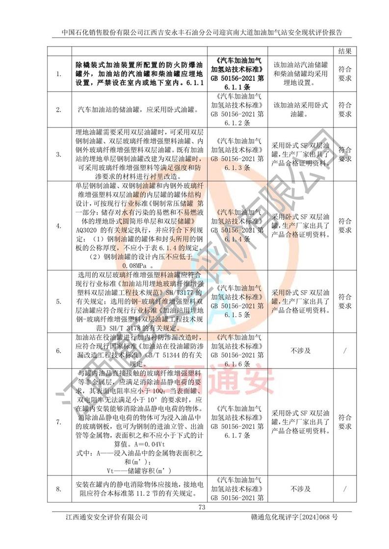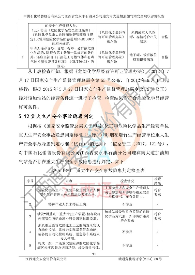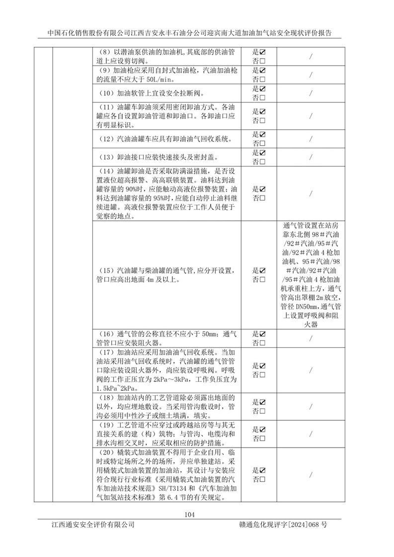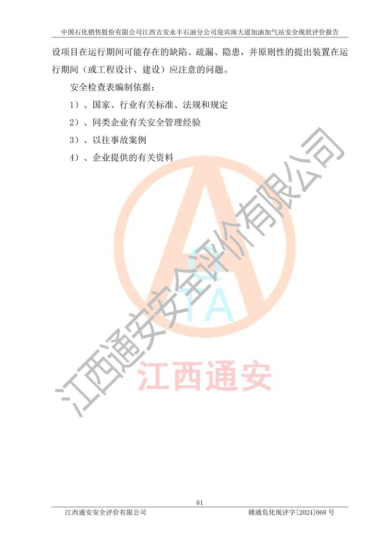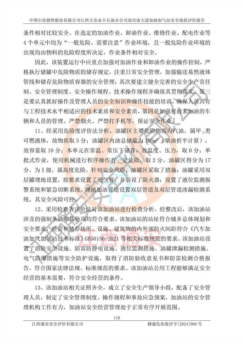 項目名稱 | 中國石化銷售股份有限公司江西吉安永豐石油分公司迎賓南大道加油加氣站 安全現(xiàn)狀評價報告 | ||||