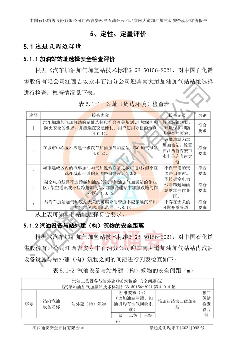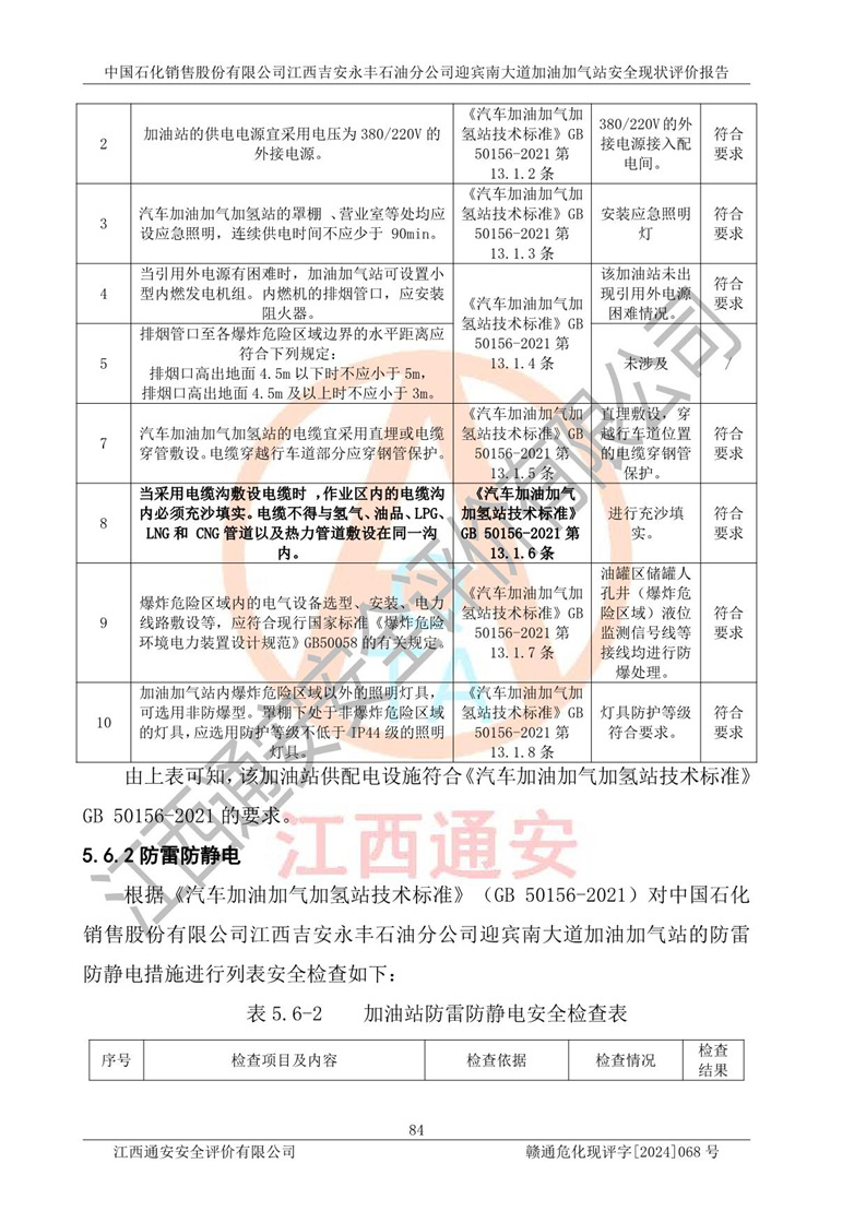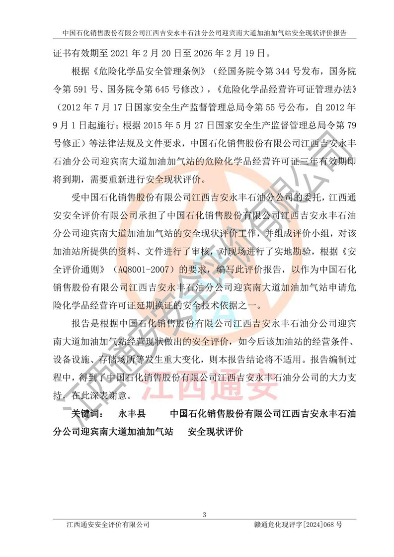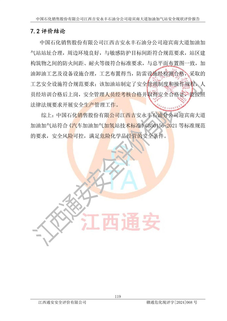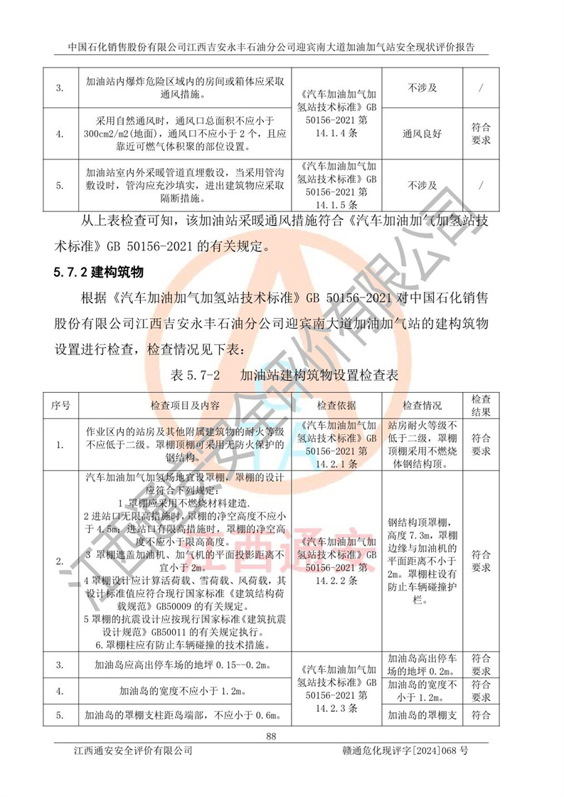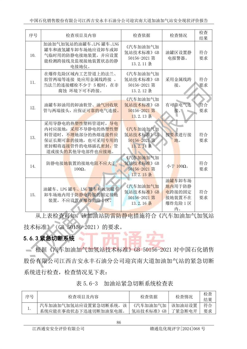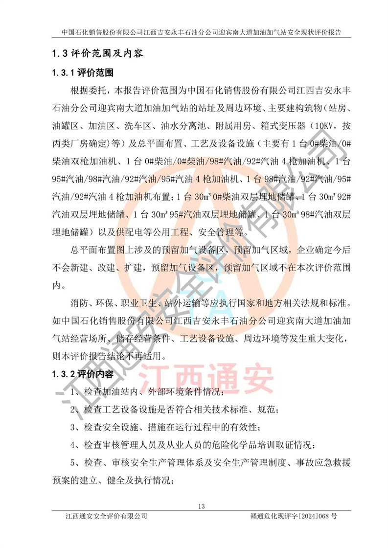 項目名稱 | 中國石化銷售股份有限公司江西吉安永豐石油分公司迎賓南大道加油加氣站 安全現(xiàn)狀評價報告 | ||||