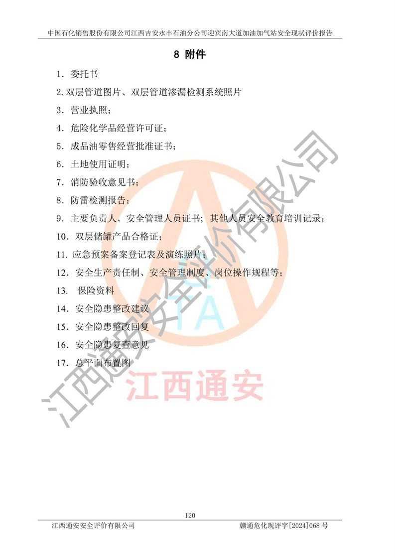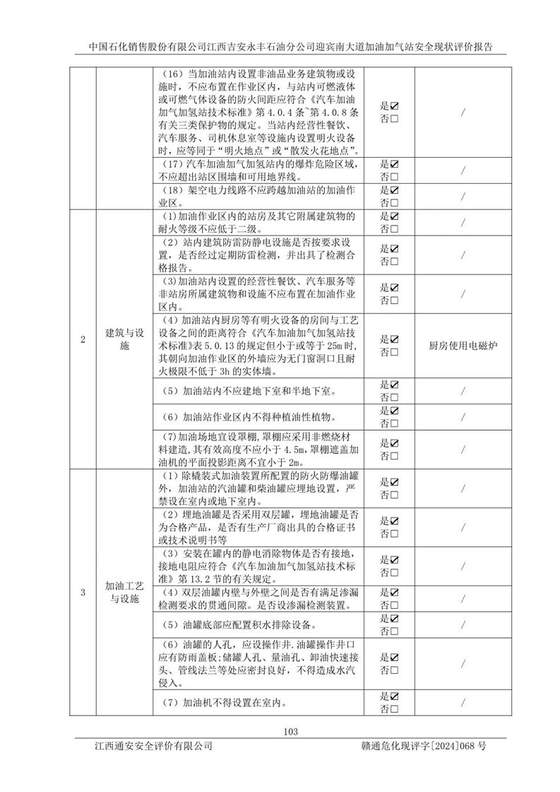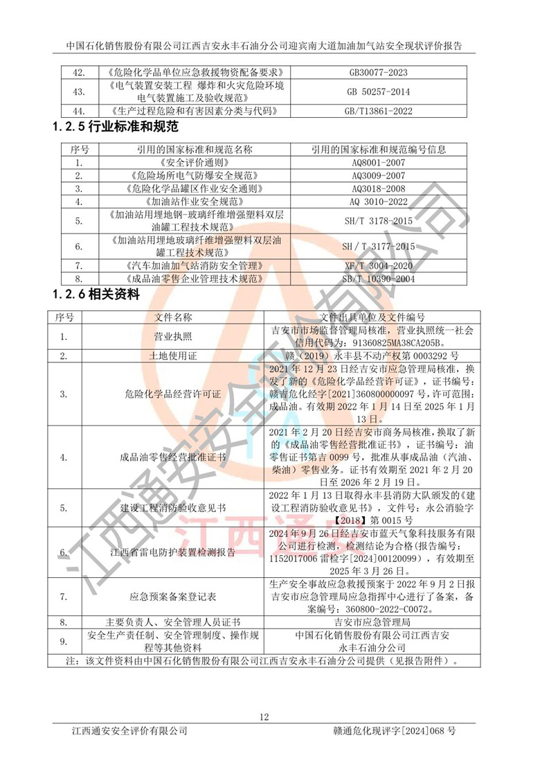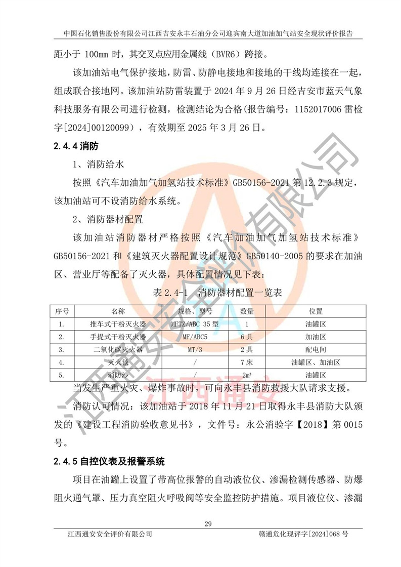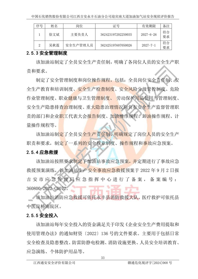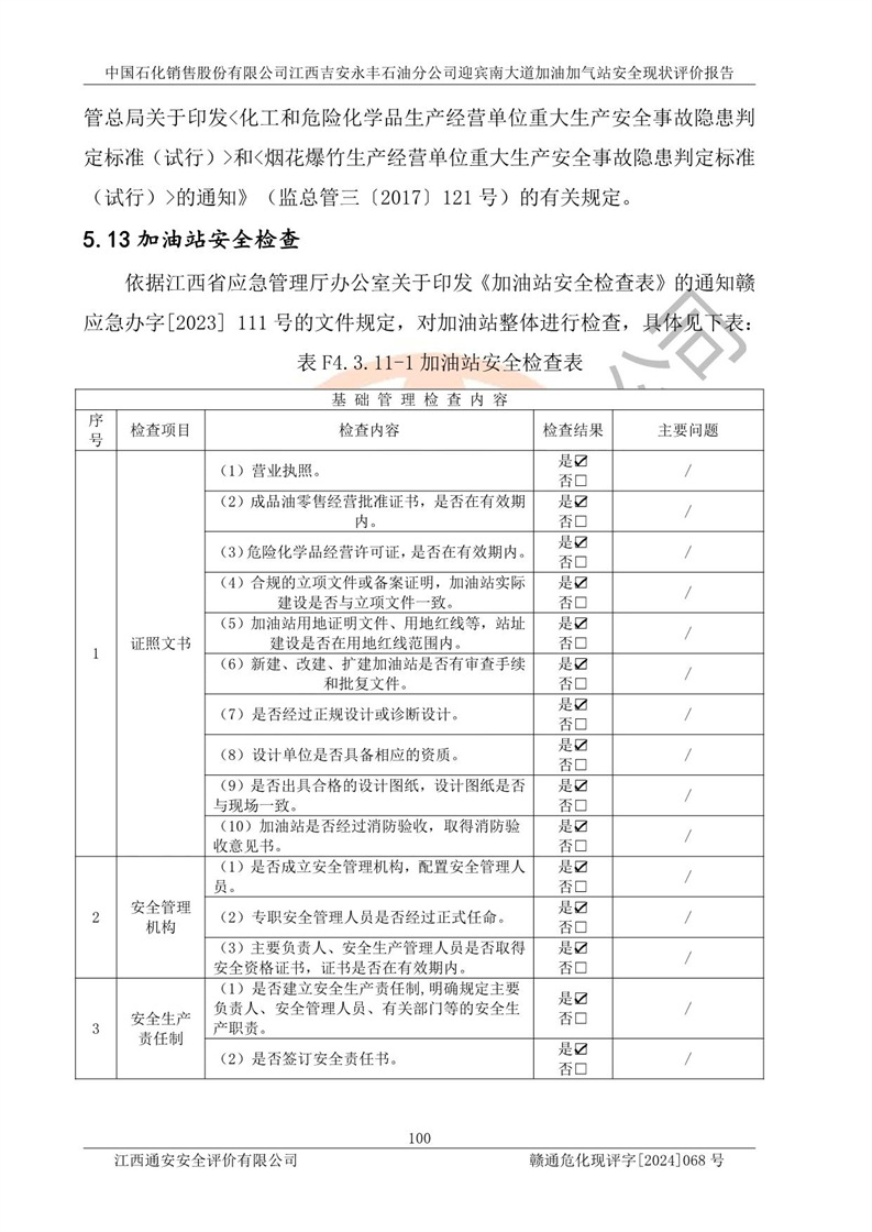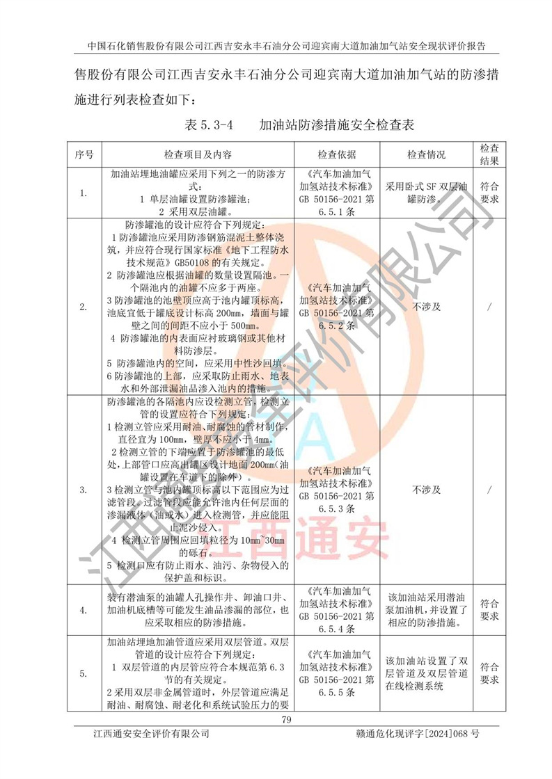 項目名稱 | 中國石化銷售股份有限公司江西吉安永豐石油分公司迎賓南大道加油加氣站 安全現(xiàn)狀評價報告 | ||||