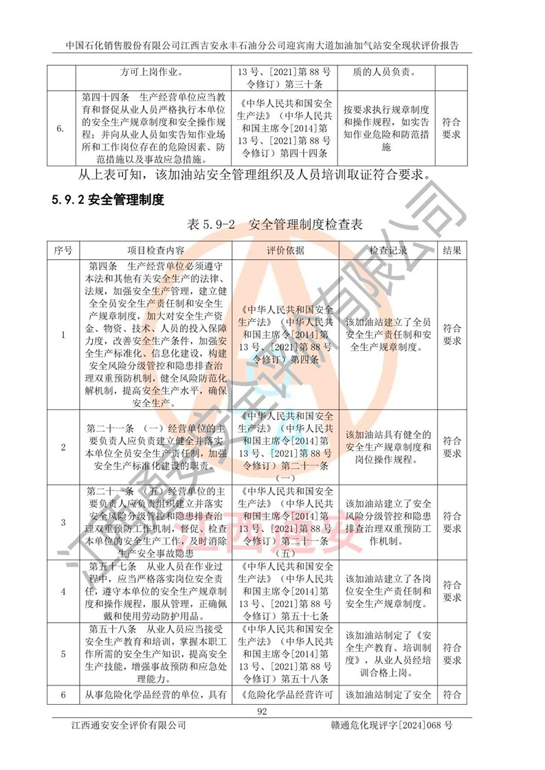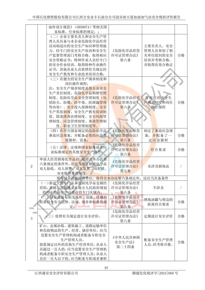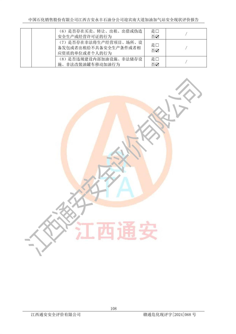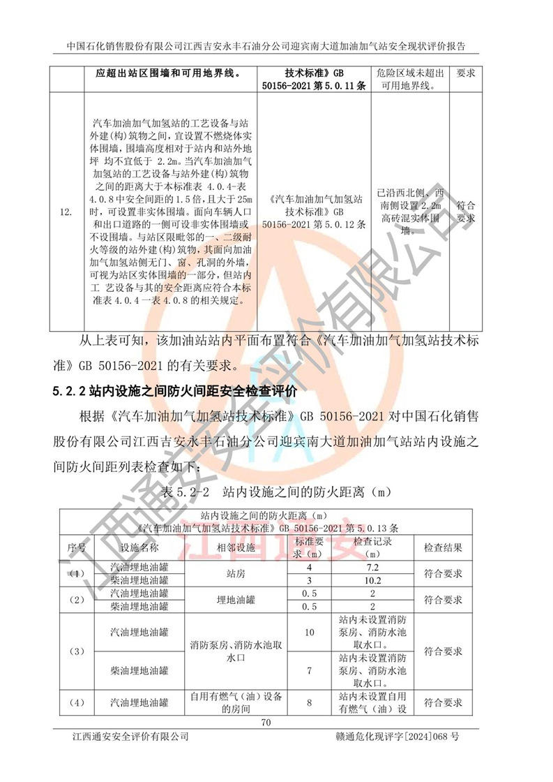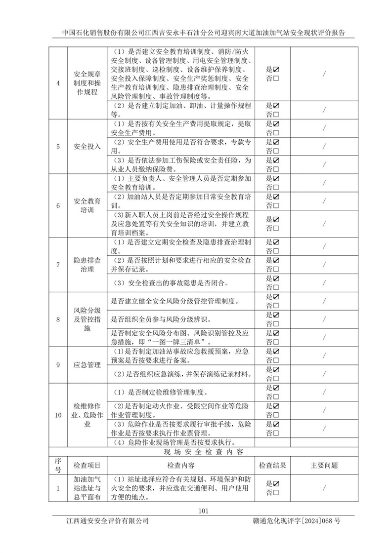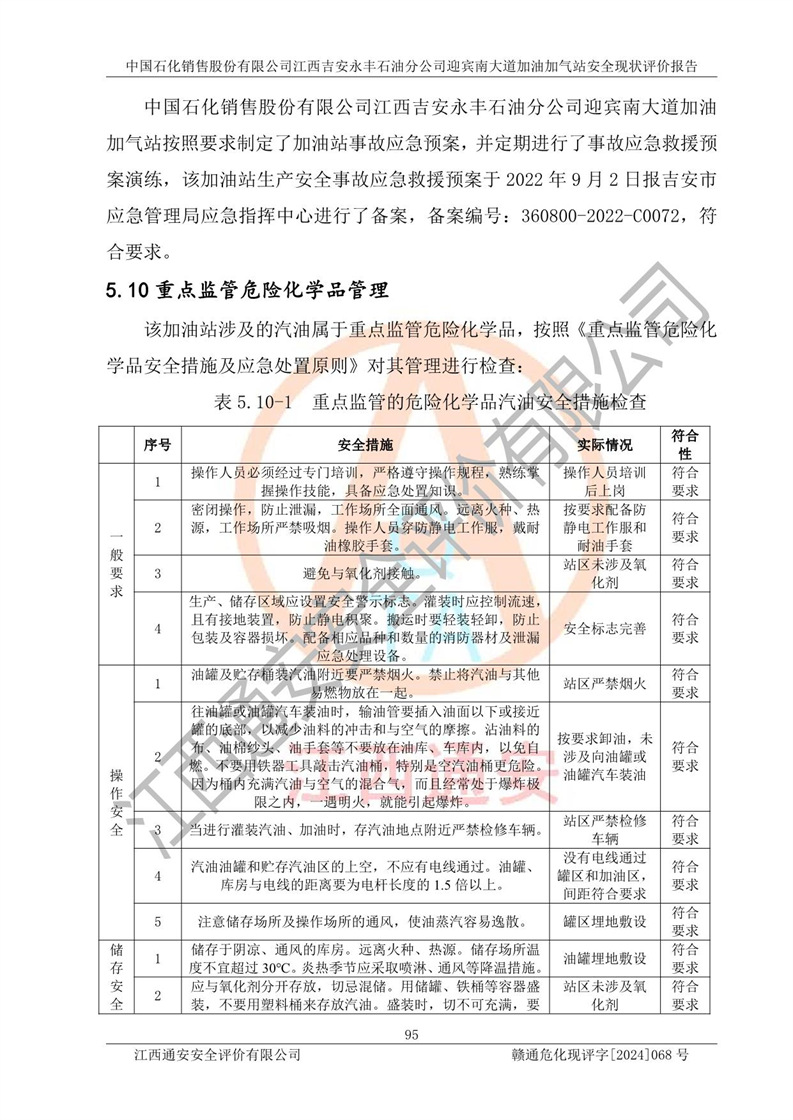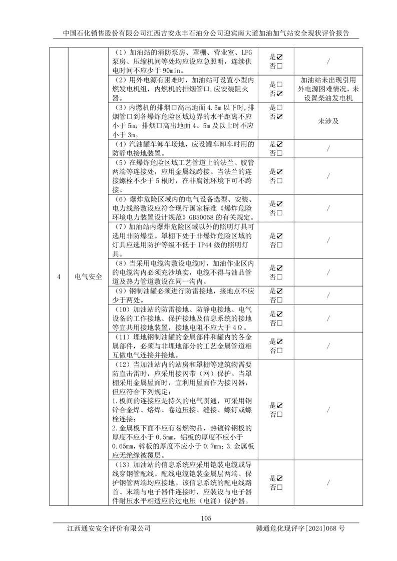 項目名稱 | 中國石化銷售股份有限公司江西吉安永豐石油分公司迎賓南大道加油加氣站 安全現(xiàn)狀評價報告 | ||||