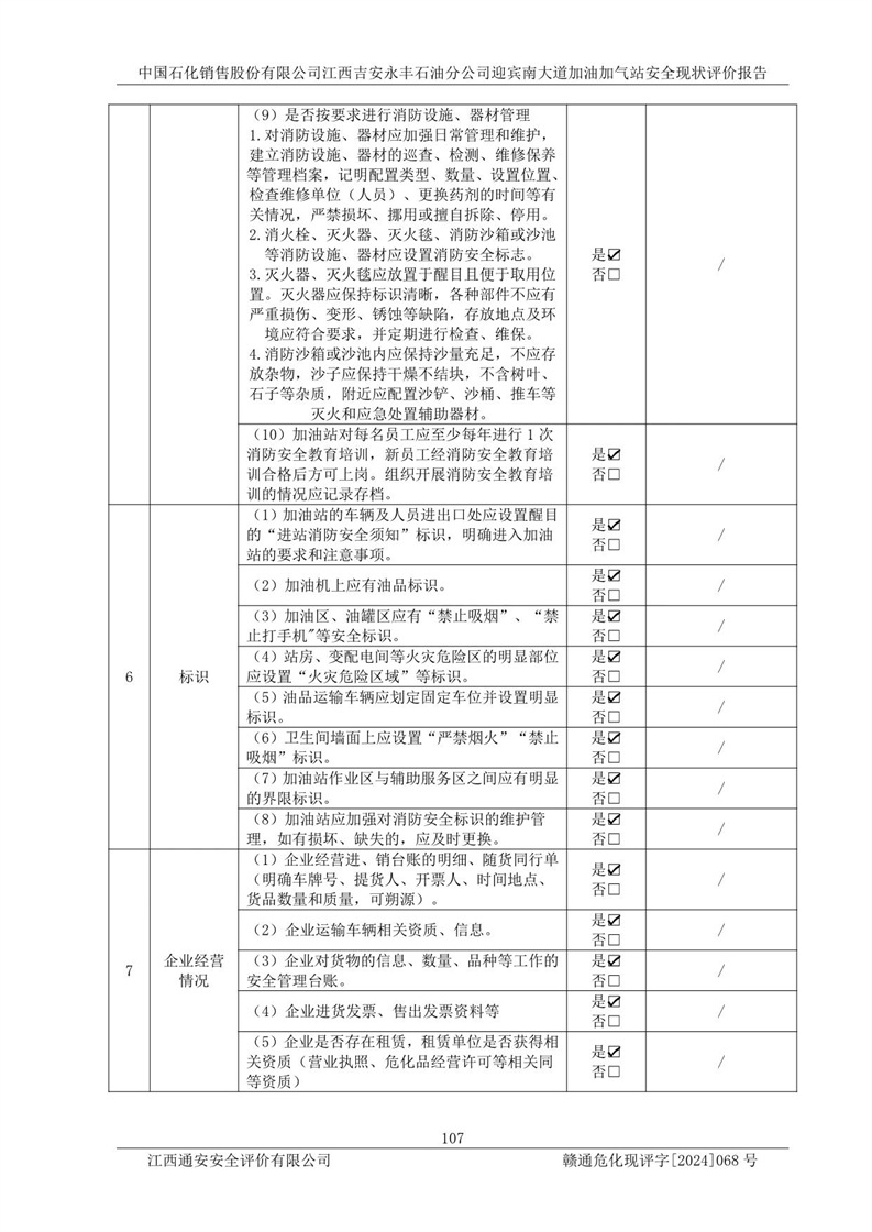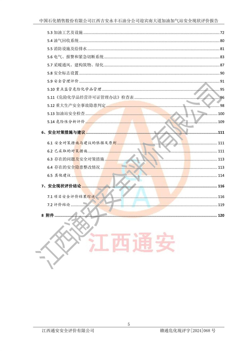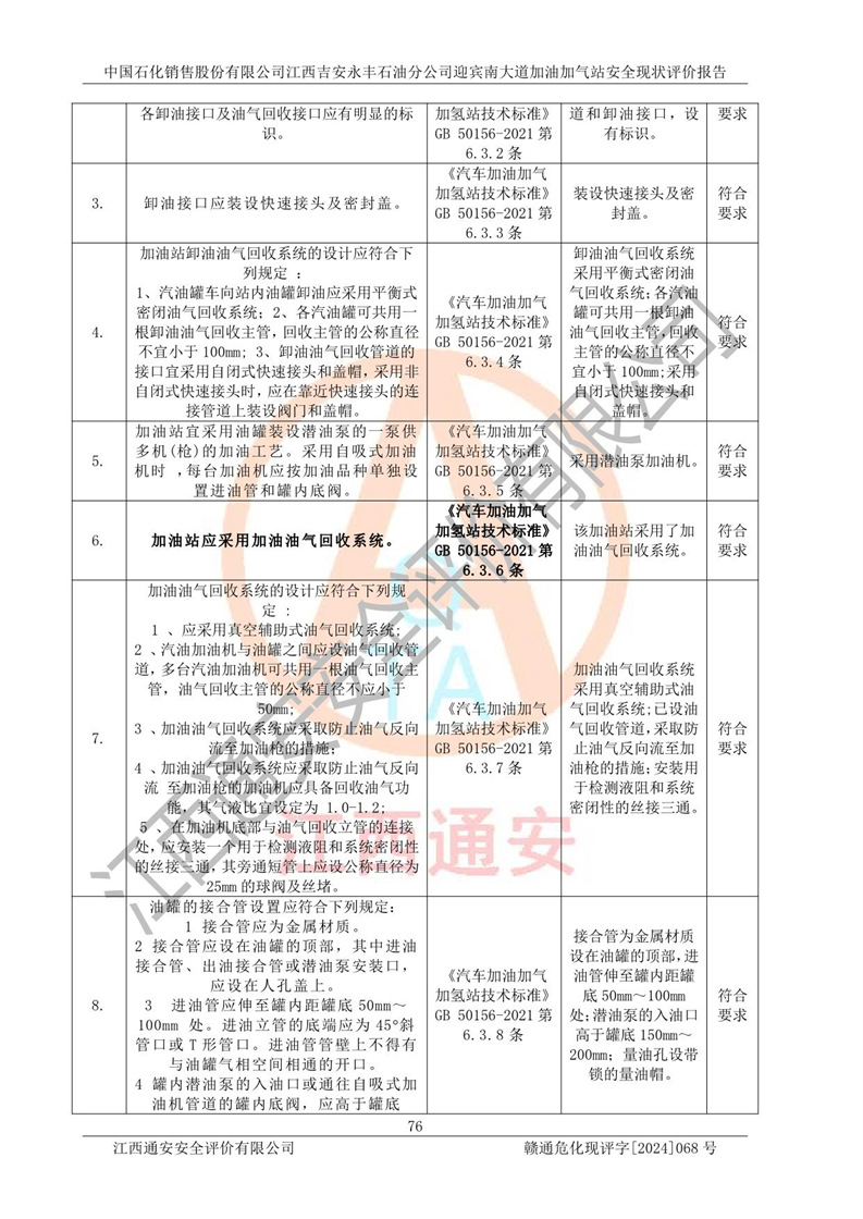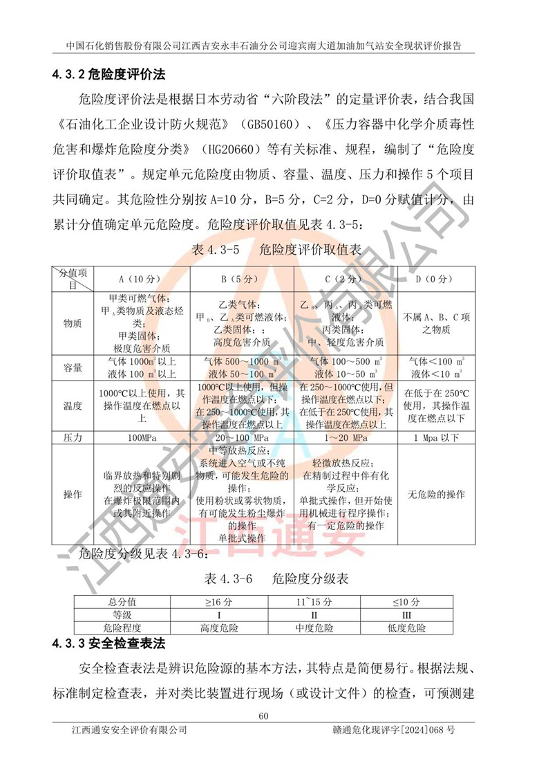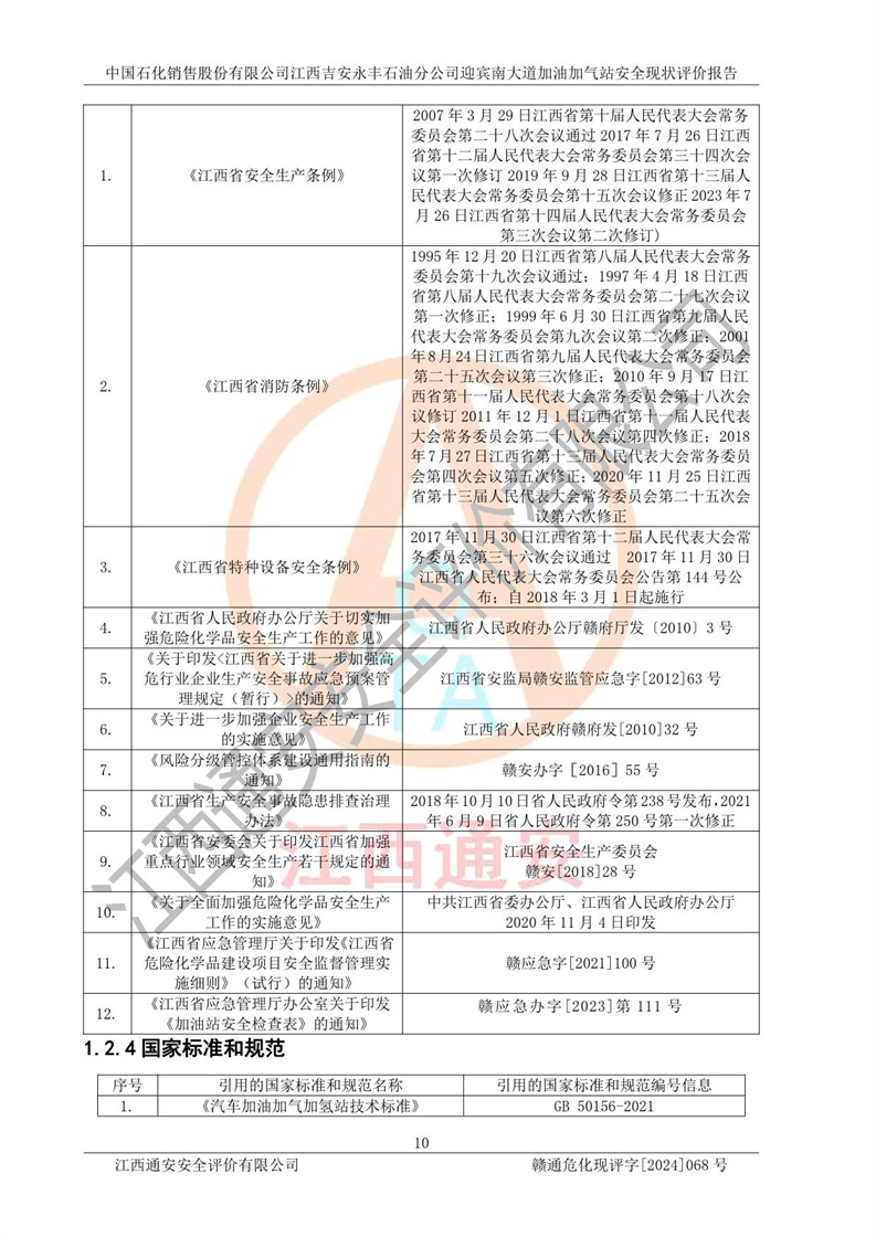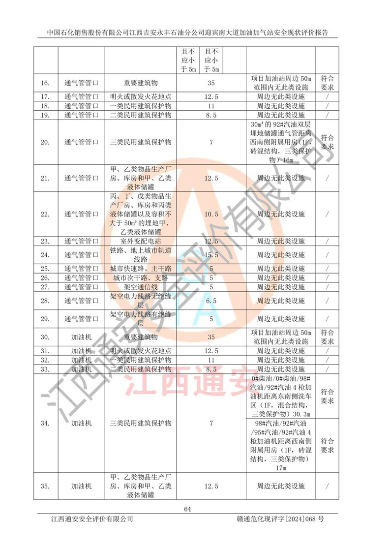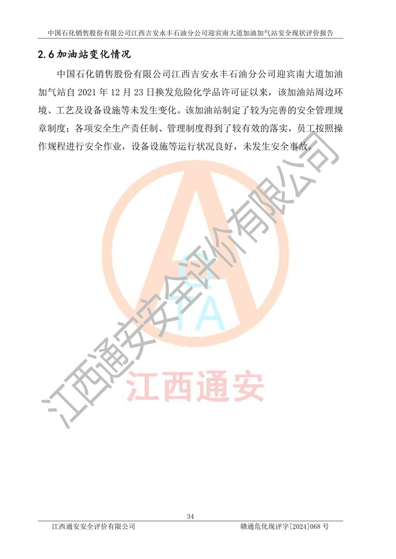 項目名稱 | 中國石化銷售股份有限公司江西吉安永豐石油分公司迎賓南大道加油加氣站 安全現(xiàn)狀評價報告 | ||||