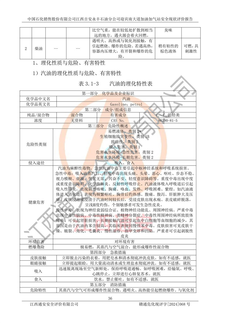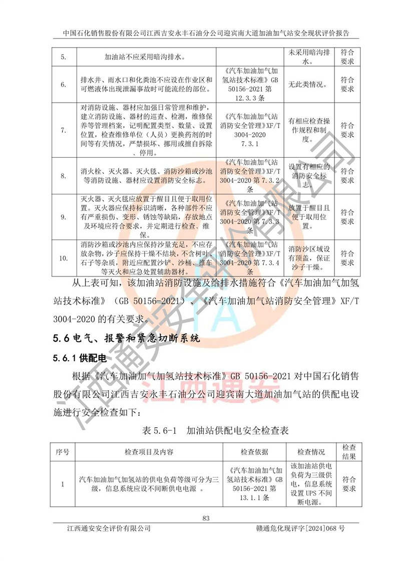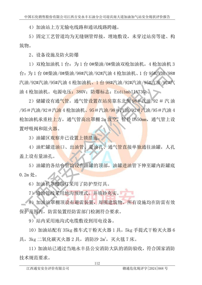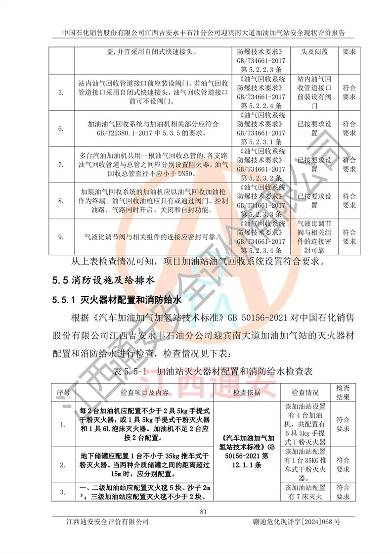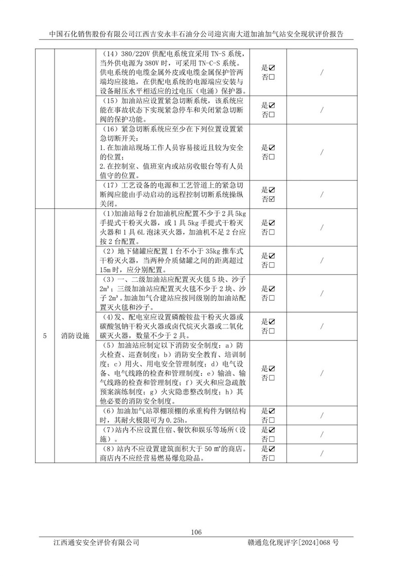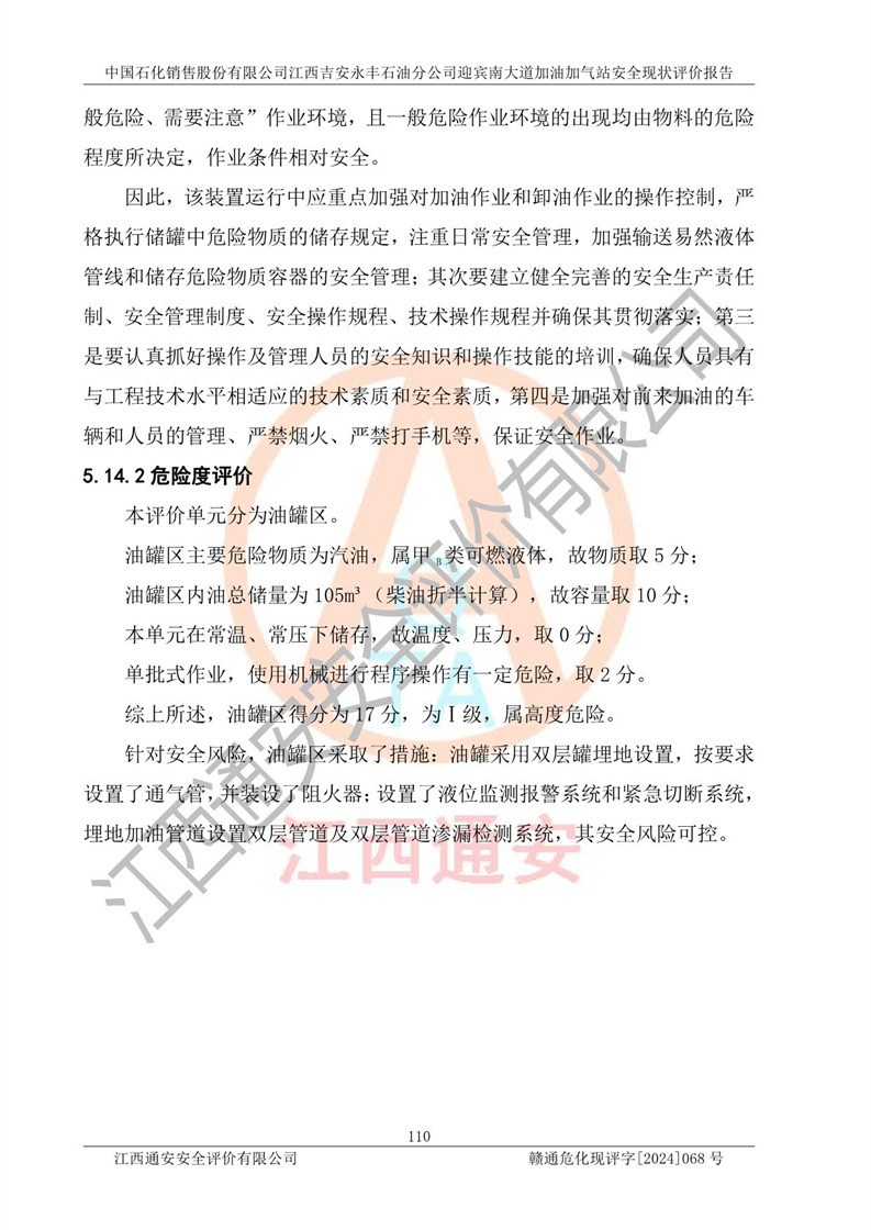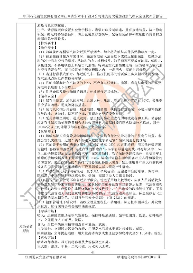 項目名稱 | 中國石化銷售股份有限公司江西吉安永豐石油分公司迎賓南大道加油加氣站 安全現(xiàn)狀評價報告 | ||||