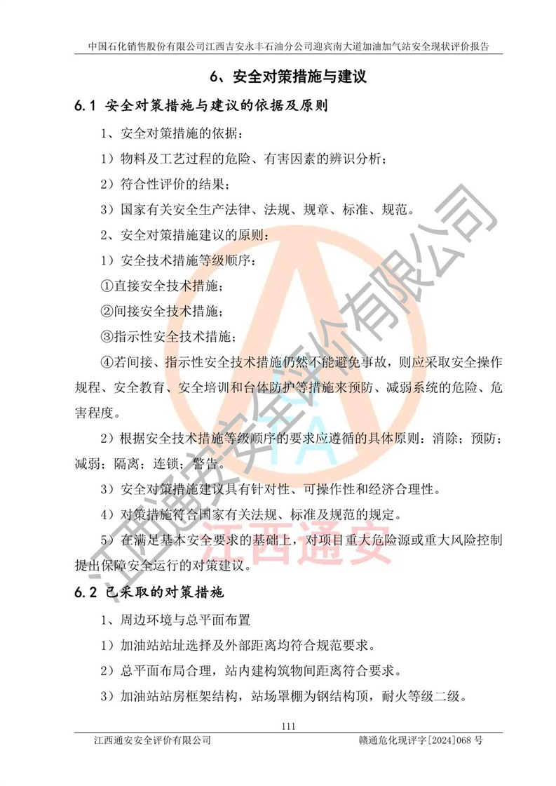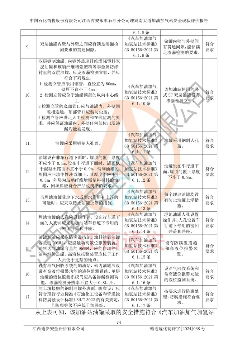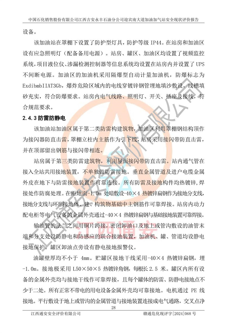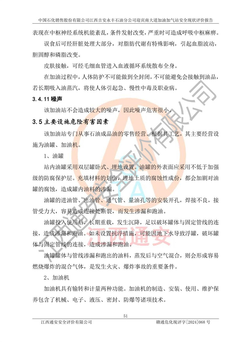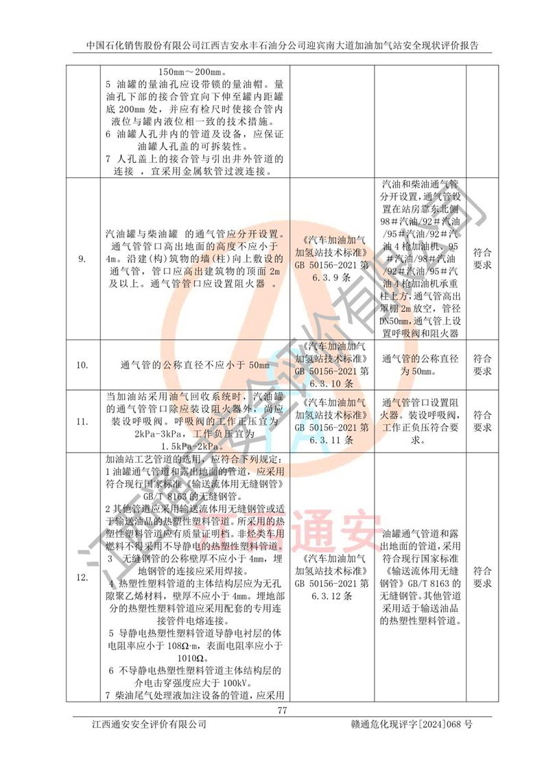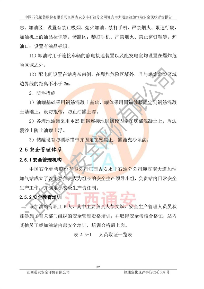 項目名稱 | 中國石化銷售股份有限公司江西吉安永豐石油分公司迎賓南大道加油加氣站 安全現(xiàn)狀評價報告 | ||||