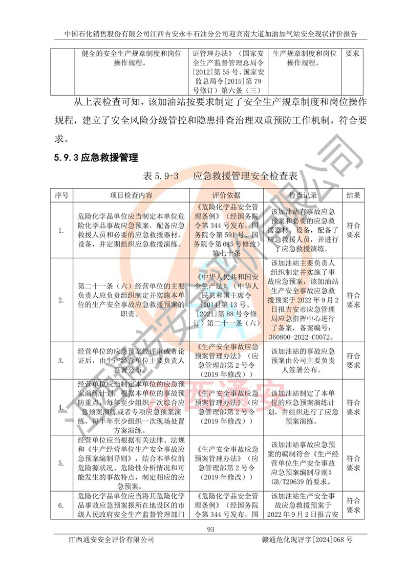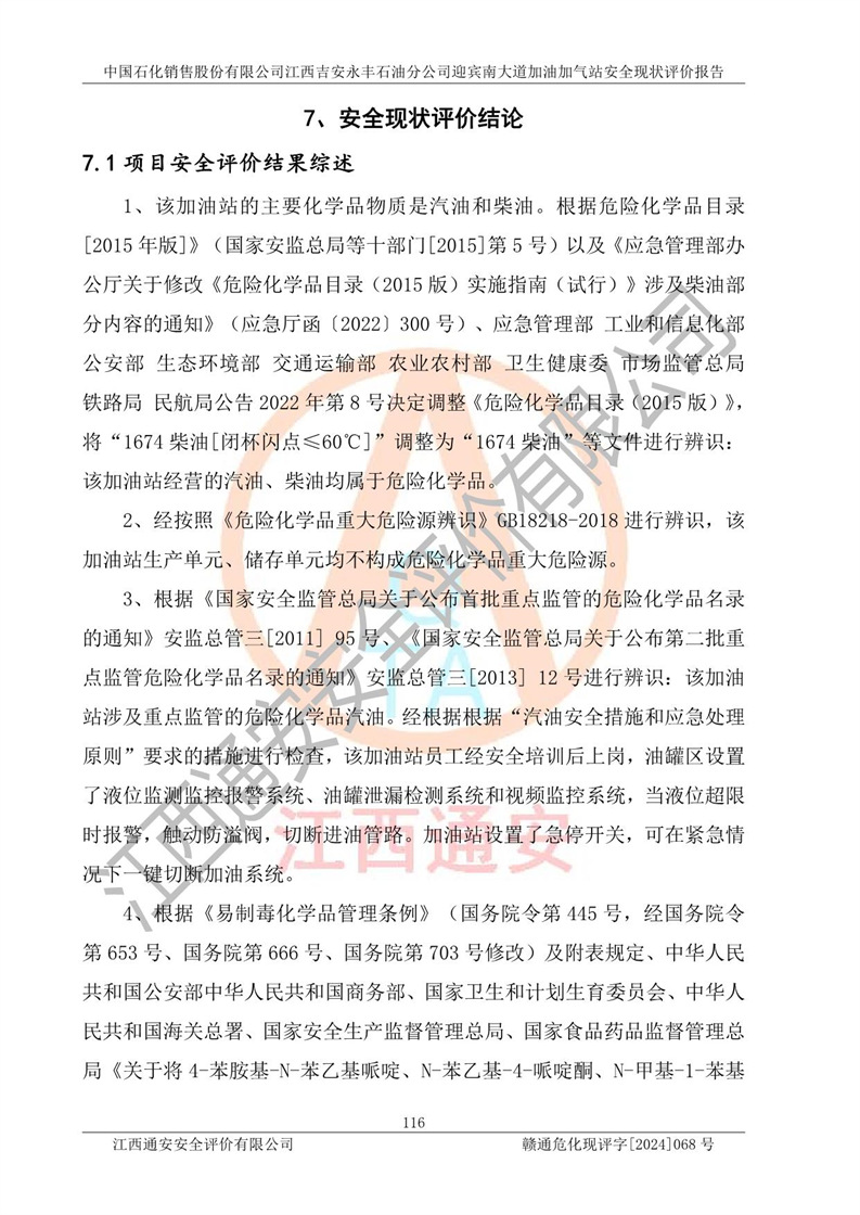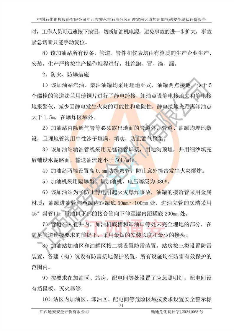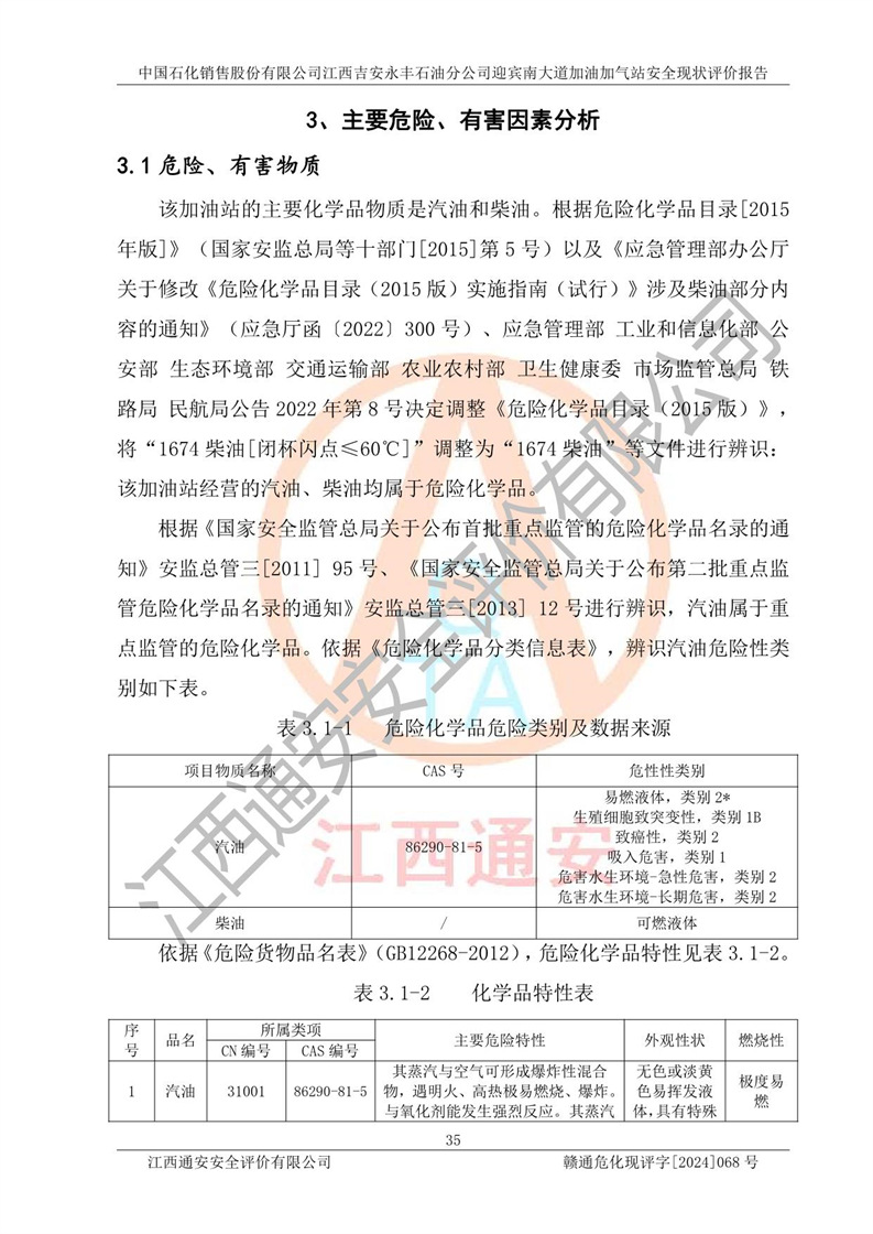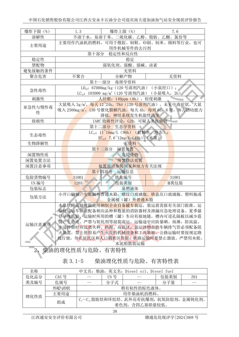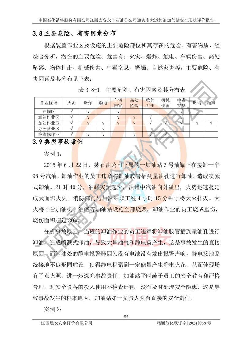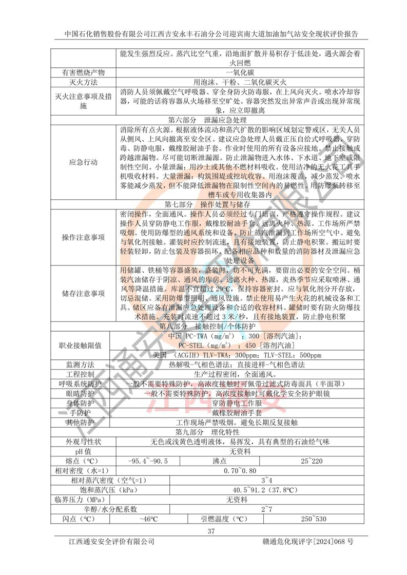 項目名稱 | 中國石化銷售股份有限公司江西吉安永豐石油分公司迎賓南大道加油加氣站 安全現(xiàn)狀評價報告 | ||||