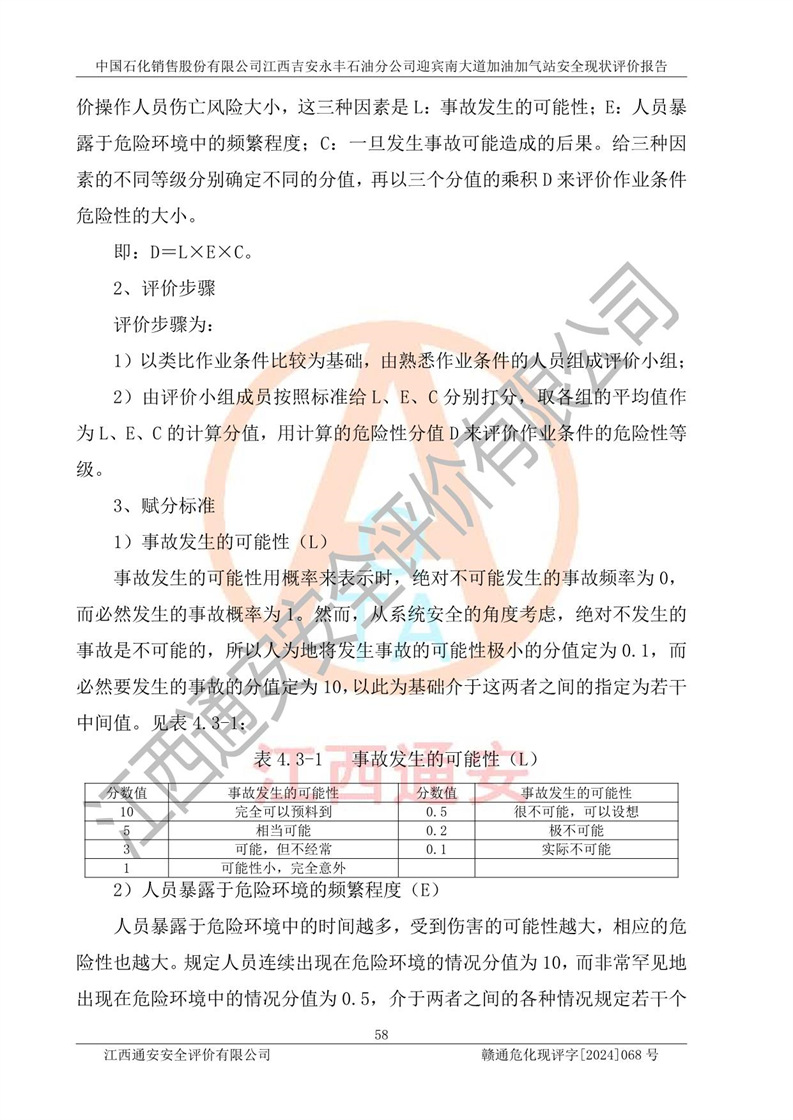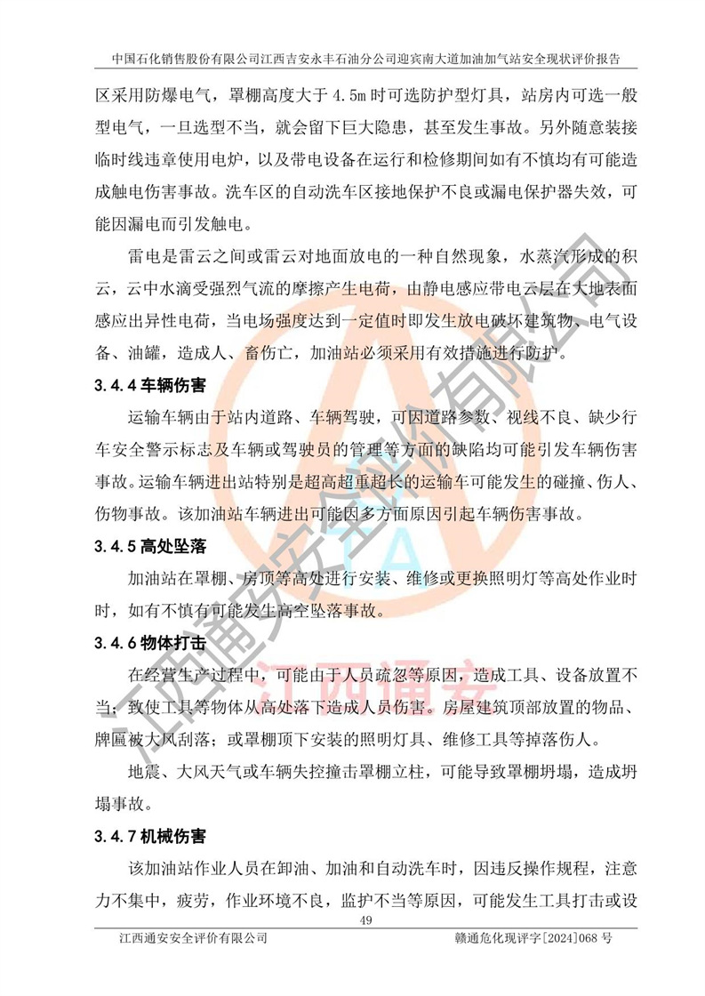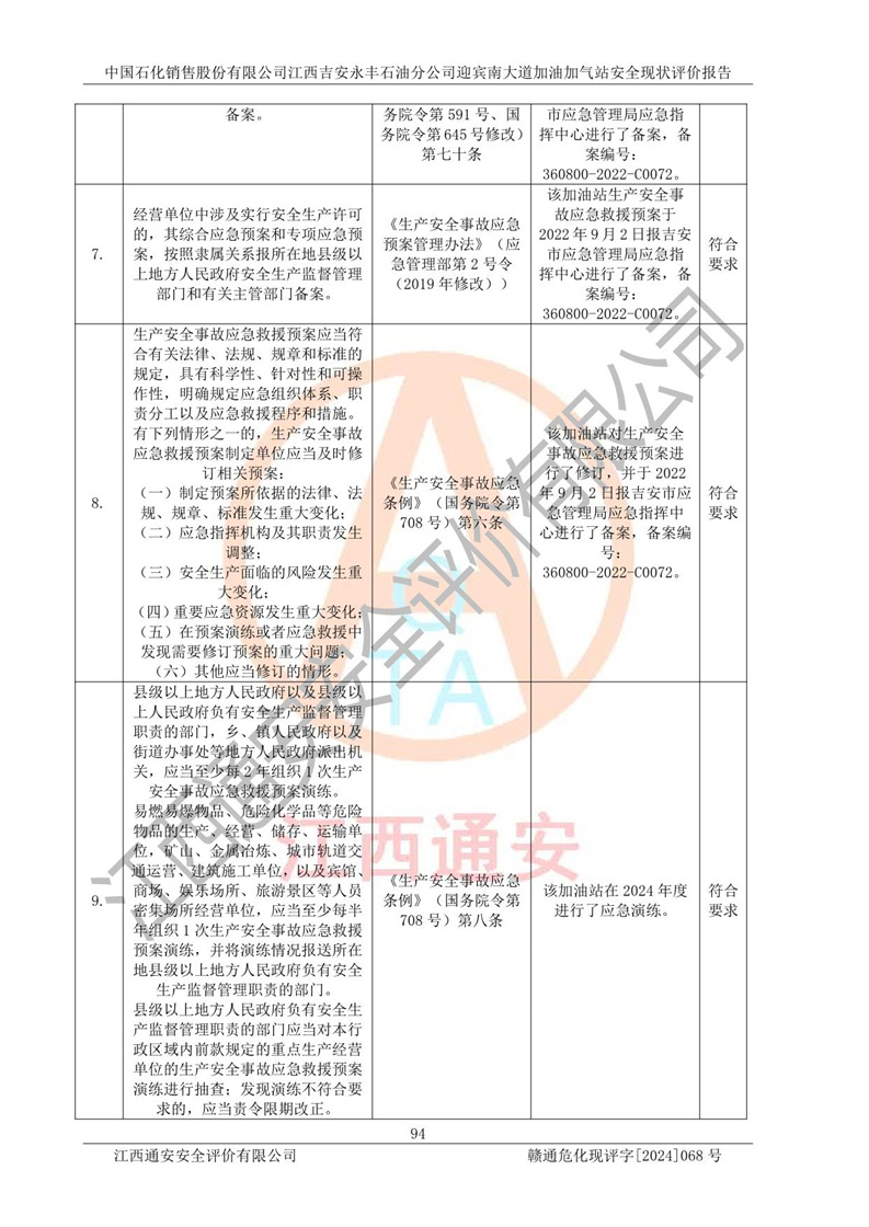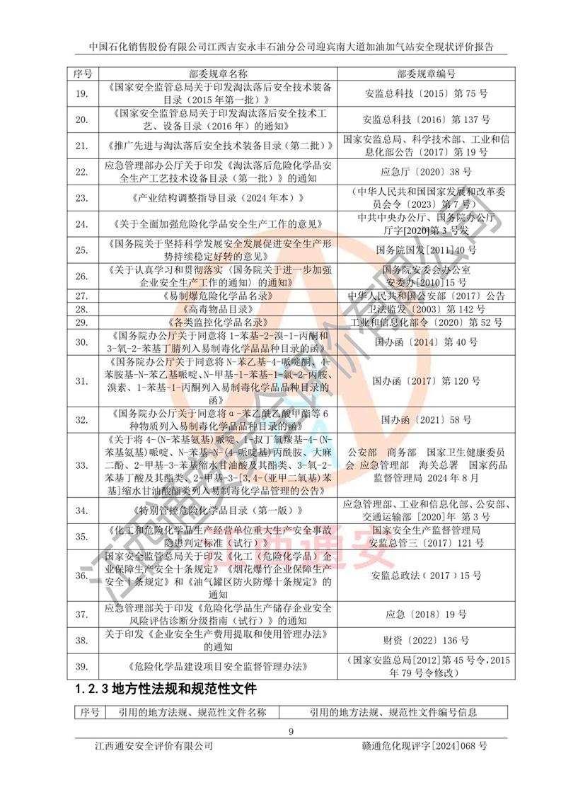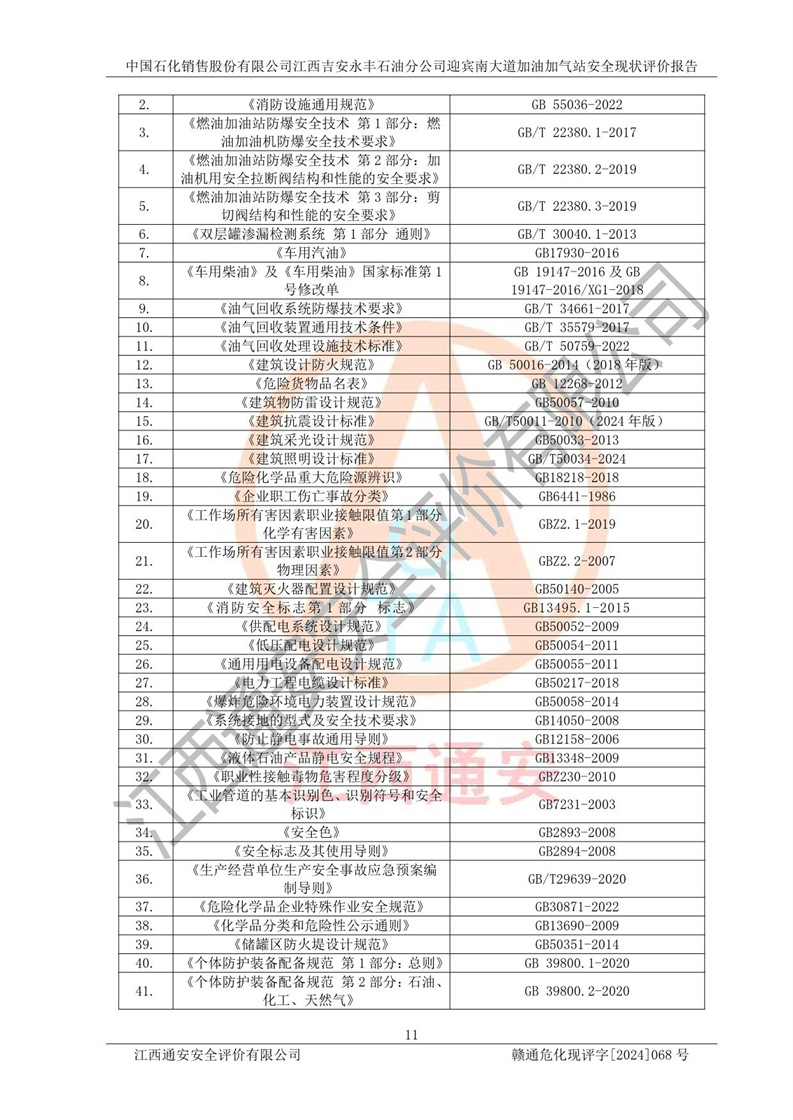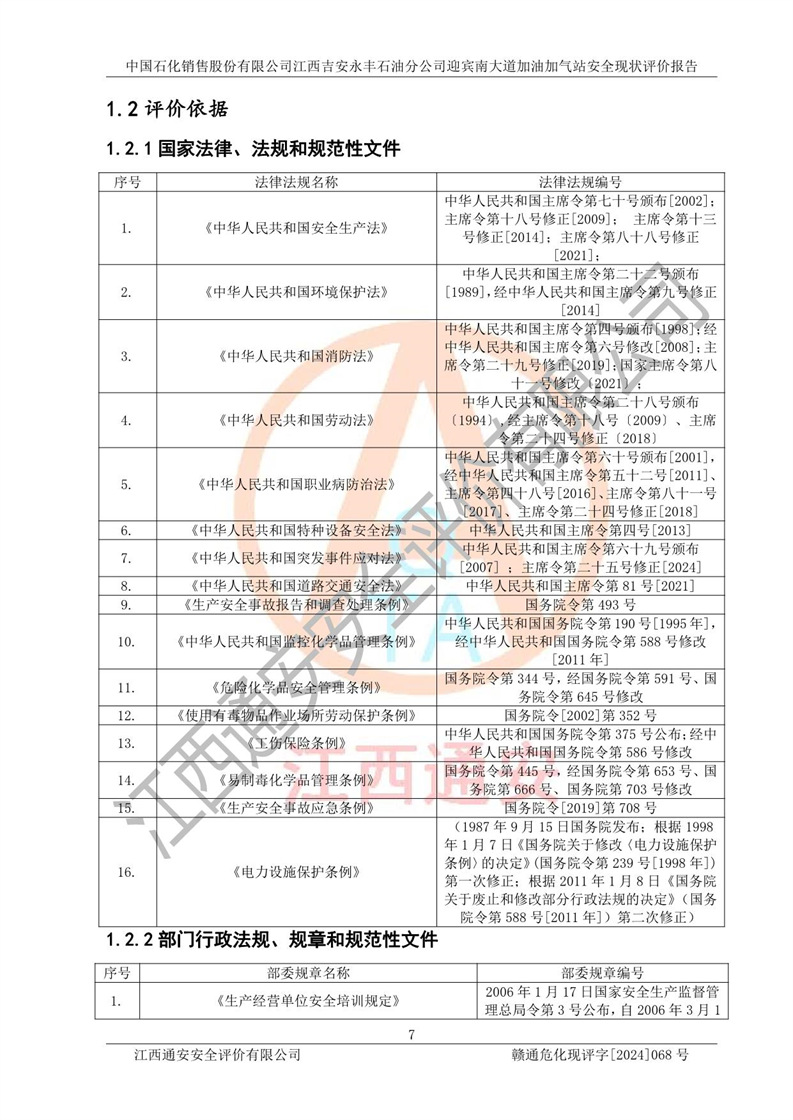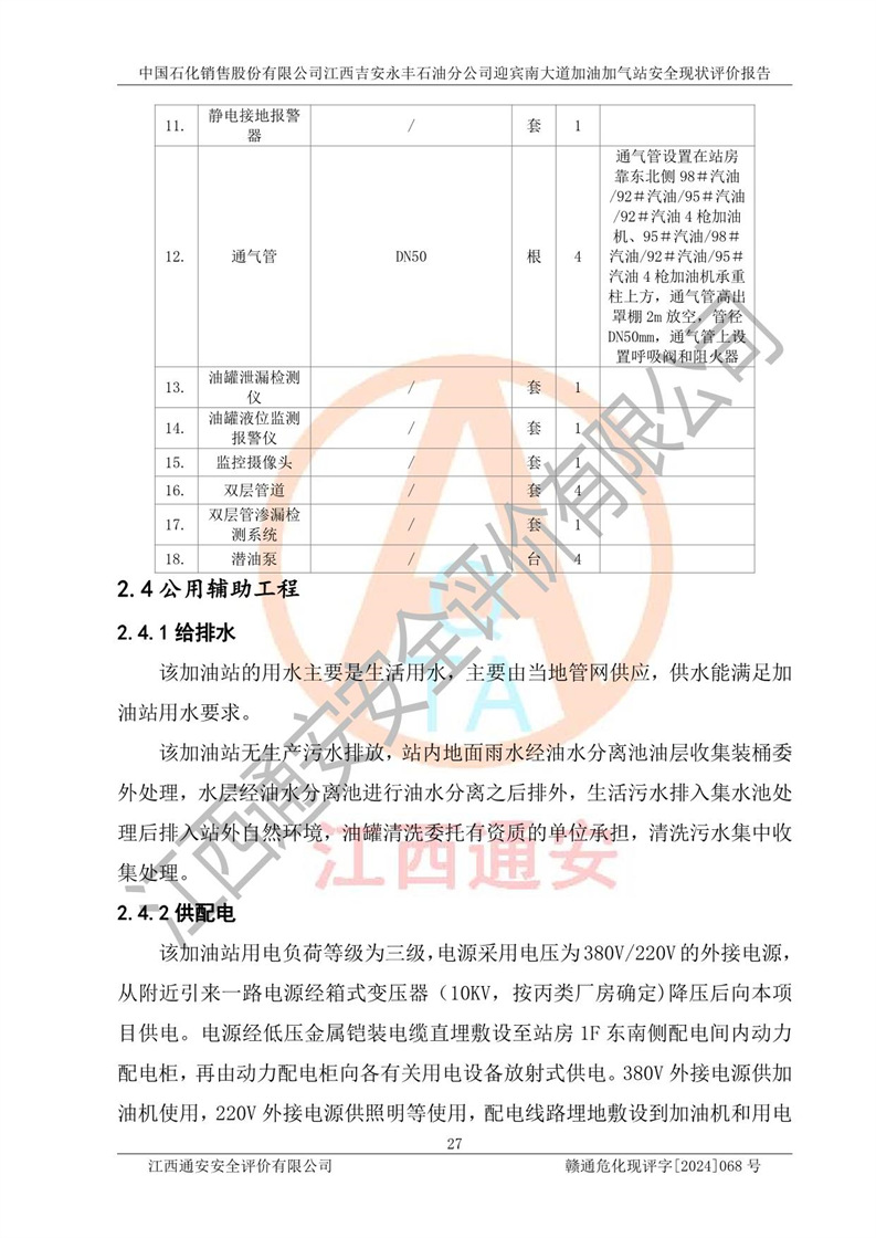 項目名稱 | 中國石化銷售股份有限公司江西吉安永豐石油分公司迎賓南大道加油加氣站 安全現(xiàn)狀評價報告 | ||||