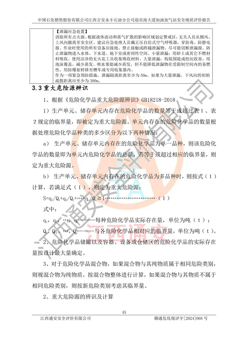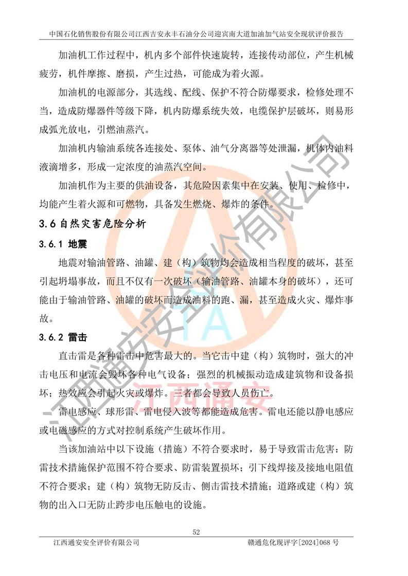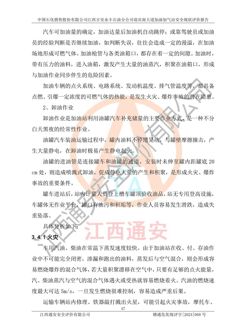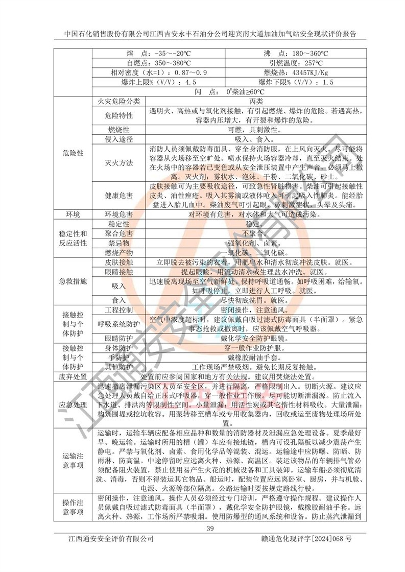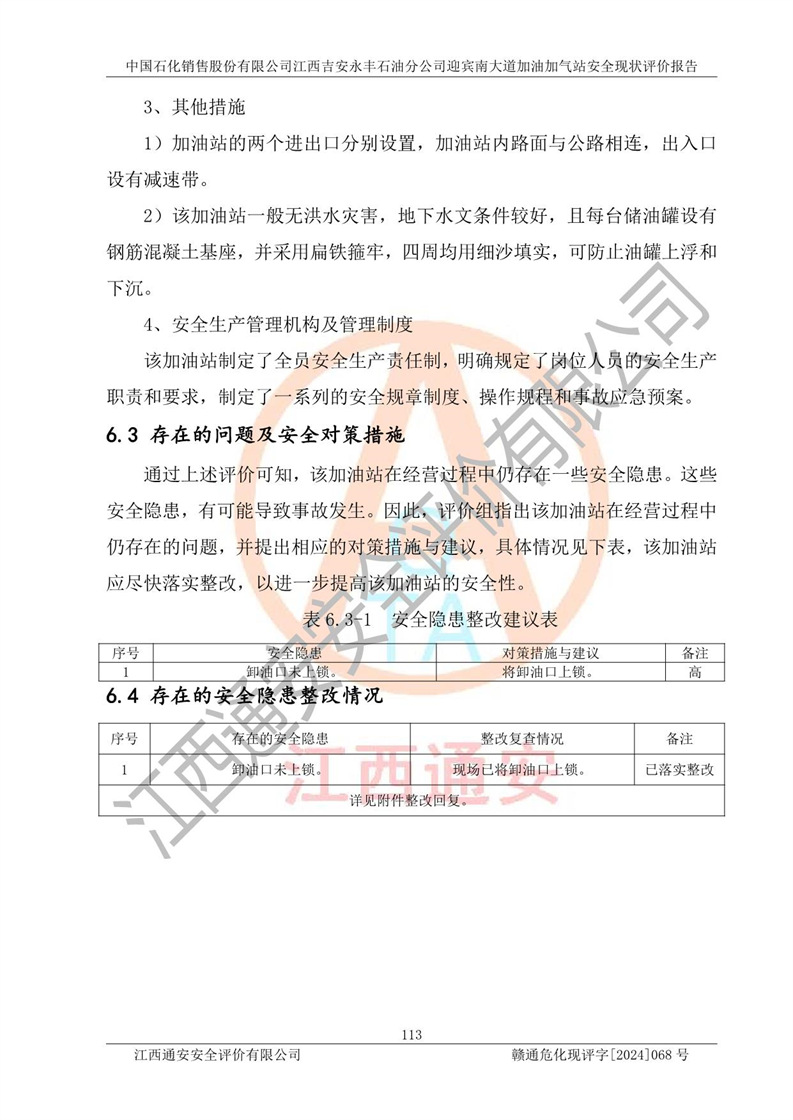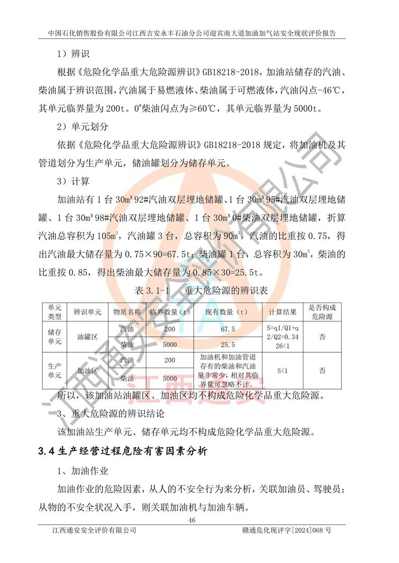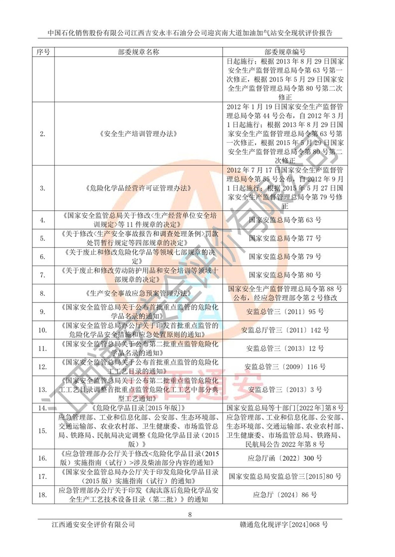項目名稱 | 中國石化銷售股份有限公司江西吉安永豐石油分公司迎賓南大道加油加氣站 安全現(xiàn)狀評價報告 | ||||