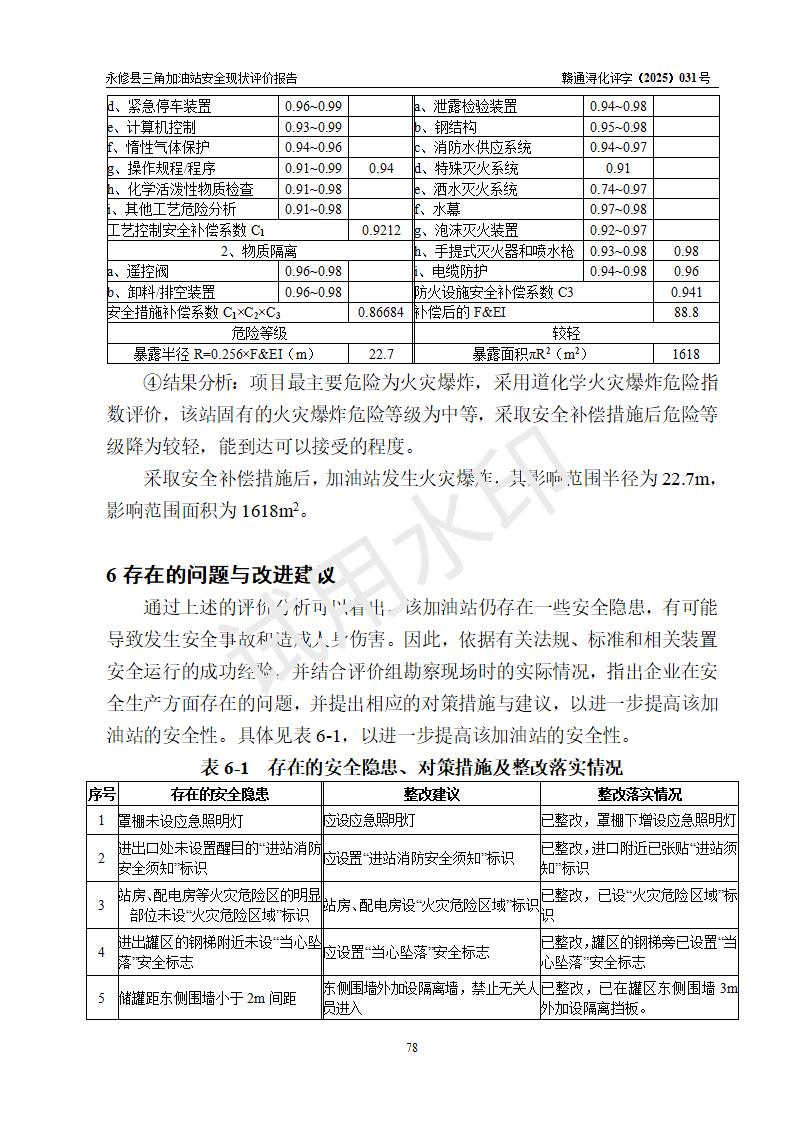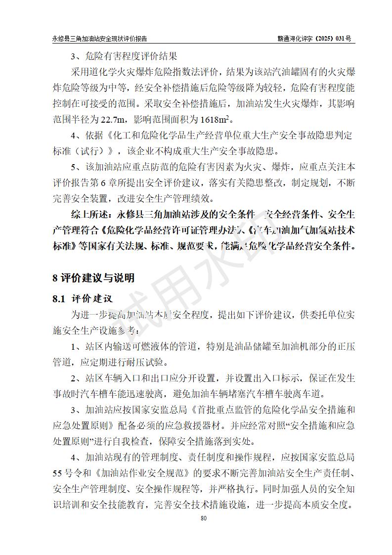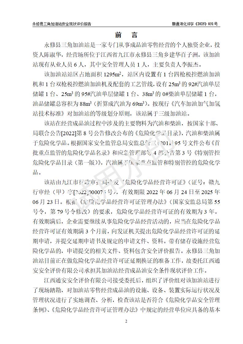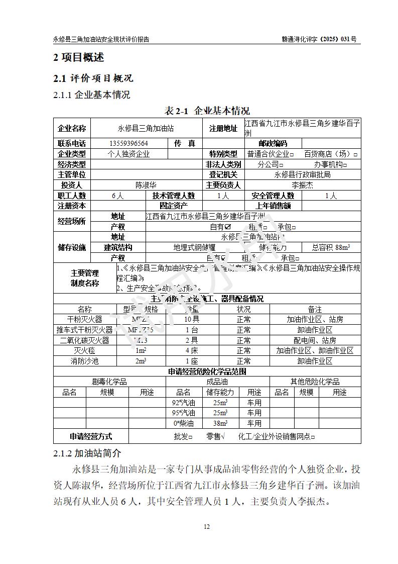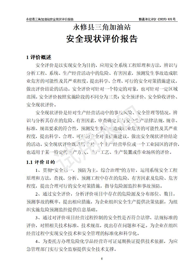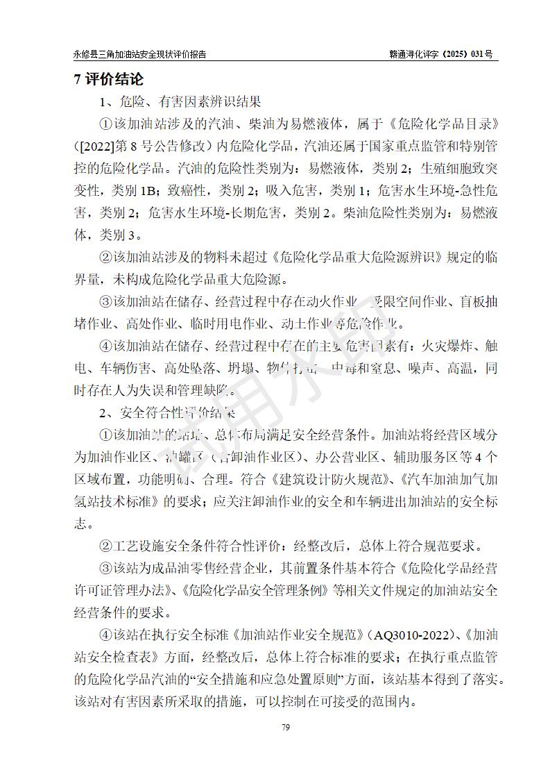 評(píng)價(jià)報(bào)告名稱 | 永修縣三角加油站安全現(xiàn)狀評(píng)價(jià)報(bào)告 | ||||