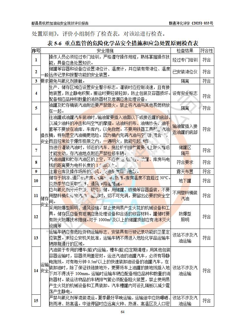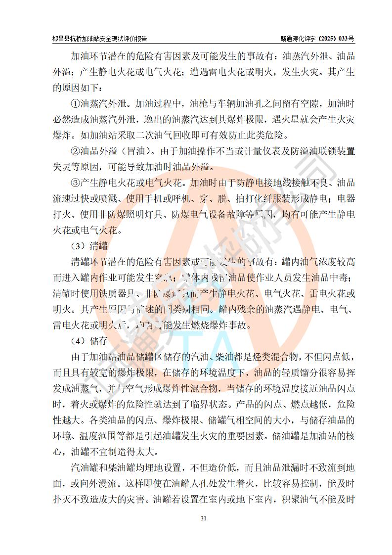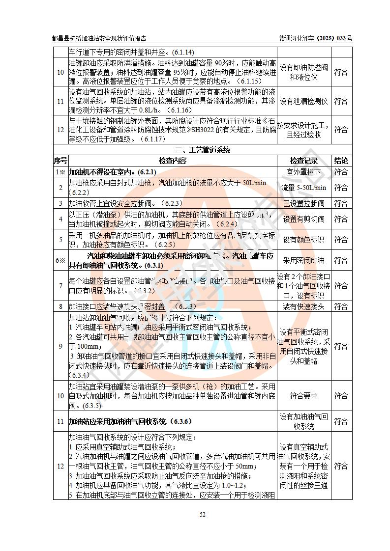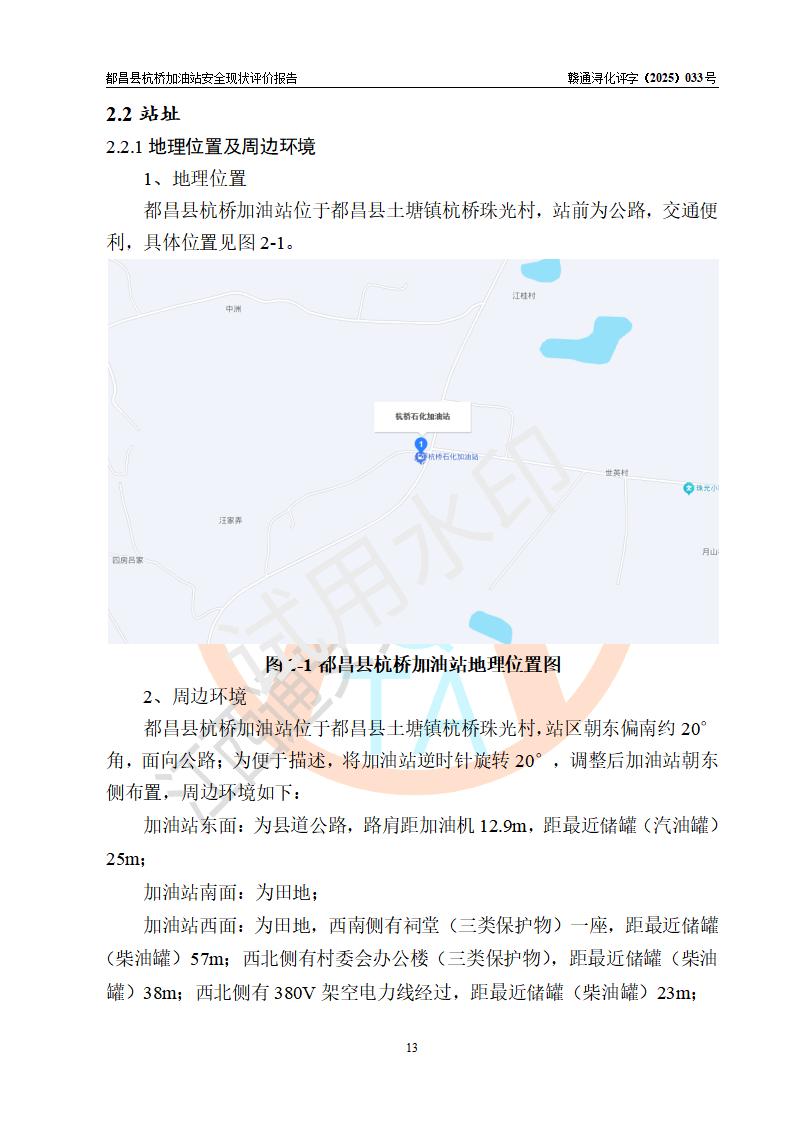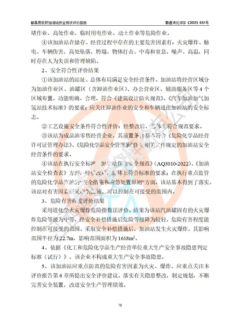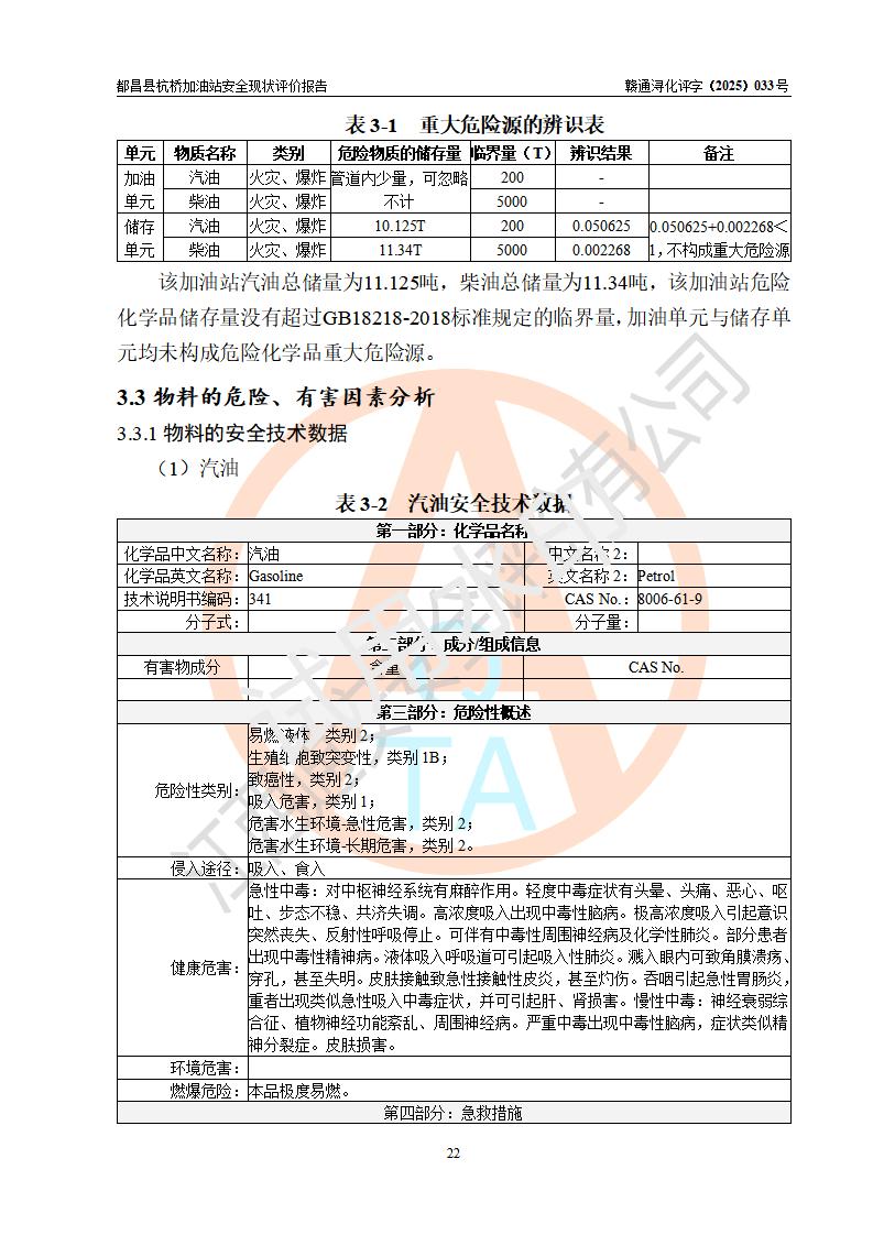 都昌縣杭橋加油站是一家專門從事成品油零售經營的個人獨資企業(yè),投資人張愛香,經營場所位于都昌縣土塘鎮(zhèn)杭橋珠光村。該加油站現有從業(yè)人員4人,其中安全管理人員1人,主要負責人陳閩。 該加油站站區(qū)占地面積833m2,站區(qū)內設置有1臺三槍稅控燃油加油機和1臺雙槍稅控燃油加油機及配套的工藝管線,設有15m3的92#汽油雙層儲罐1臺、15m3的0#柴油雙層儲罐1臺,油品儲罐總容積為30m3(折算成汽油為22.5m3)。按現行《汽車加油加氣加氫站技術標準》對加油站的等級劃分原則,該站屬于三級加油站。 該站由九江市行政審批局換發(fā)《危險化學品經營許可證》(證號:贛九行審經(甲)字[2022]000080號),**期限2022年06月27日至2025年06月26日。 |