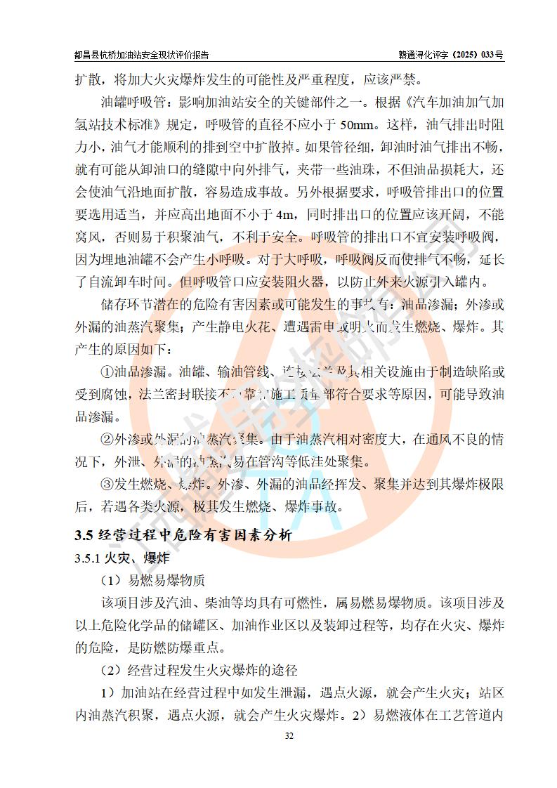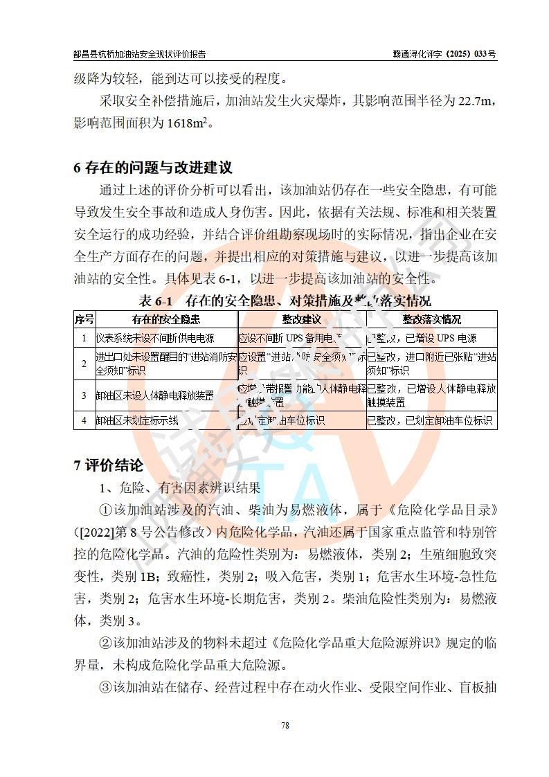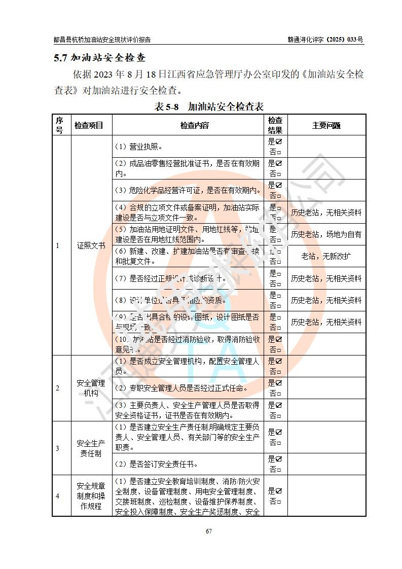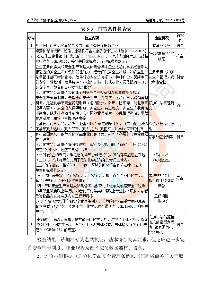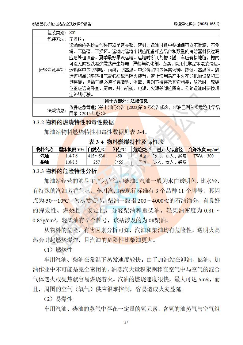 都昌縣杭橋加油站是一家專門從事成品油零售經營的個人獨資企業(yè),投資人張愛香,經營場所位于都昌縣土塘鎮(zhèn)杭橋珠光村。該加油站現有從業(yè)人員4人,其中安全管理人員1人,主要負責人陳閩。 該加油站站區(qū)占地面積833m2,站區(qū)內設置有1臺三槍稅控燃油加油機和1臺雙槍稅控燃油加油機及配套的工藝管線,設有15m3的92#汽油雙層儲罐1臺、15m3的0#柴油雙層儲罐1臺,油品儲罐總容積為30m3(折算成汽油為22.5m3)。按現行《汽車加油加氣加氫站技術標準》對加油站的等級劃分原則,該站屬于三級加油站。 該站由九江市行政審批局換發(fā)《危險化學品經營許可證》(證號:贛九行審經(甲)字[2022]000080號),**期限2022年06月27日至2025年06月26日。 |