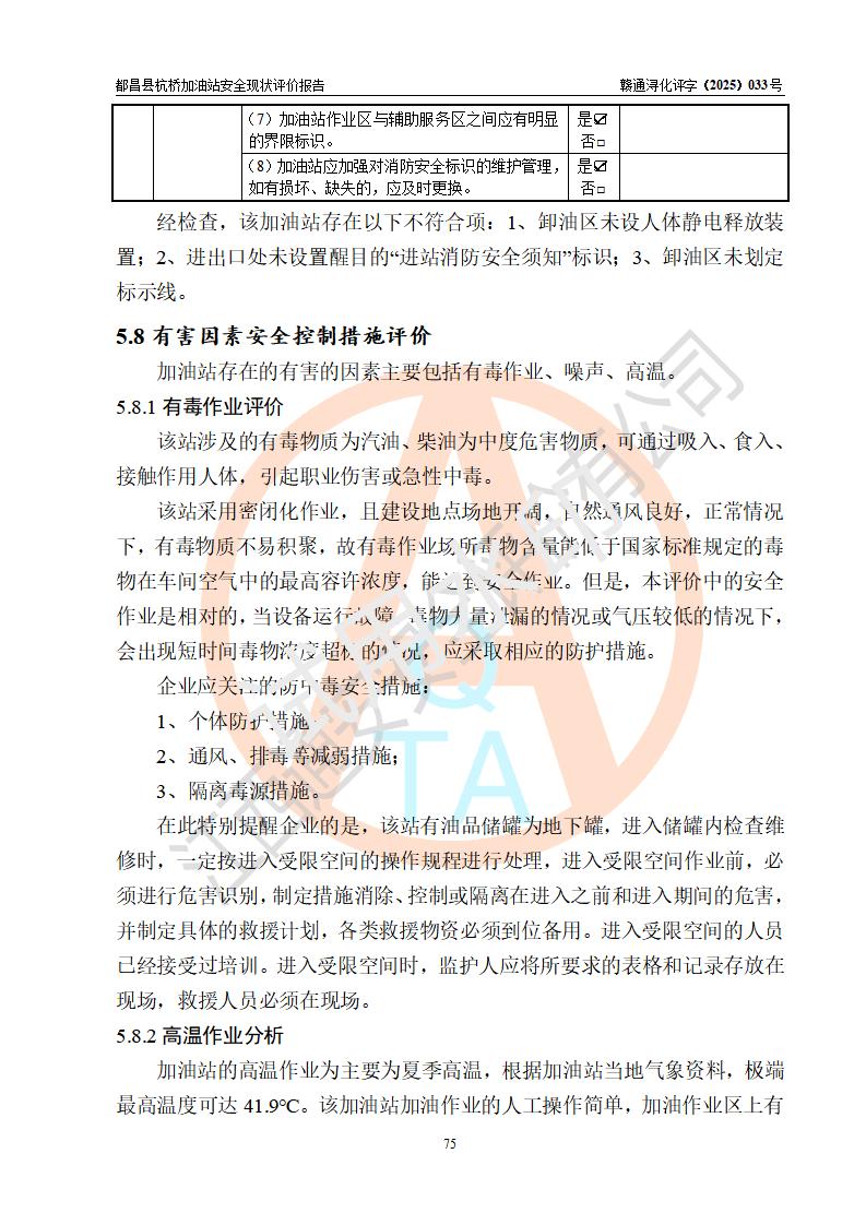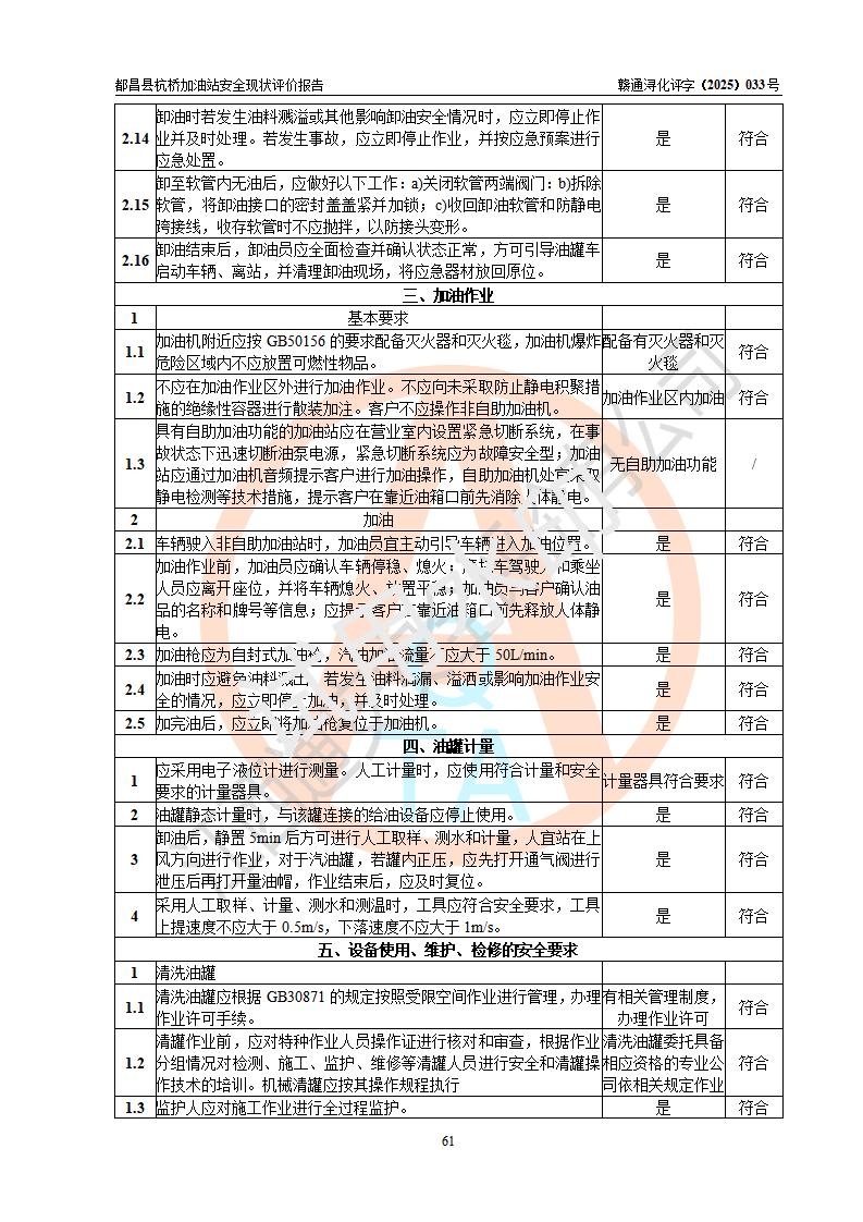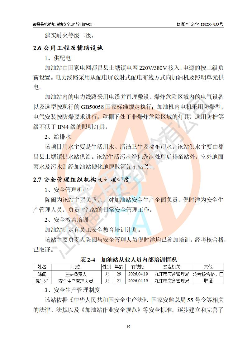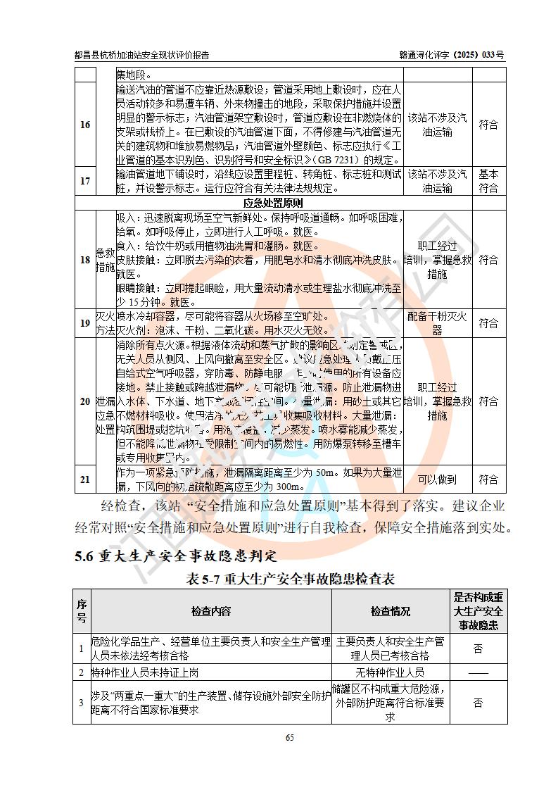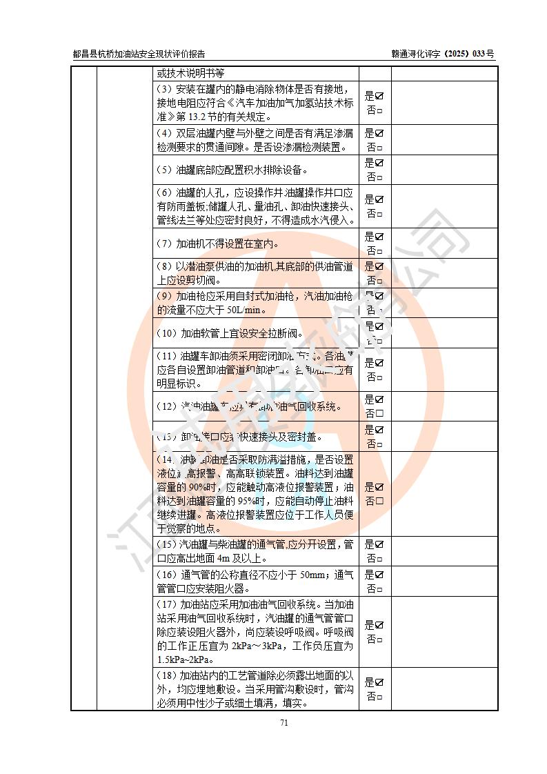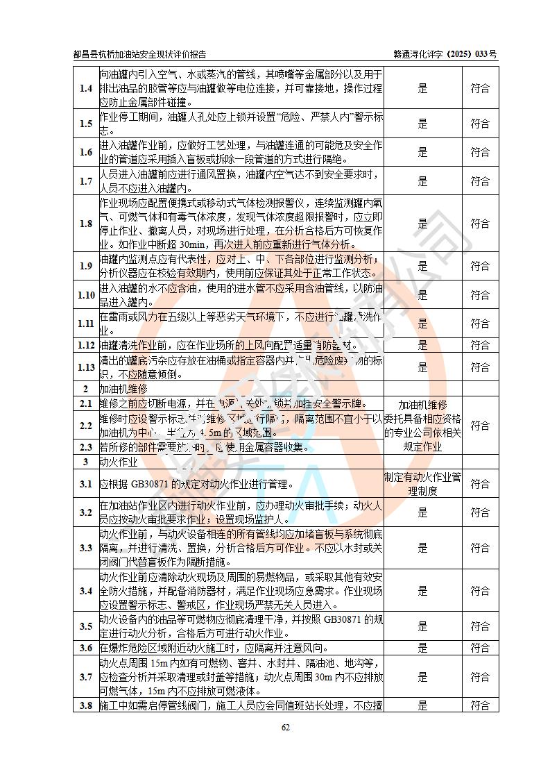 都昌縣杭橋加油站是一家專門從事成品油零售經營的個人獨資企業(yè),投資人張愛香,經營場所位于都昌縣土塘鎮(zhèn)杭橋珠光村。該加油站現有從業(yè)人員4人,其中安全管理人員1人,主要負責人陳閩。 該加油站站區(qū)占地面積833m2,站區(qū)內設置有1臺三槍稅控燃油加油機和1臺雙槍稅控燃油加油機及配套的工藝管線,設有15m3的92#汽油雙層儲罐1臺、15m3的0#柴油雙層儲罐1臺,油品儲罐總容積為30m3(折算成汽油為22.5m3)。按現行《汽車加油加氣加氫站技術標準》對加油站的等級劃分原則,該站屬于三級加油站。 該站由九江市行政審批局換發(fā)《危險化學品經營許可證》(證號:贛九行審經(甲)字[2022]000080號),**期限2022年06月27日至2025年06月26日。 |