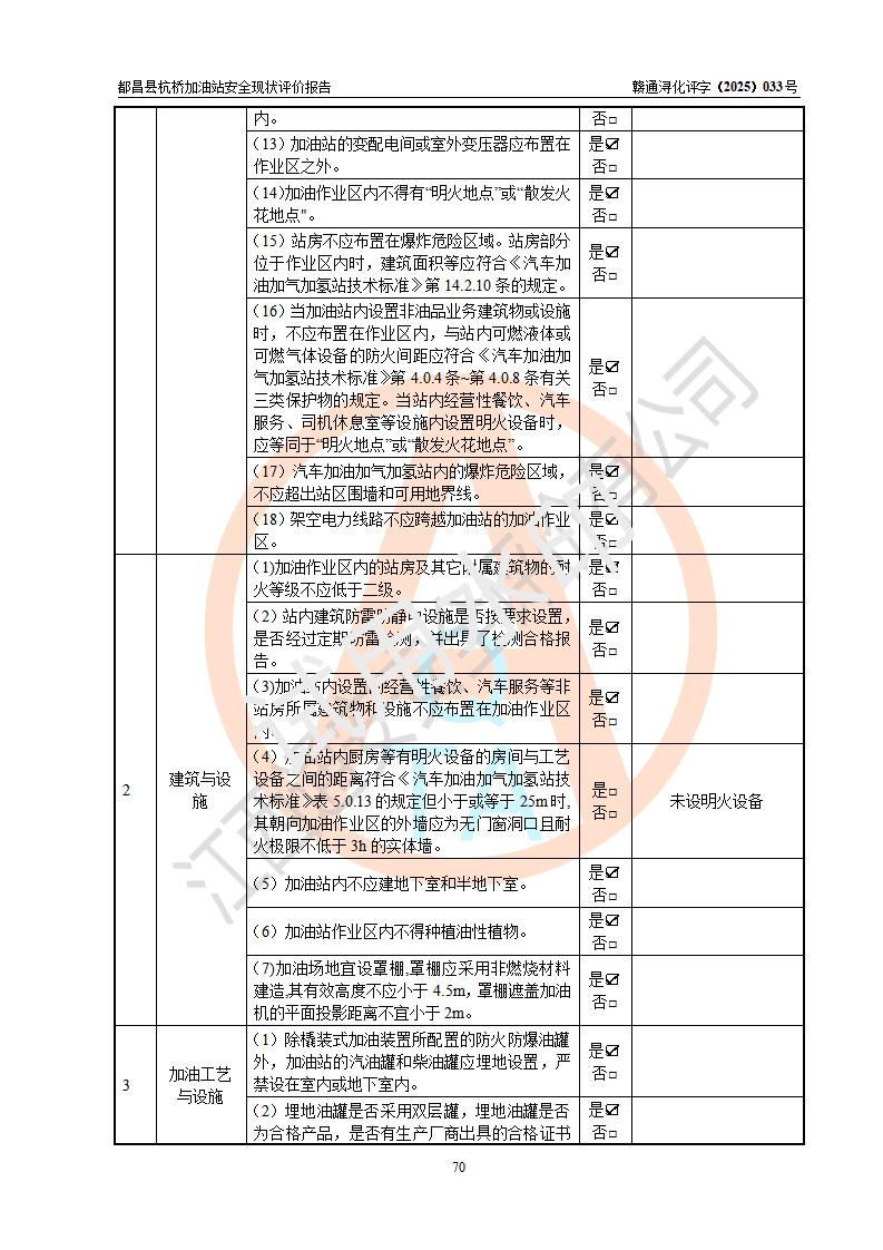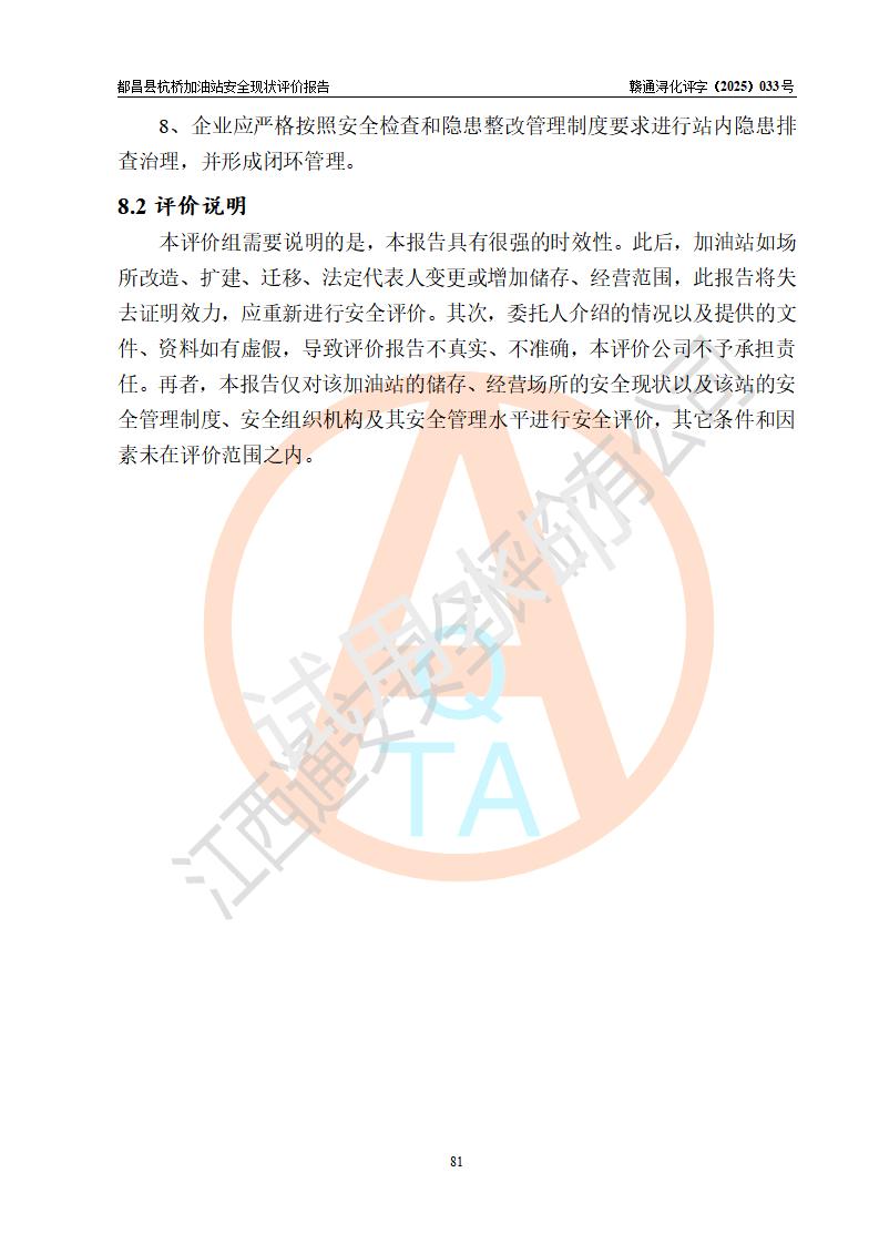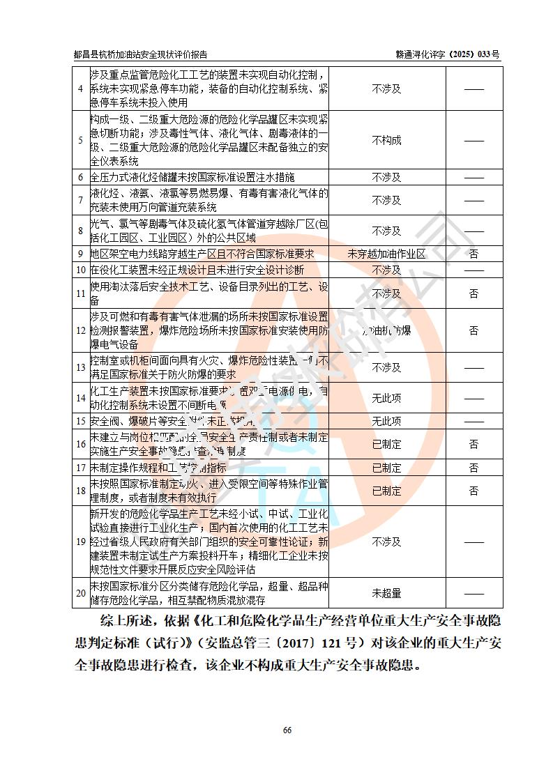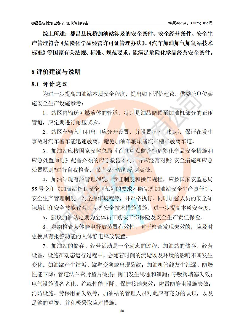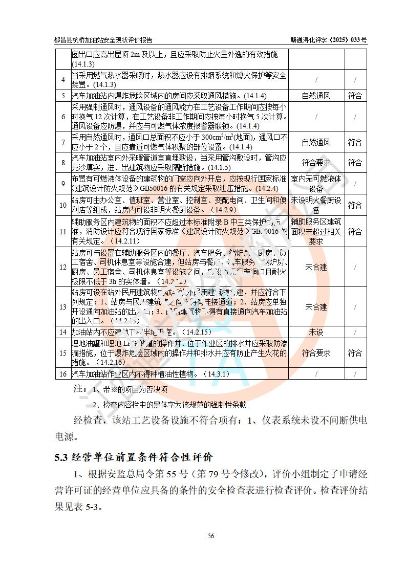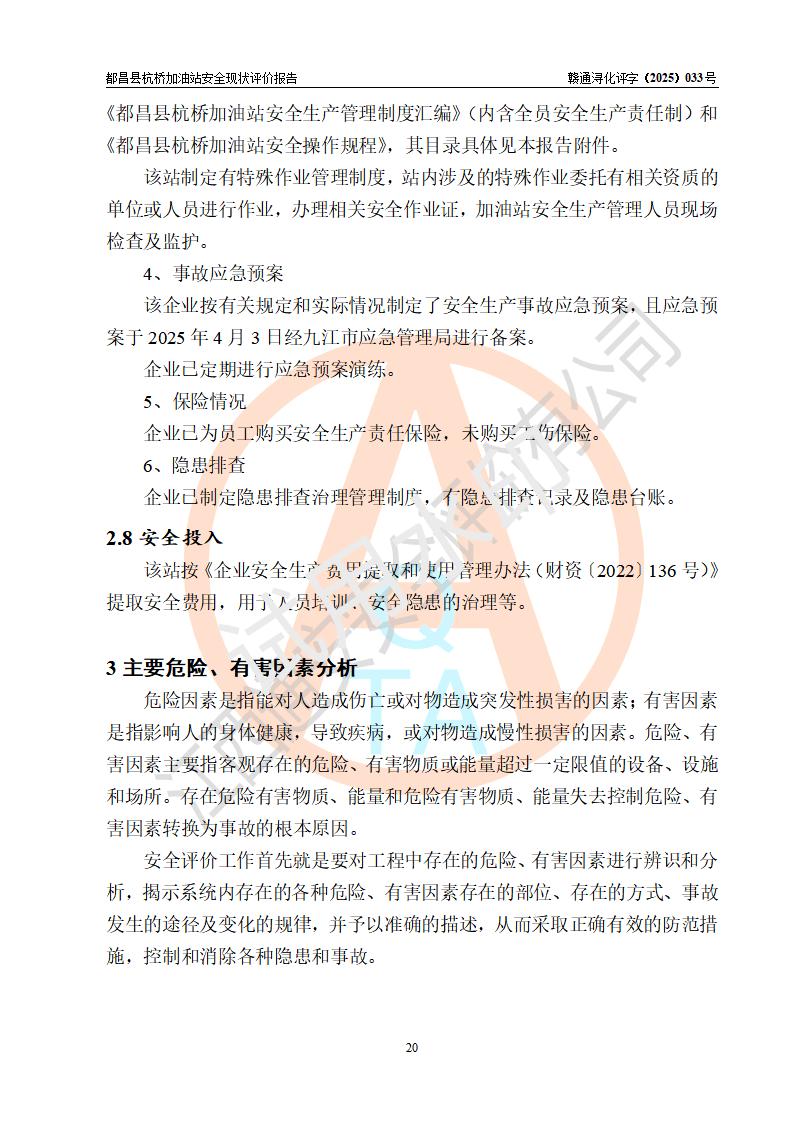 都昌縣杭橋加油站是一家專門從事成品油零售經營的個人獨資企業(yè),投資人張愛香,經營場所位于都昌縣土塘鎮(zhèn)杭橋珠光村。該加油站現有從業(yè)人員4人,其中安全管理人員1人,主要負責人陳閩。 該加油站站區(qū)占地面積833m2,站區(qū)內設置有1臺三槍稅控燃油加油機和1臺雙槍稅控燃油加油機及配套的工藝管線,設有15m3的92#汽油雙層儲罐1臺、15m3的0#柴油雙層儲罐1臺,油品儲罐總容積為30m3(折算成汽油為22.5m3)。按現行《汽車加油加氣加氫站技術標準》對加油站的等級劃分原則,該站屬于三級加油站。 該站由九江市行政審批局換發(fā)《危險化學品經營許可證》(證號:贛九行審經(甲)字[2022]000080號),**期限2022年06月27日至2025年06月26日。 |