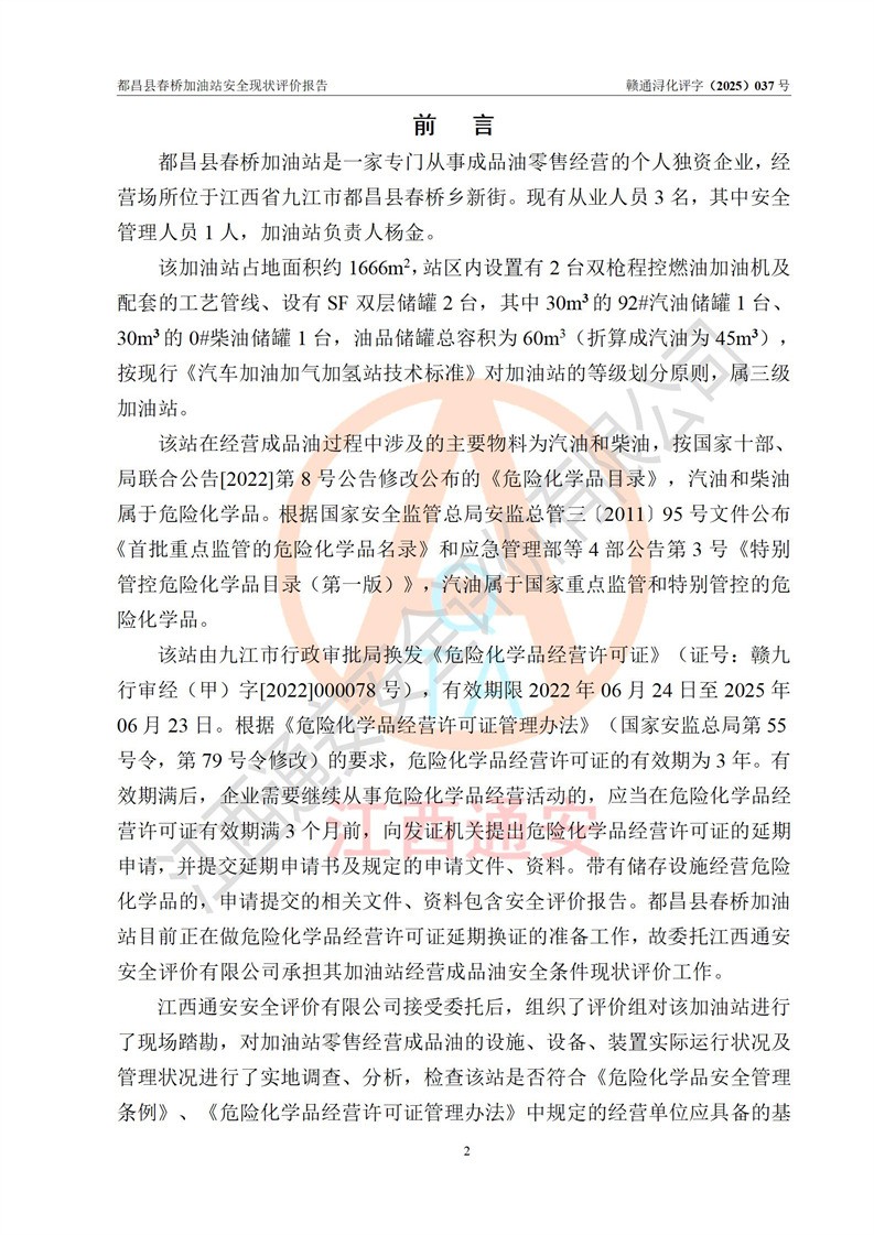 評(píng)價(jià)報(bào)告名稱(chēng) | 都昌縣春橋加油站安全現(xiàn)狀評(píng)價(jià)報(bào)告 | |||