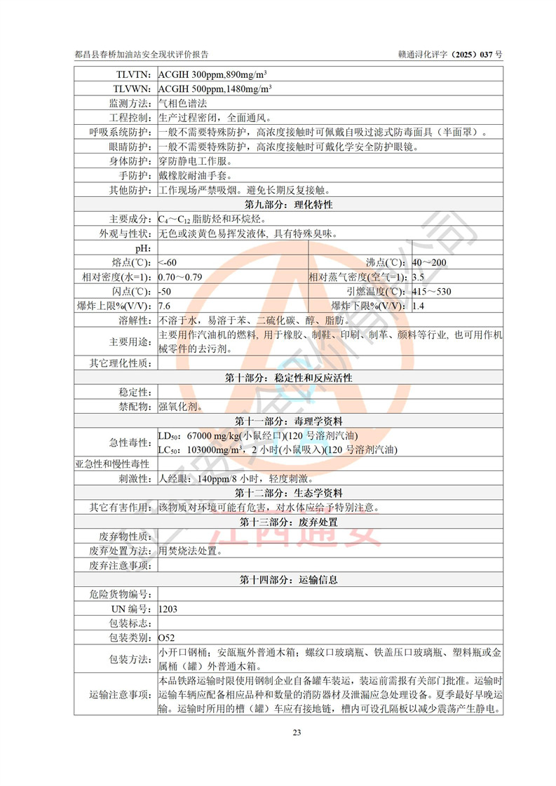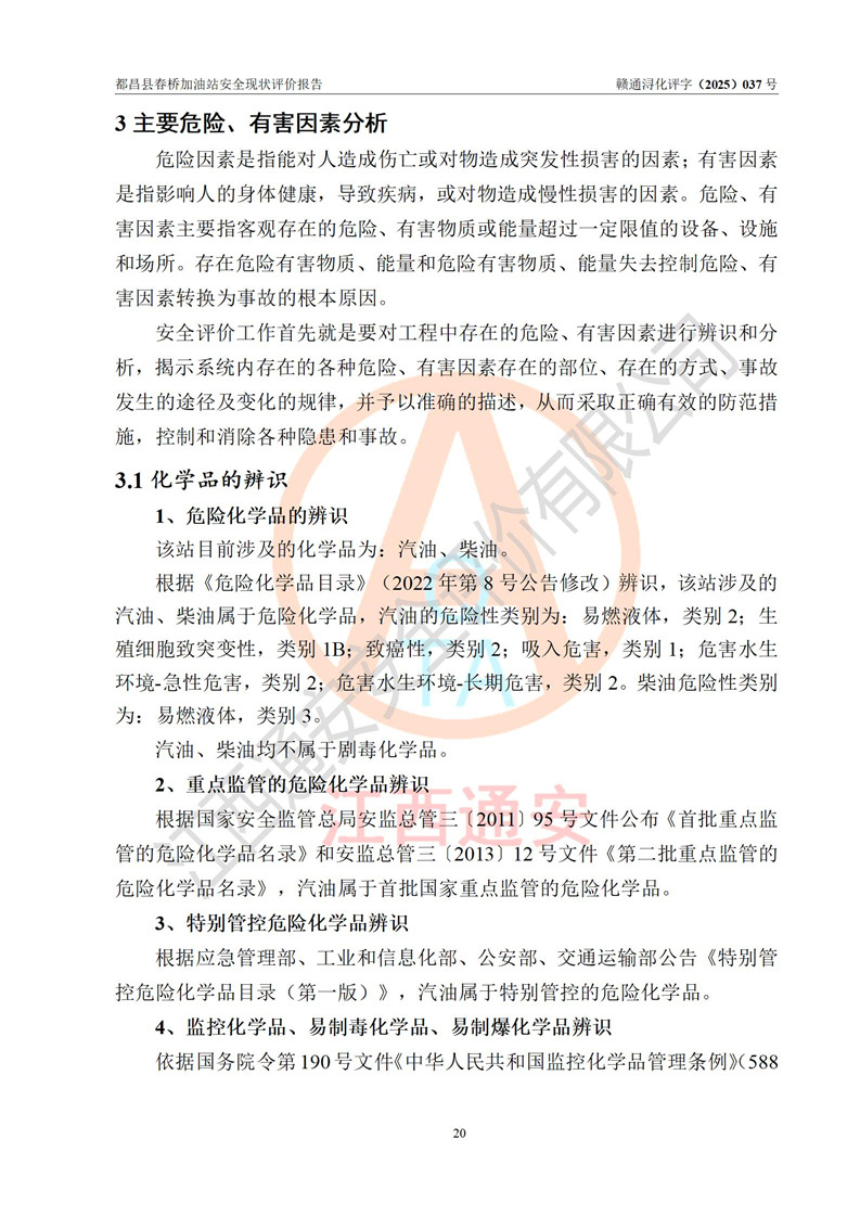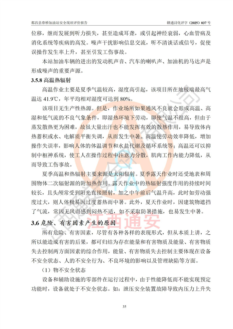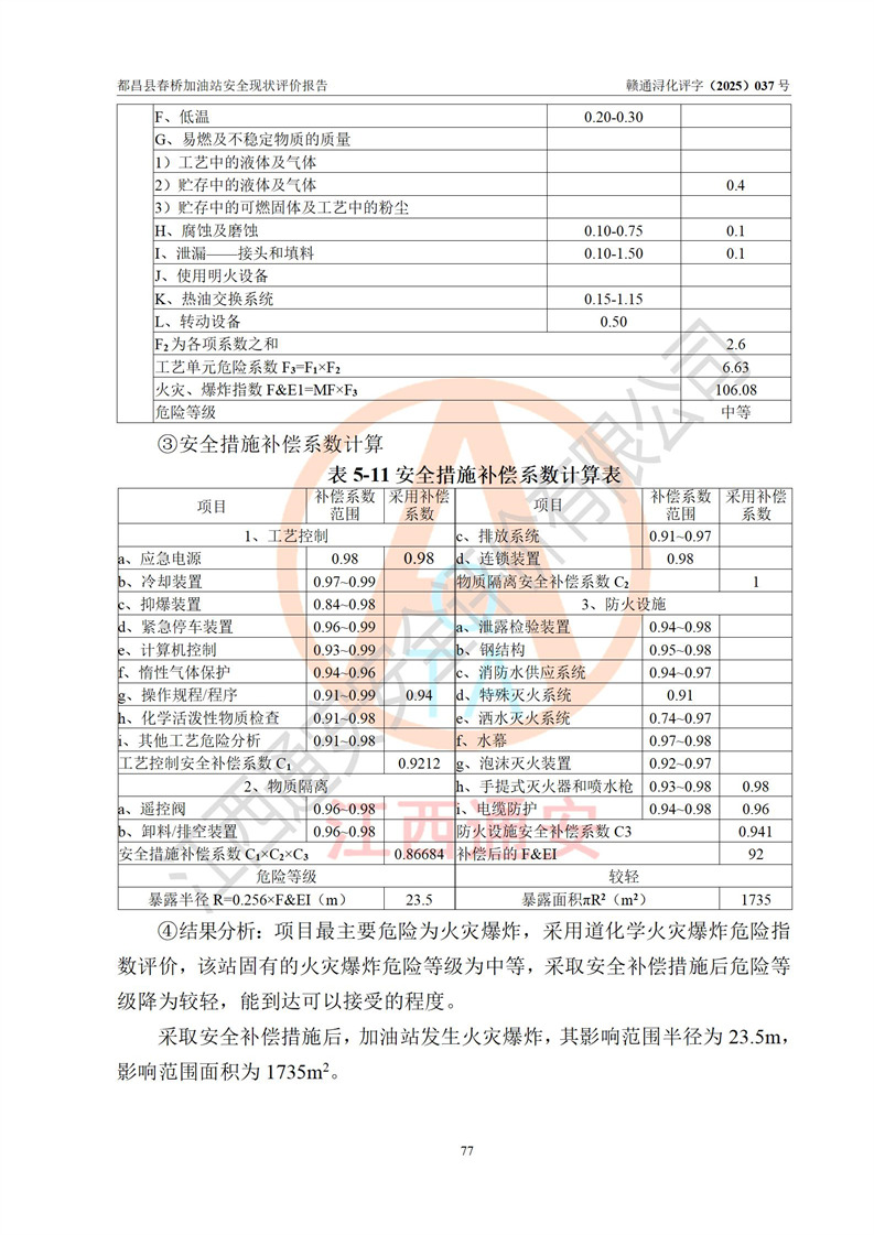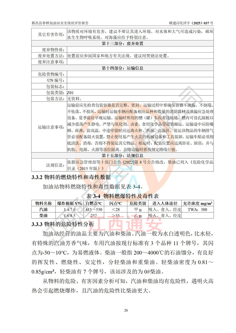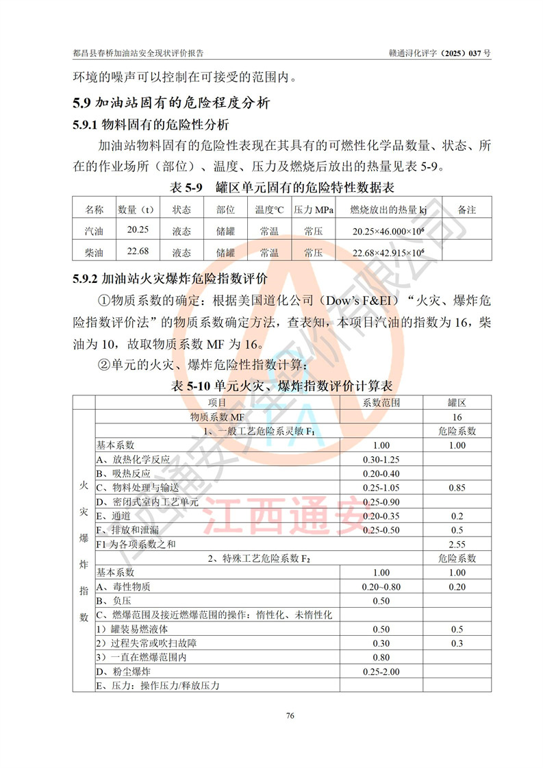 評(píng)價(jià)結(jié)論 | 都昌縣春橋加油站涉及的安全條件、安全經(jīng)營(yíng)條件、安全生產(chǎn)管理符合《危險(xiǎn)化學(xué)品經(jīng)營(yíng)許可證管理辦法》、《汽車(chē)加油加氣加氫站技術(shù)標(biāo)準(zhǔn)》等**有關(guān)法規(guī)、標(biāo)準(zhǔn)、規(guī)范要求,能滿(mǎn)足危險(xiǎn)化學(xué)品經(jīng)營(yíng)安全條件。 | |||