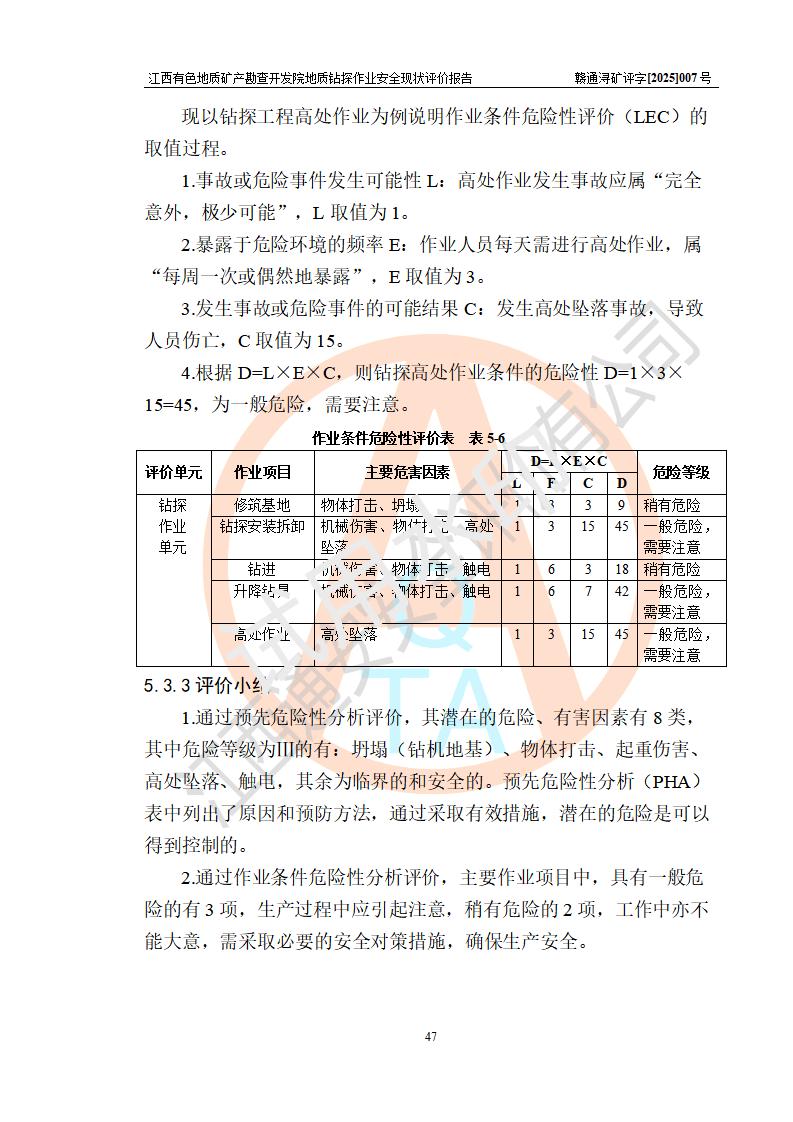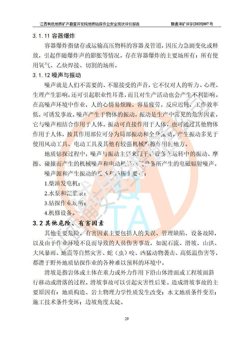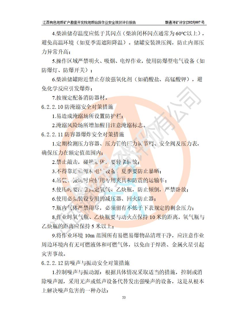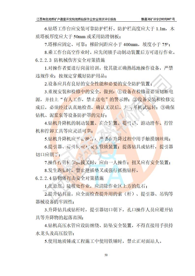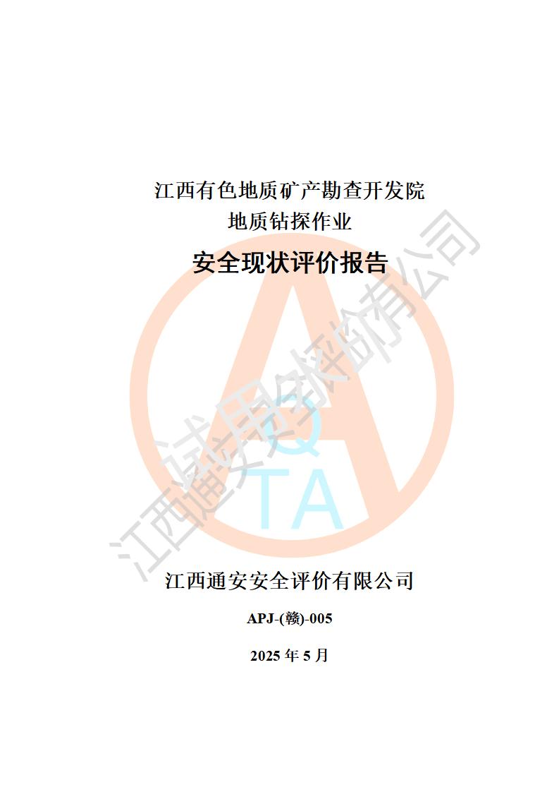 報告名稱 | 江西有色地質(zhì)礦產(chǎn)勘查開發(fā)院地質(zhì)鉆探作業(yè)安全現(xiàn)狀評價報告 | |||||