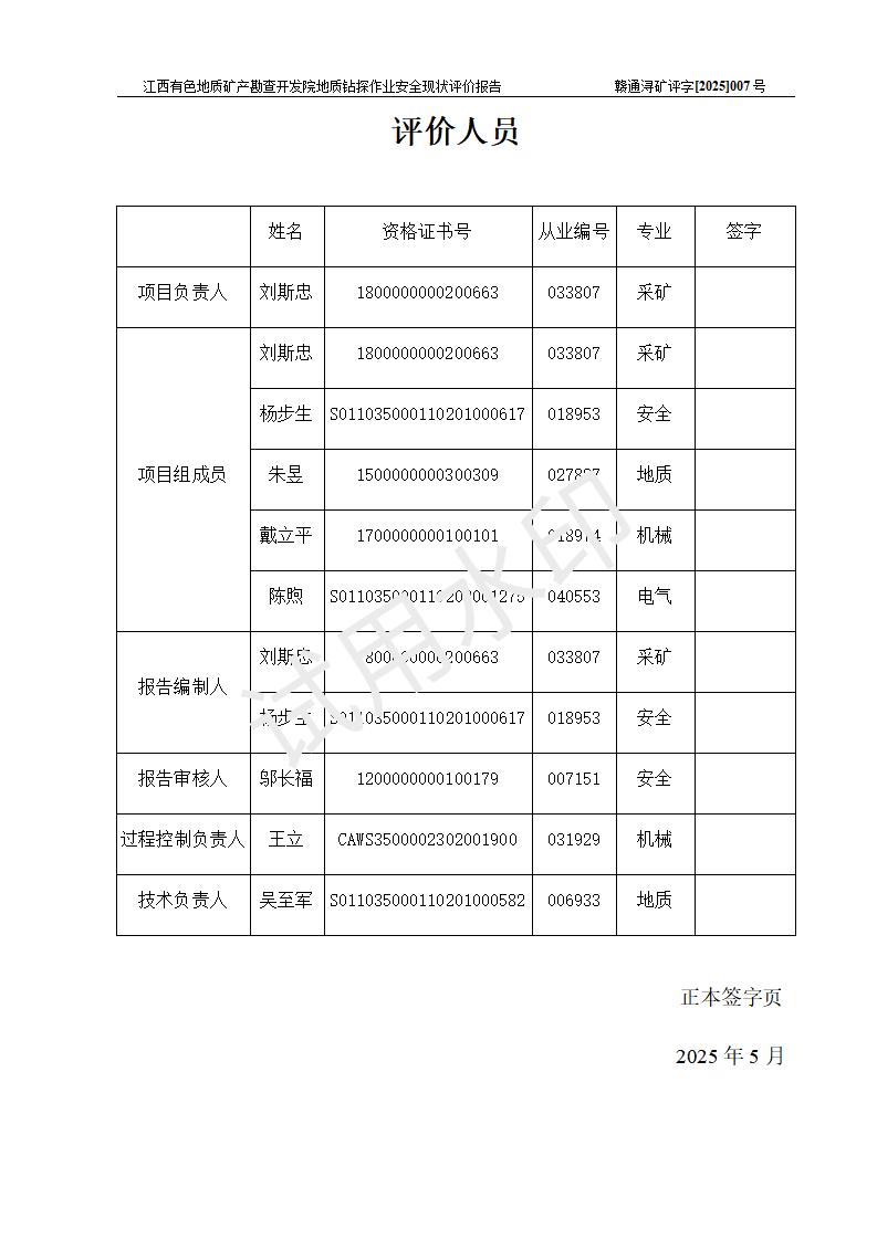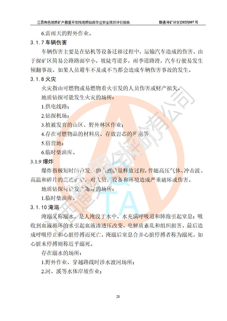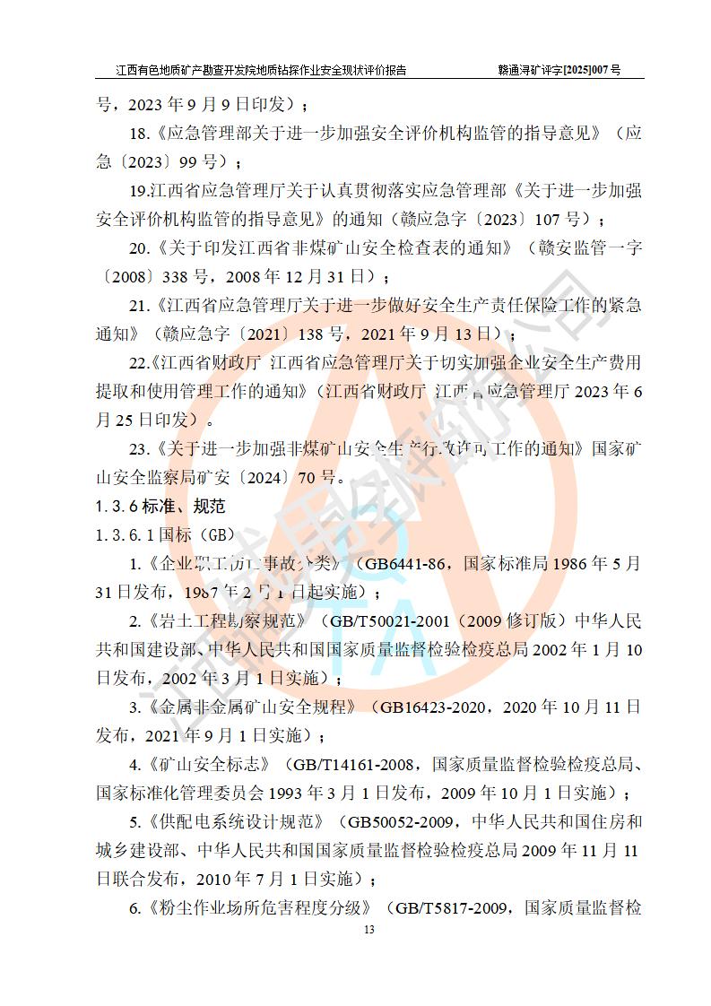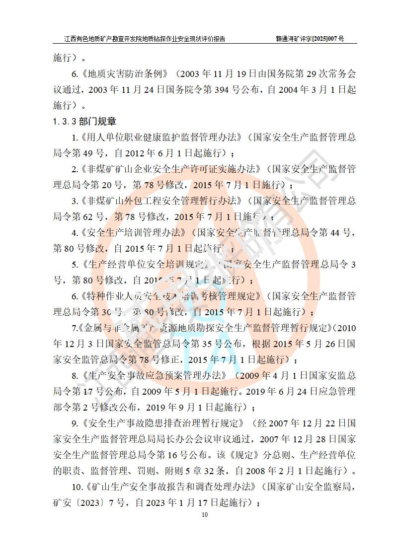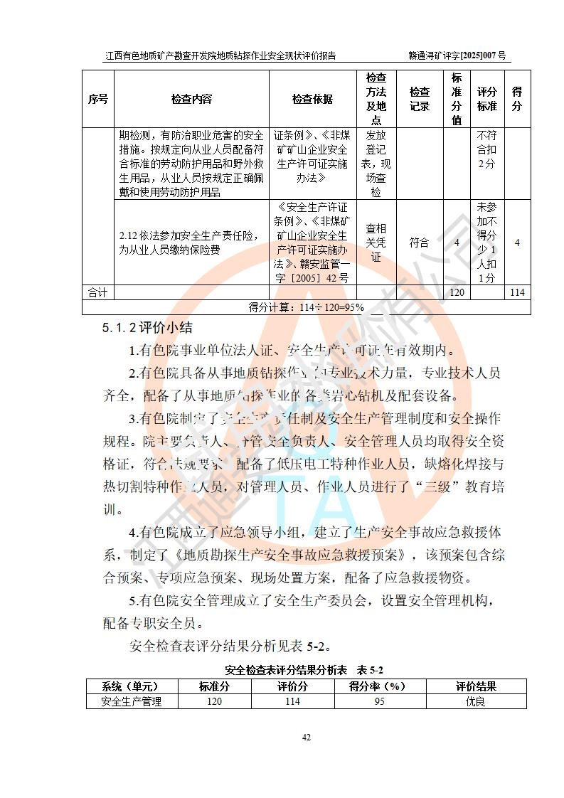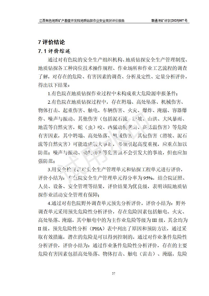 報告名稱 | 江西有色地質(zhì)礦產(chǎn)勘查開發(fā)院地質(zhì)鉆探作業(yè)安全現(xiàn)狀評價報告 | |||||