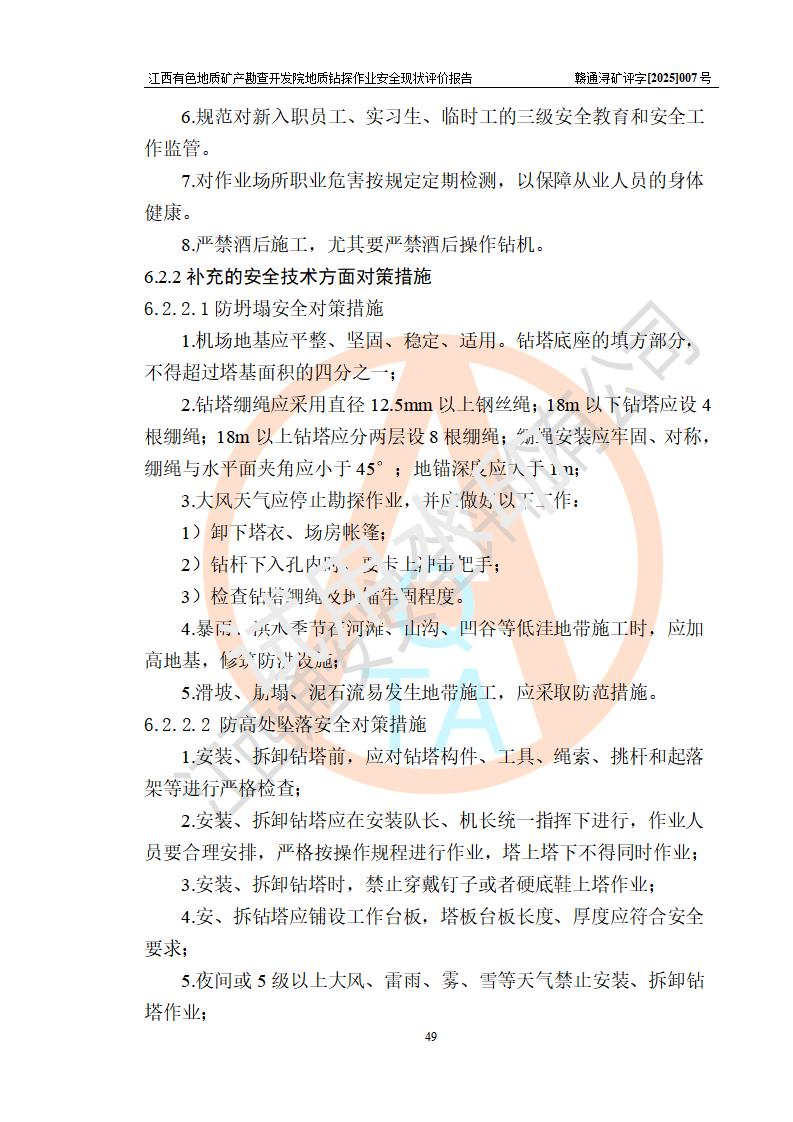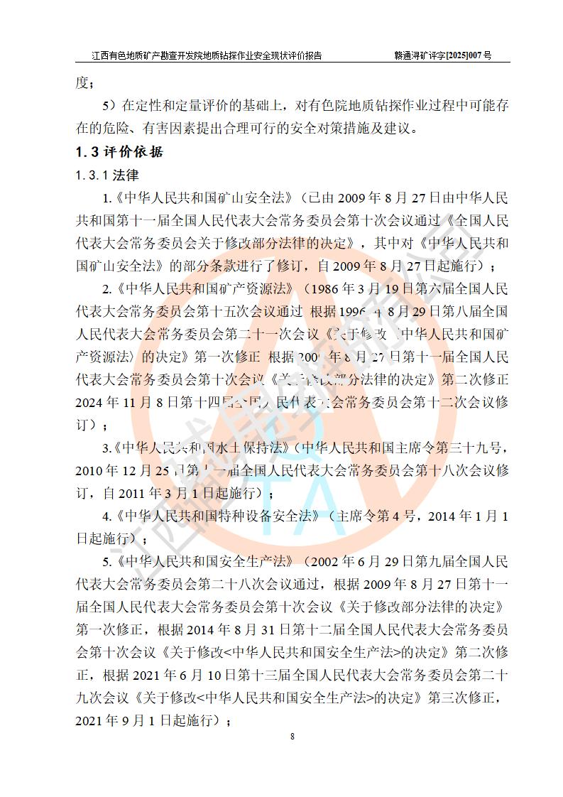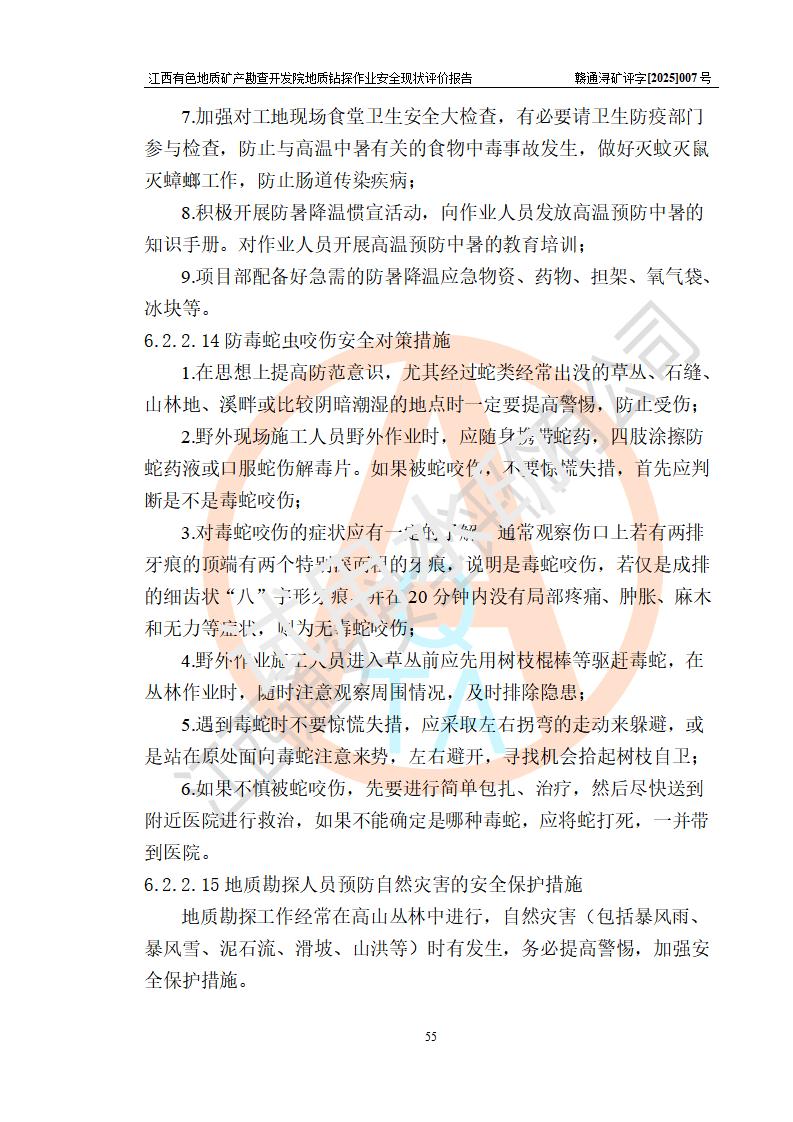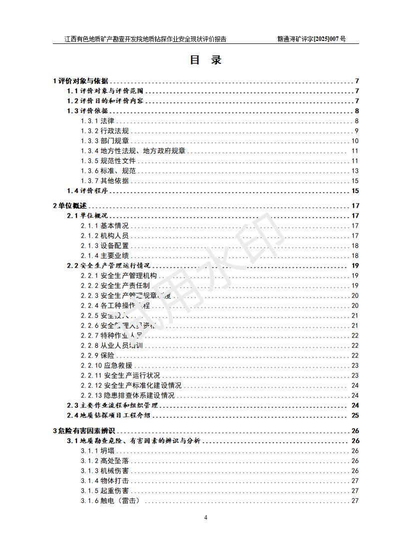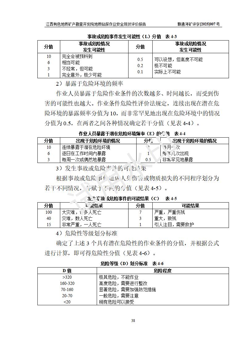 報告名稱 | 江西有色地質(zhì)礦產(chǎn)勘查開發(fā)院地質(zhì)鉆探作業(yè)安全現(xiàn)狀評價報告 | |||||