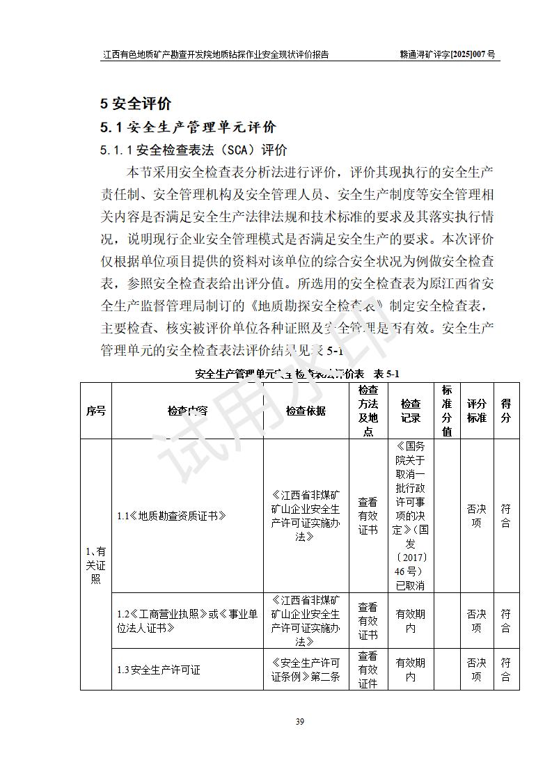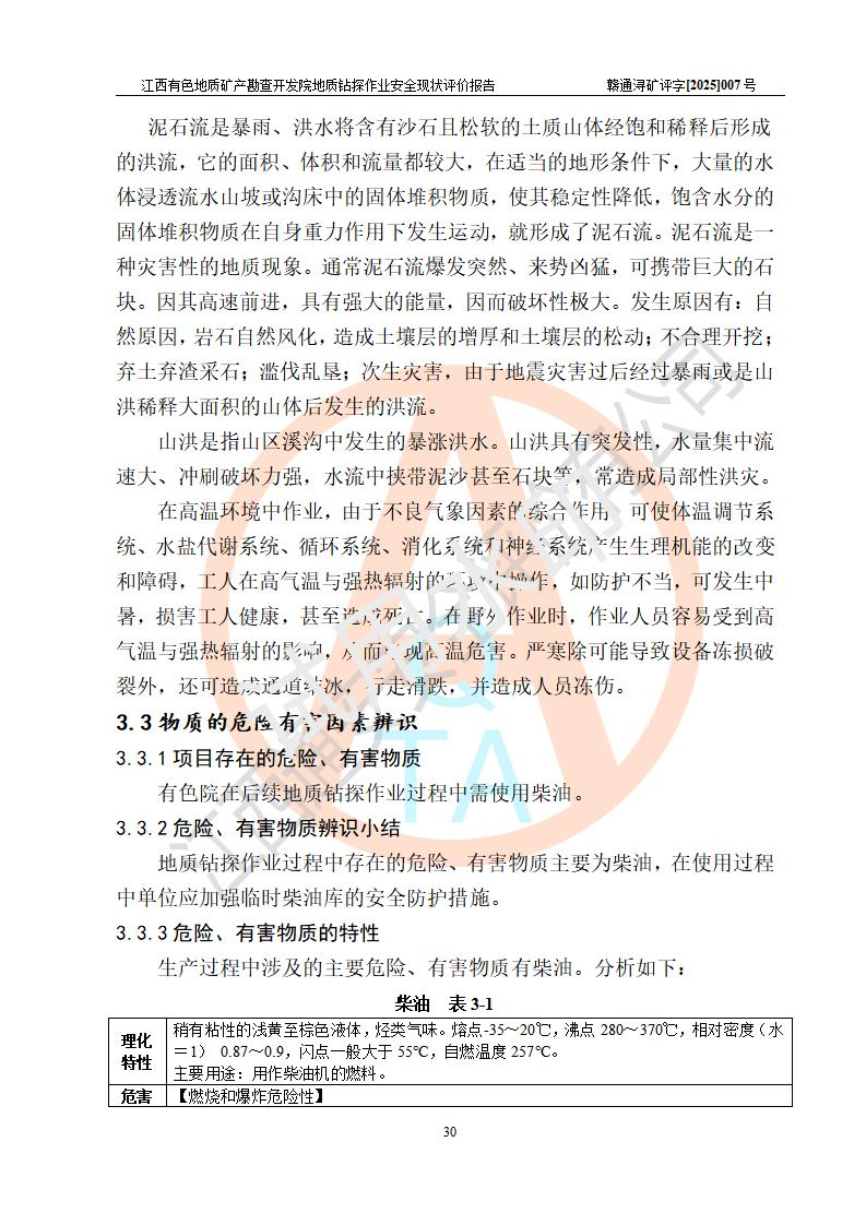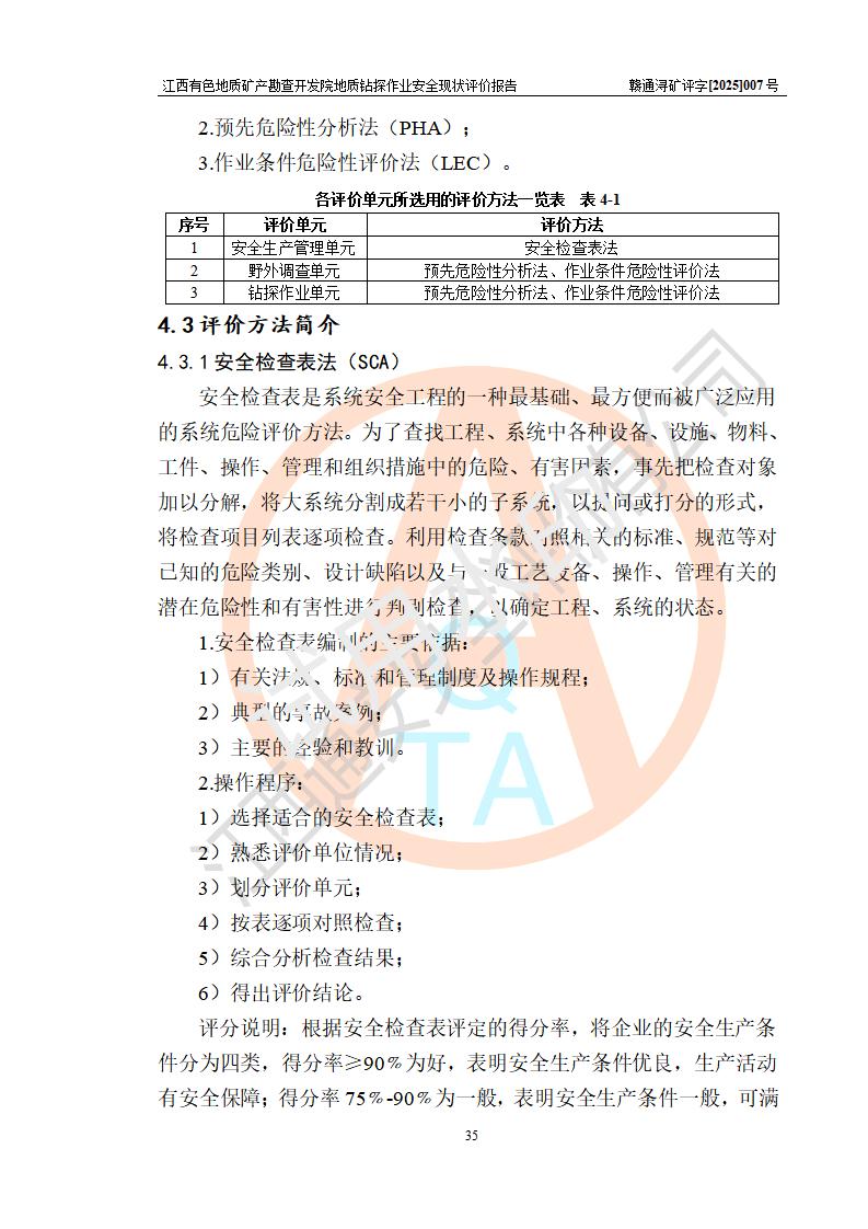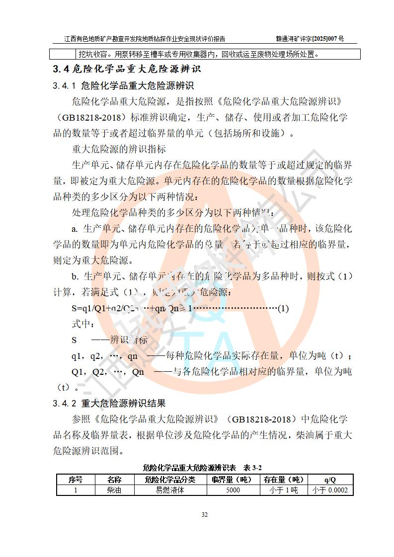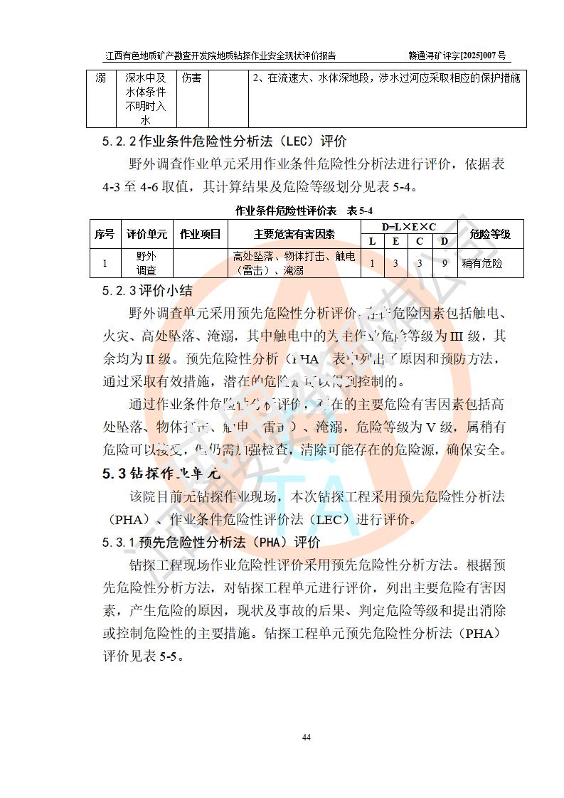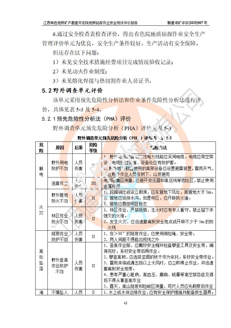 報告名稱 | 江西有色地質(zhì)礦產(chǎn)勘查開發(fā)院地質(zhì)鉆探作業(yè)安全現(xiàn)狀評價報告 | |||||