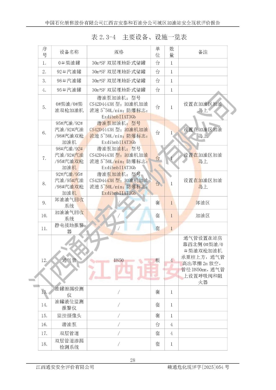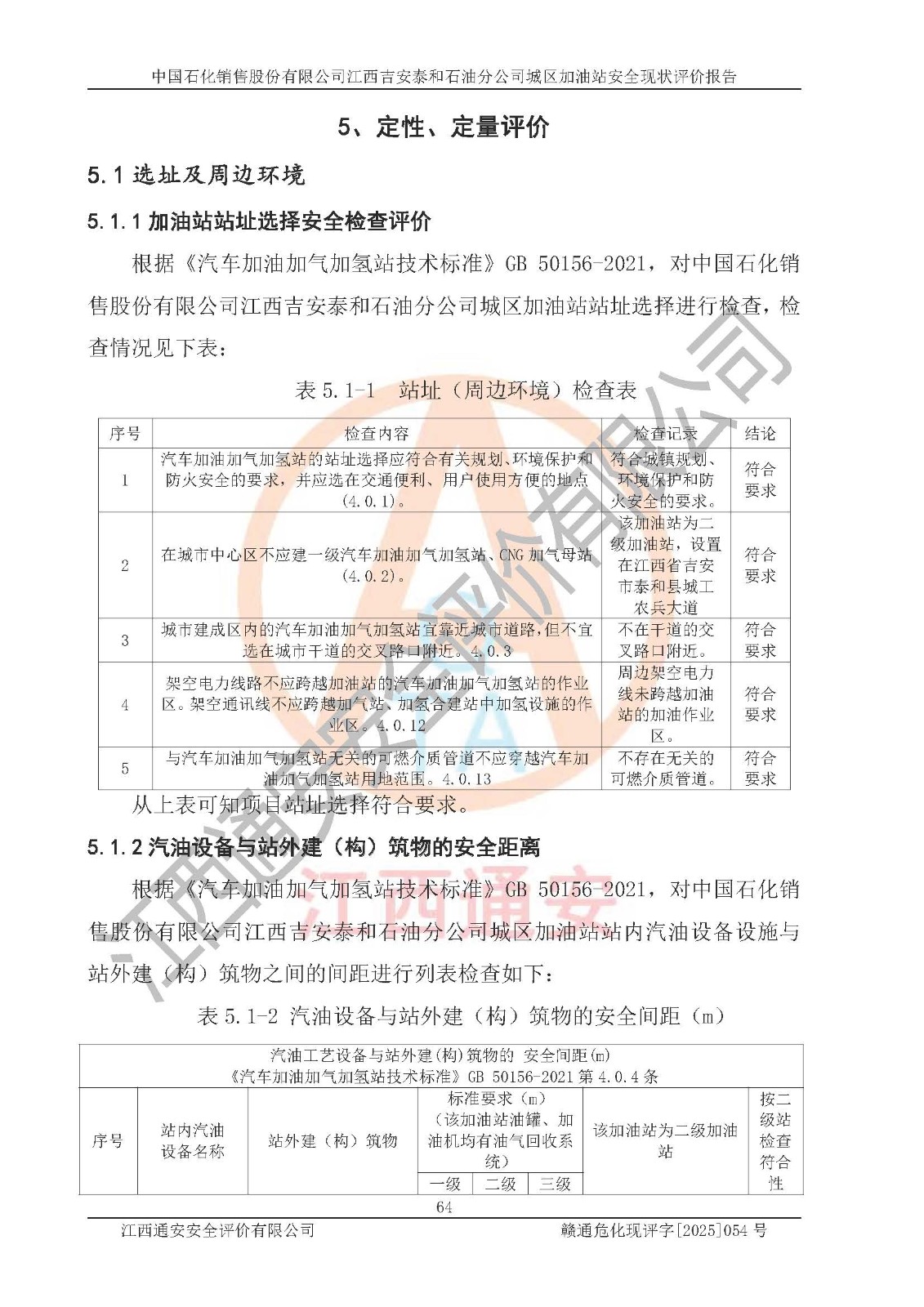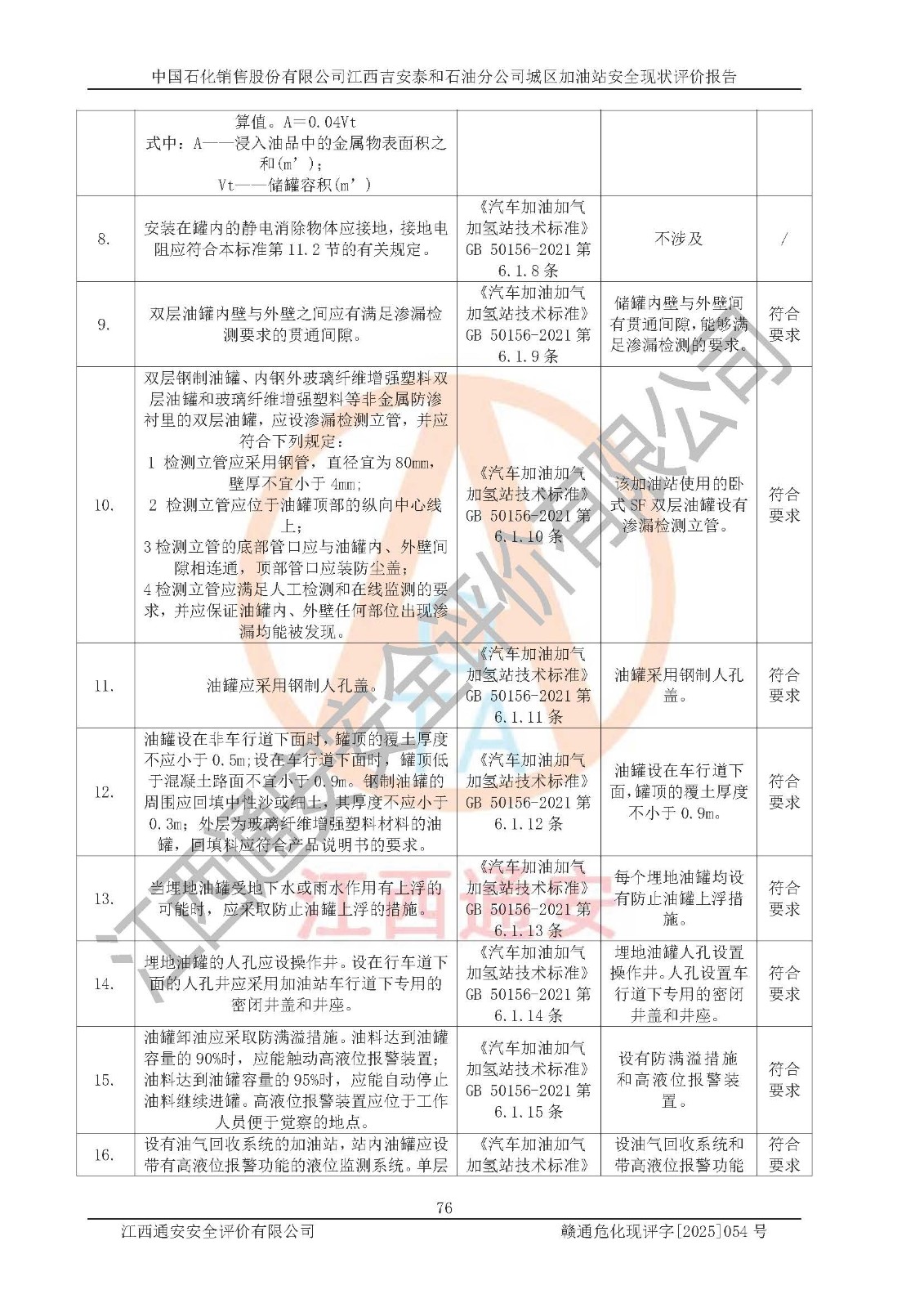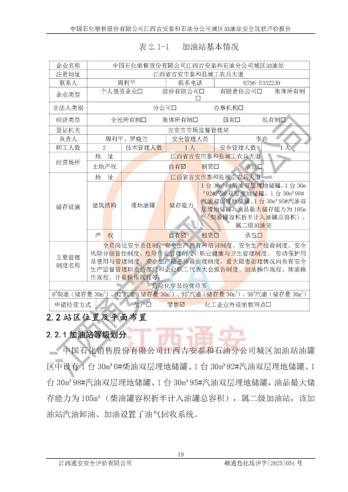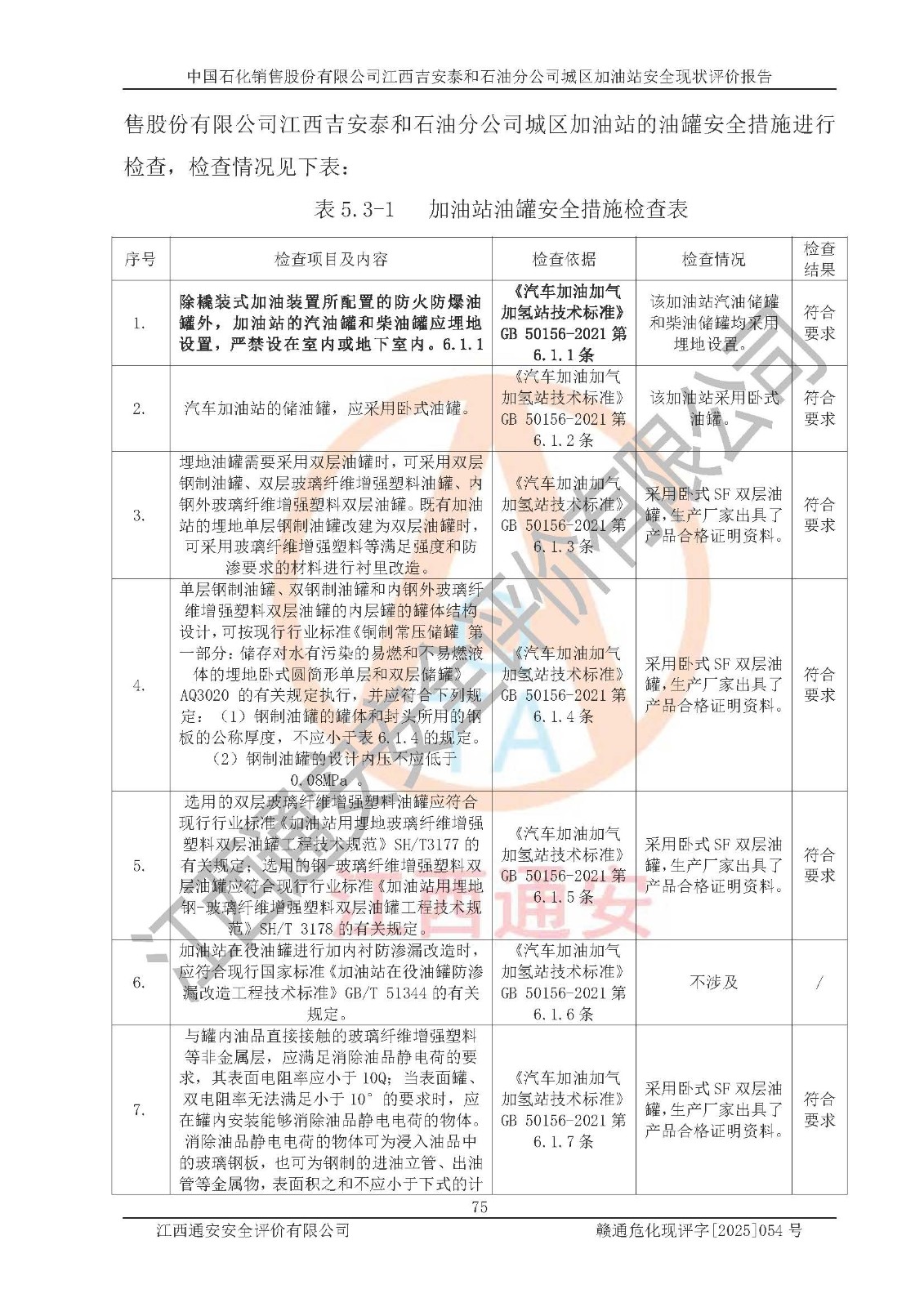 項(xiàng)目名稱 | 中國石化銷售股份有限公司江西吉安泰和石油分公司城區(qū)加油站 安全現(xiàn)狀評(píng)價(jià)報(bào)告 | ||||