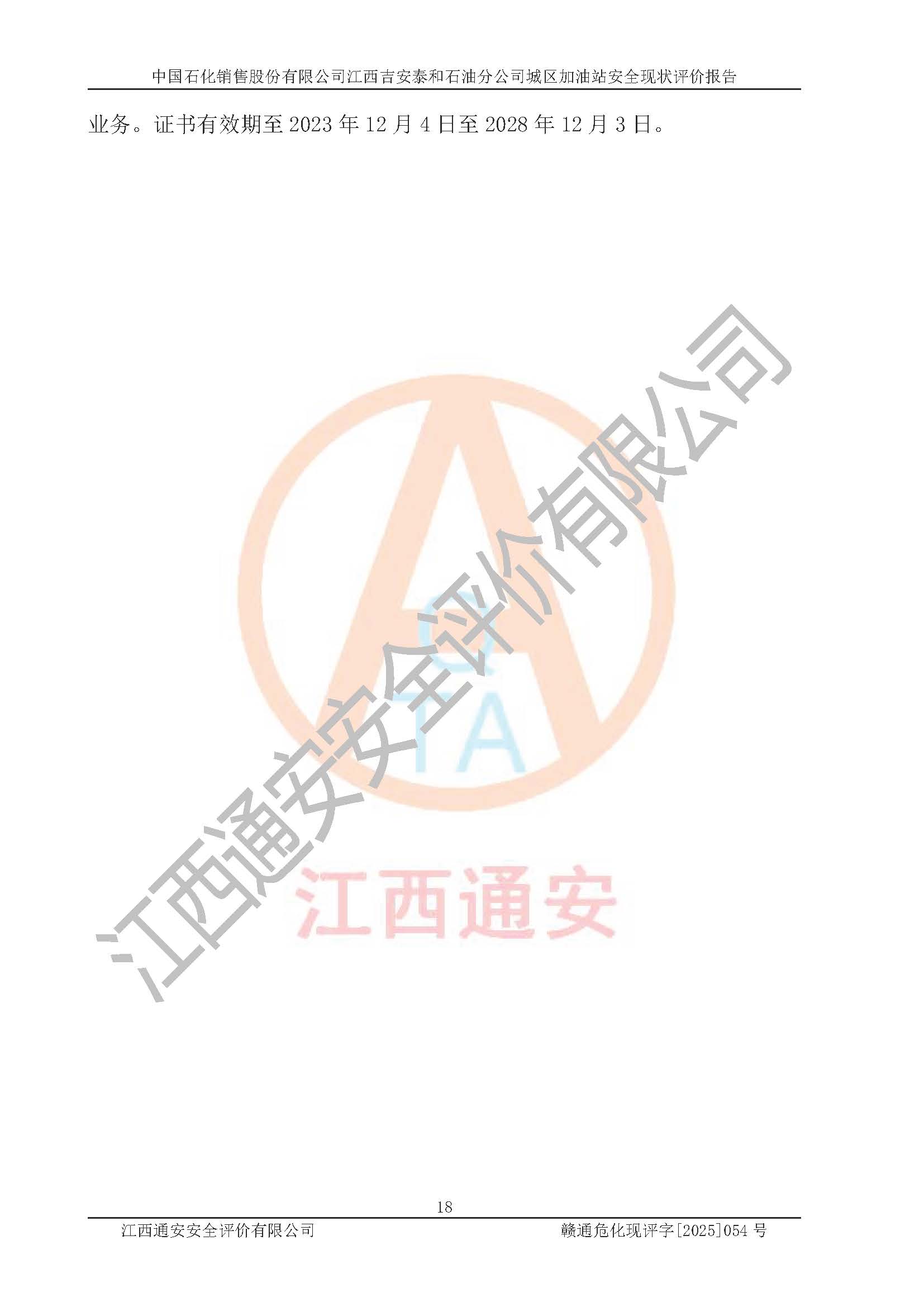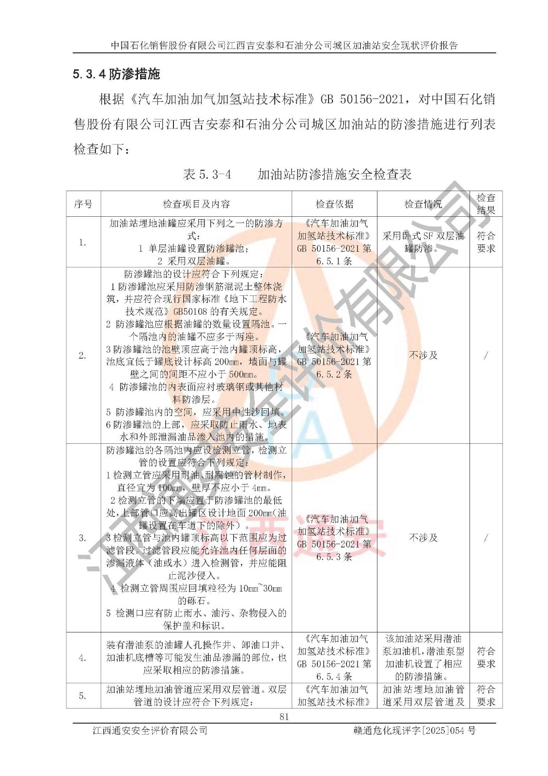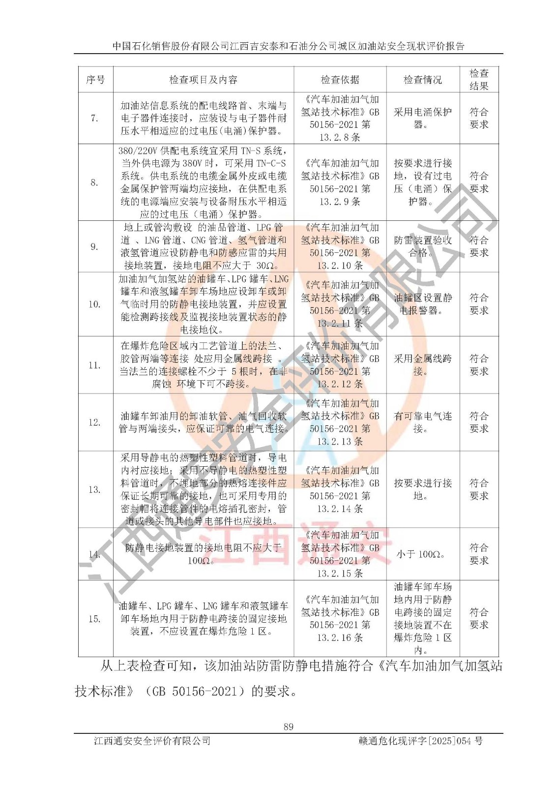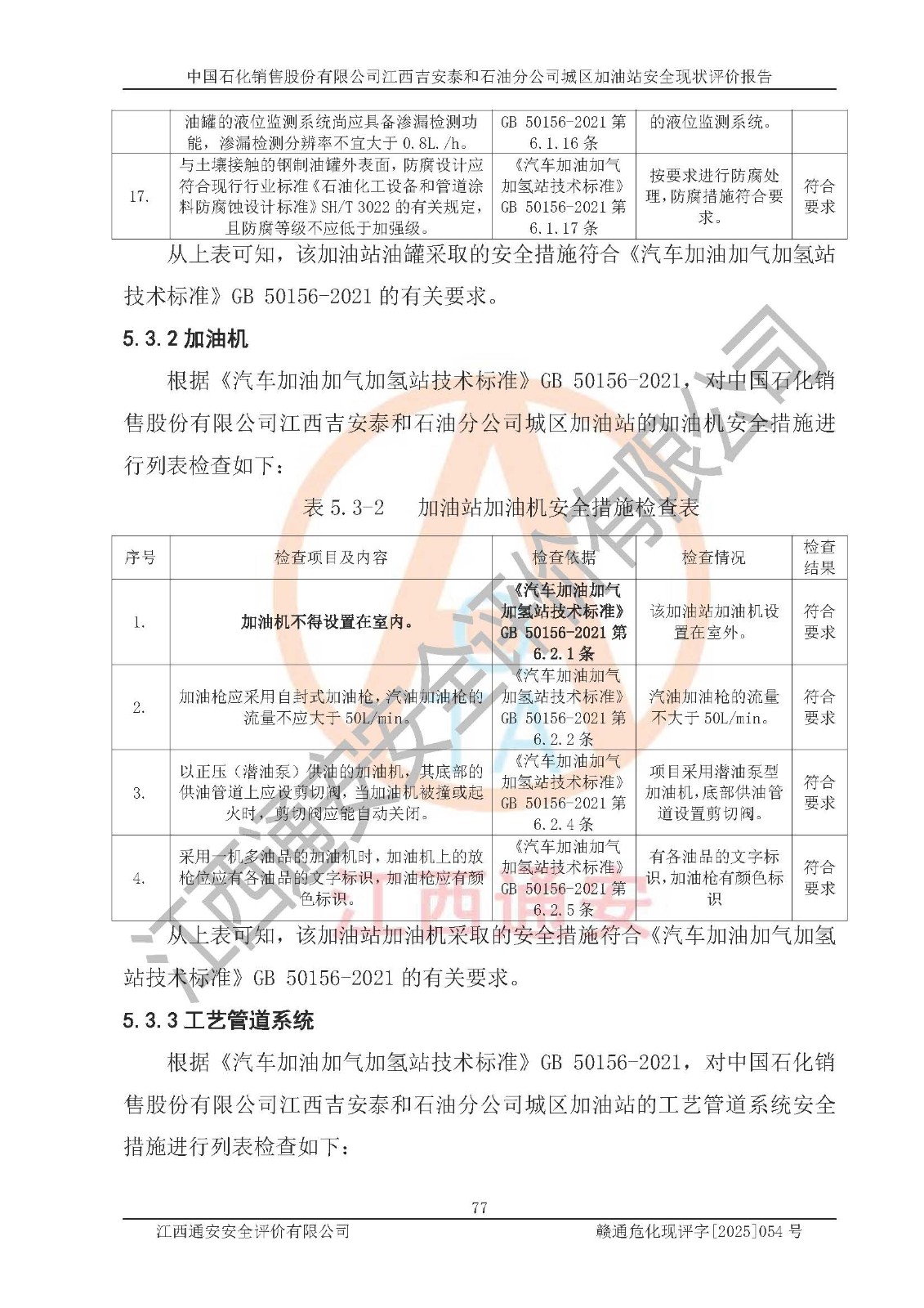 項(xiàng)目名稱 | 中國石化銷售股份有限公司江西吉安泰和石油分公司城區(qū)加油站 安全現(xiàn)狀評(píng)價(jià)報(bào)告 | ||||