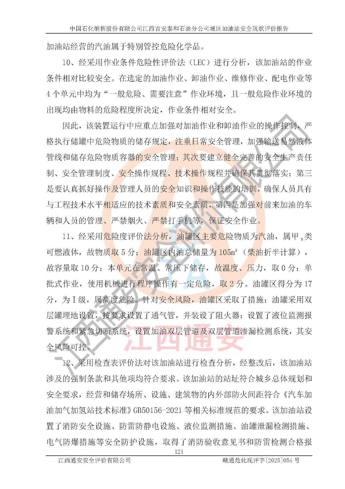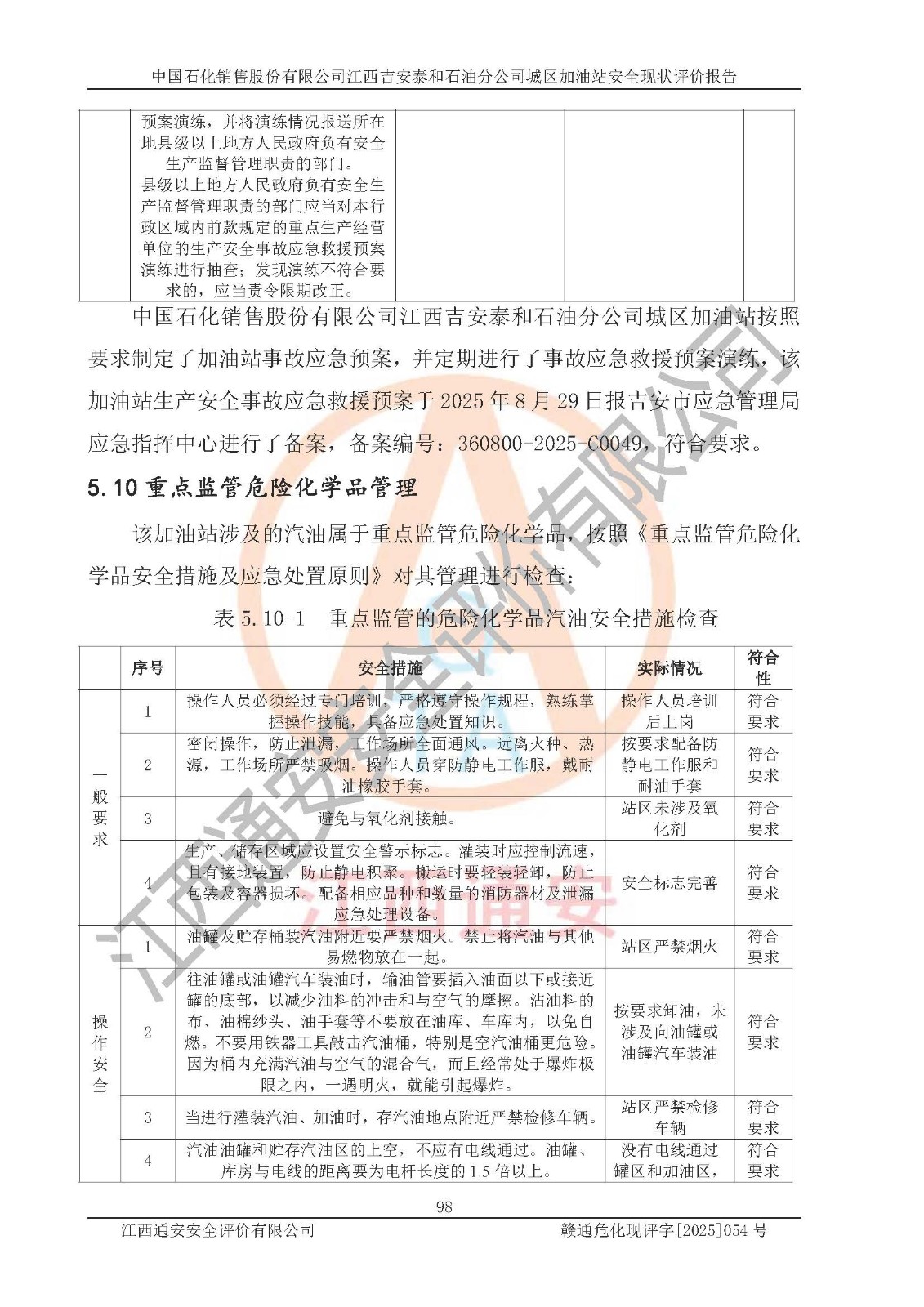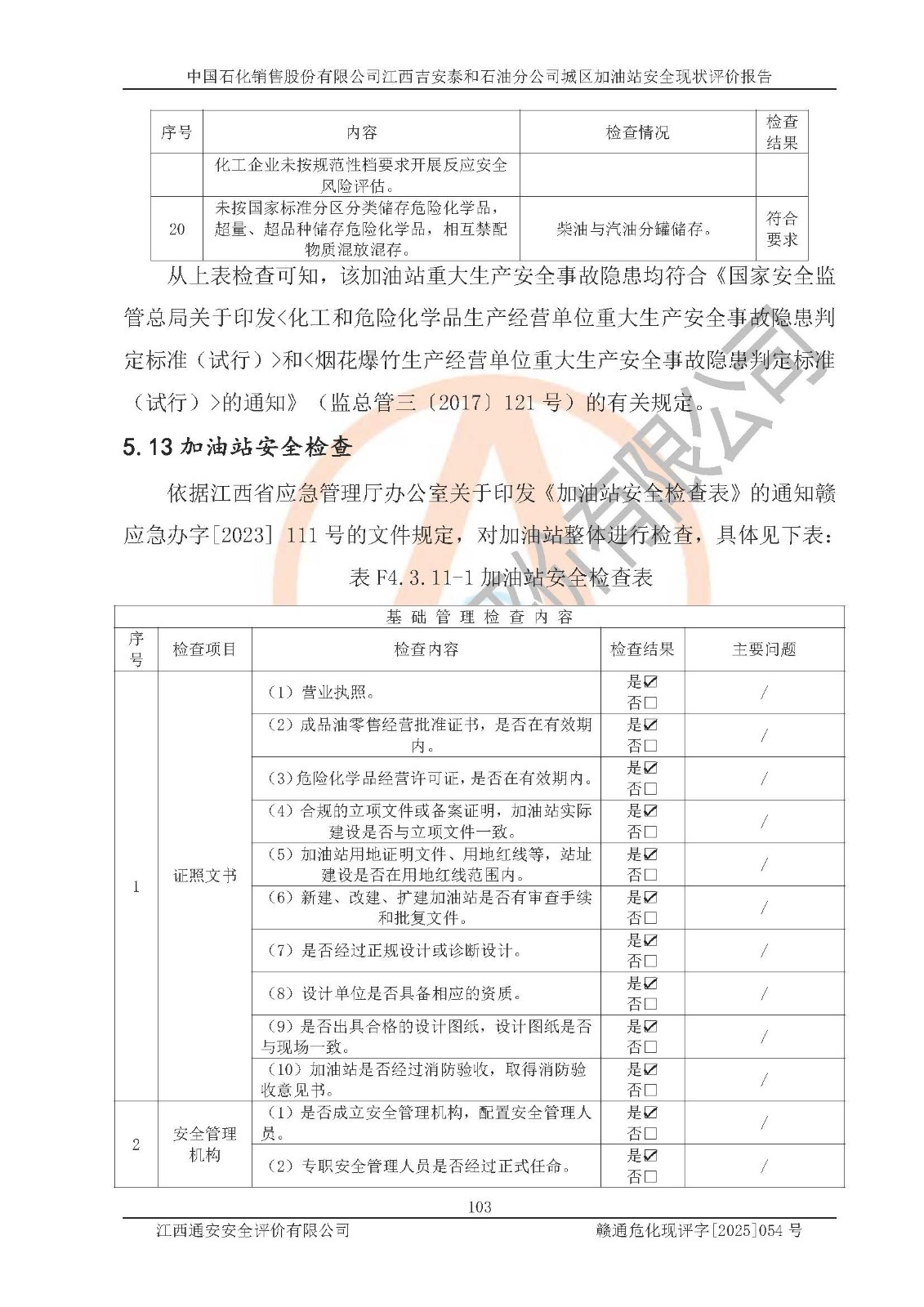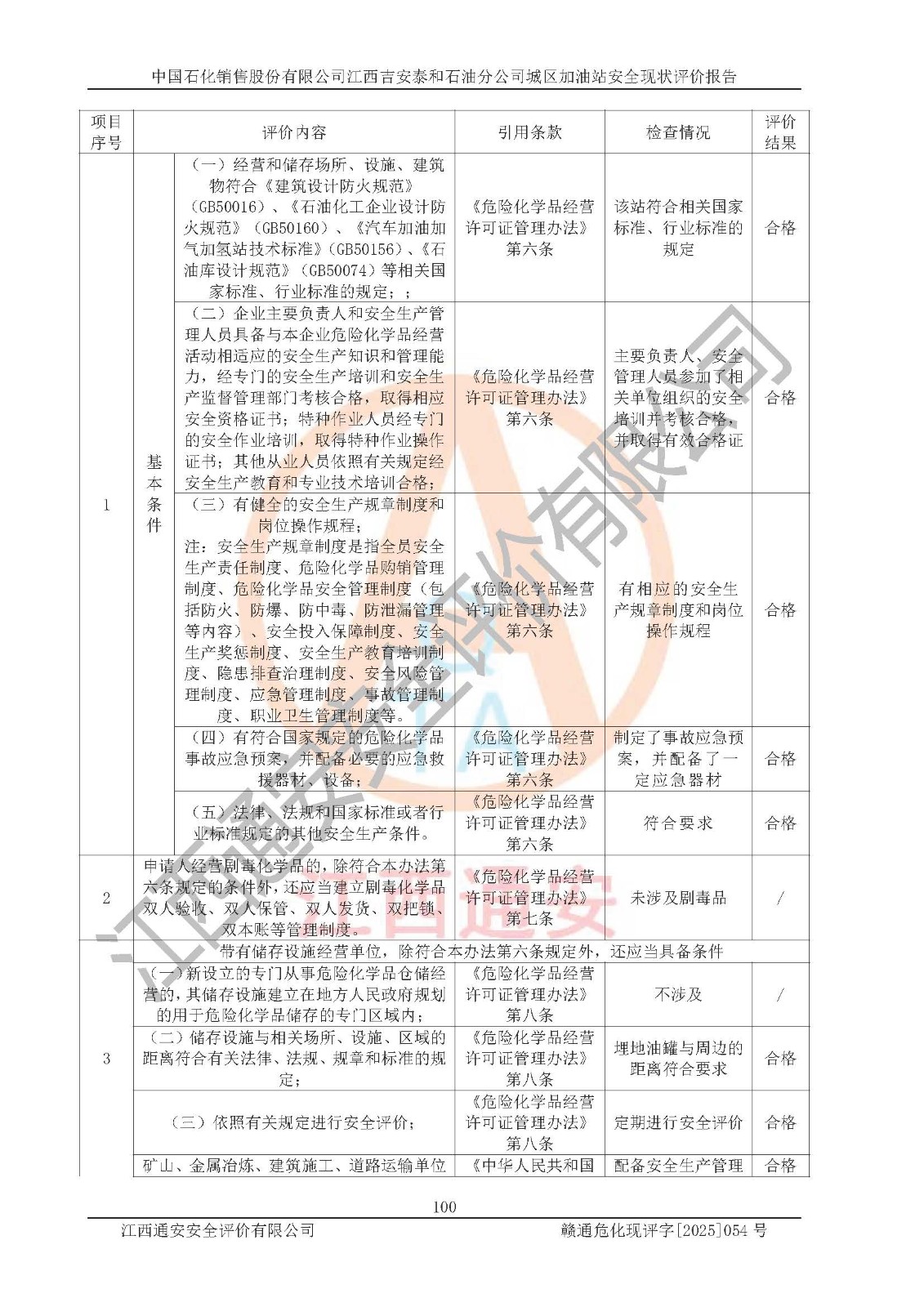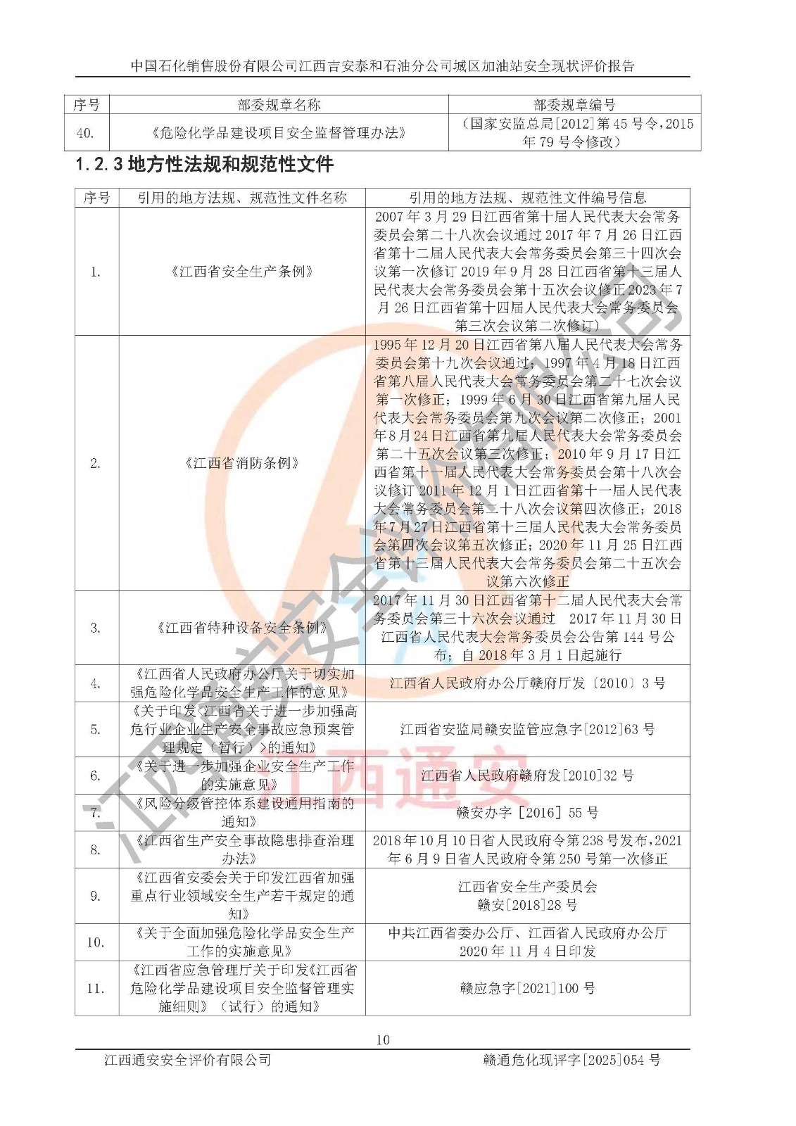 項(xiàng)目名稱 | 中國石化銷售股份有限公司江西吉安泰和石油分公司城區(qū)加油站 安全現(xiàn)狀評(píng)價(jià)報(bào)告 | ||||