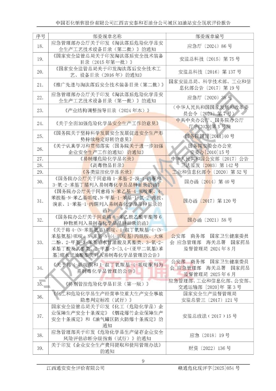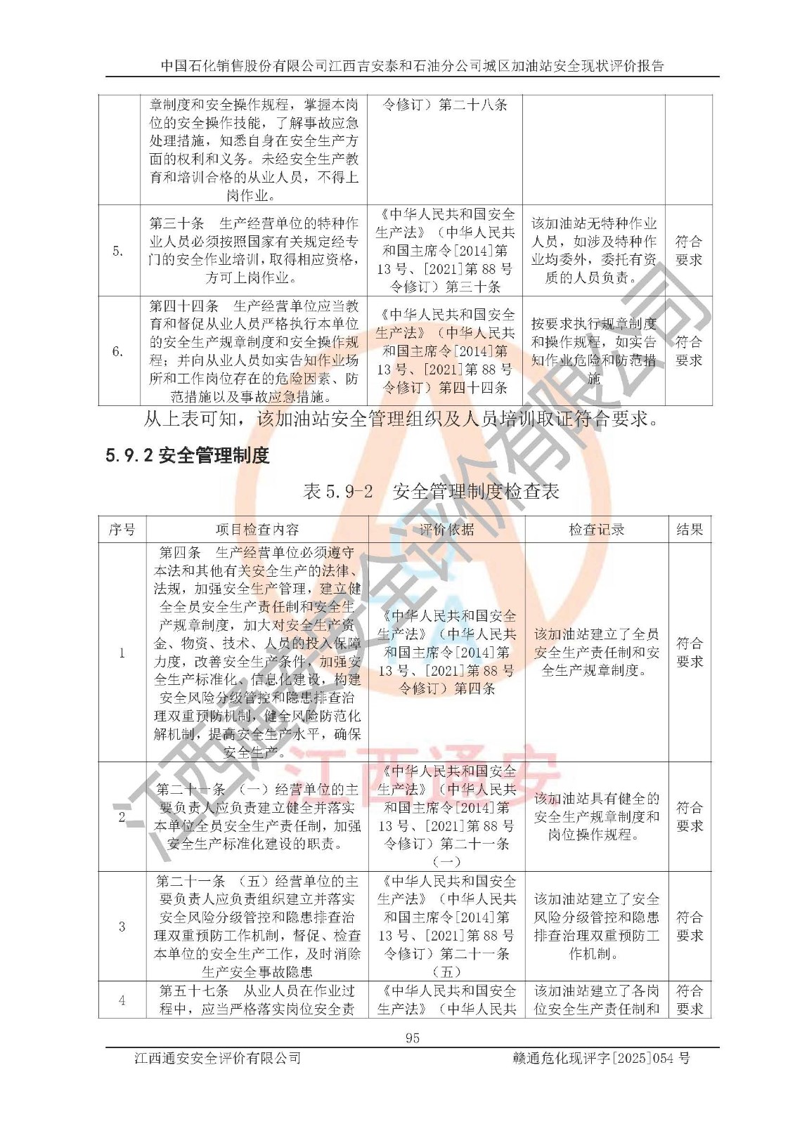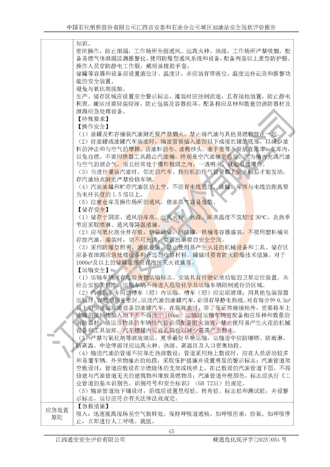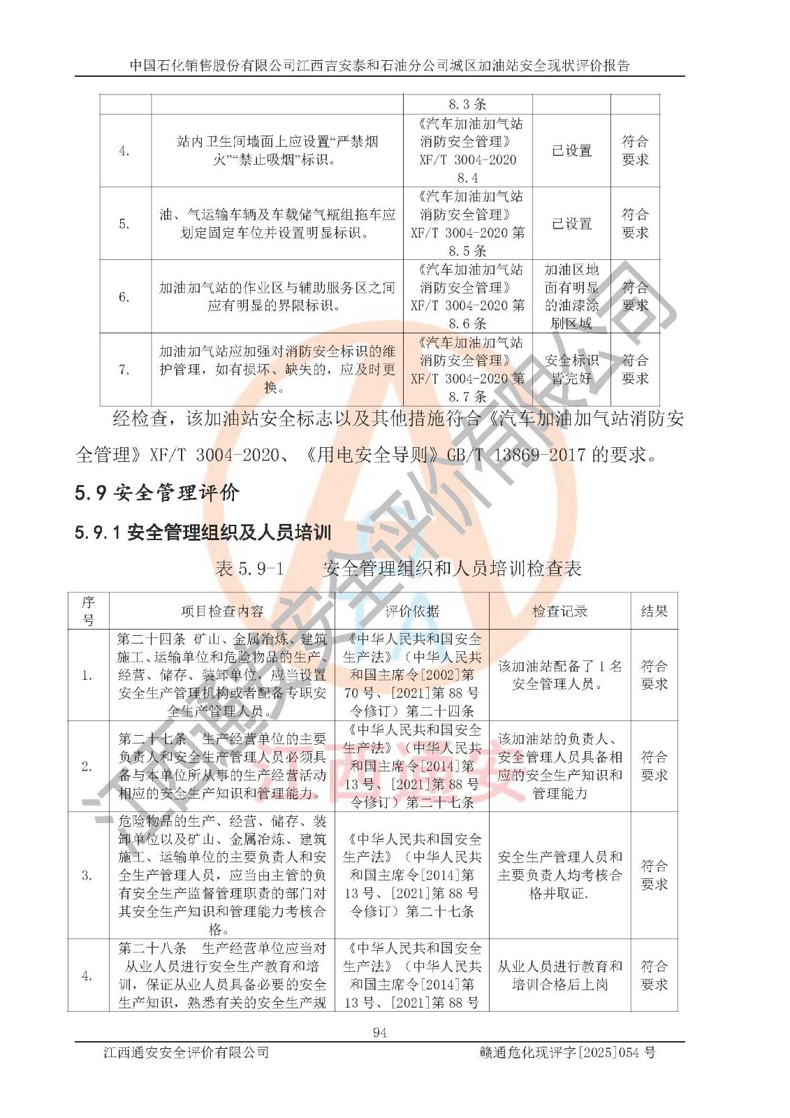 項(xiàng)目名稱 | 中國石化銷售股份有限公司江西吉安泰和石油分公司城區(qū)加油站 安全現(xiàn)狀評(píng)價(jià)報(bào)告 | ||||