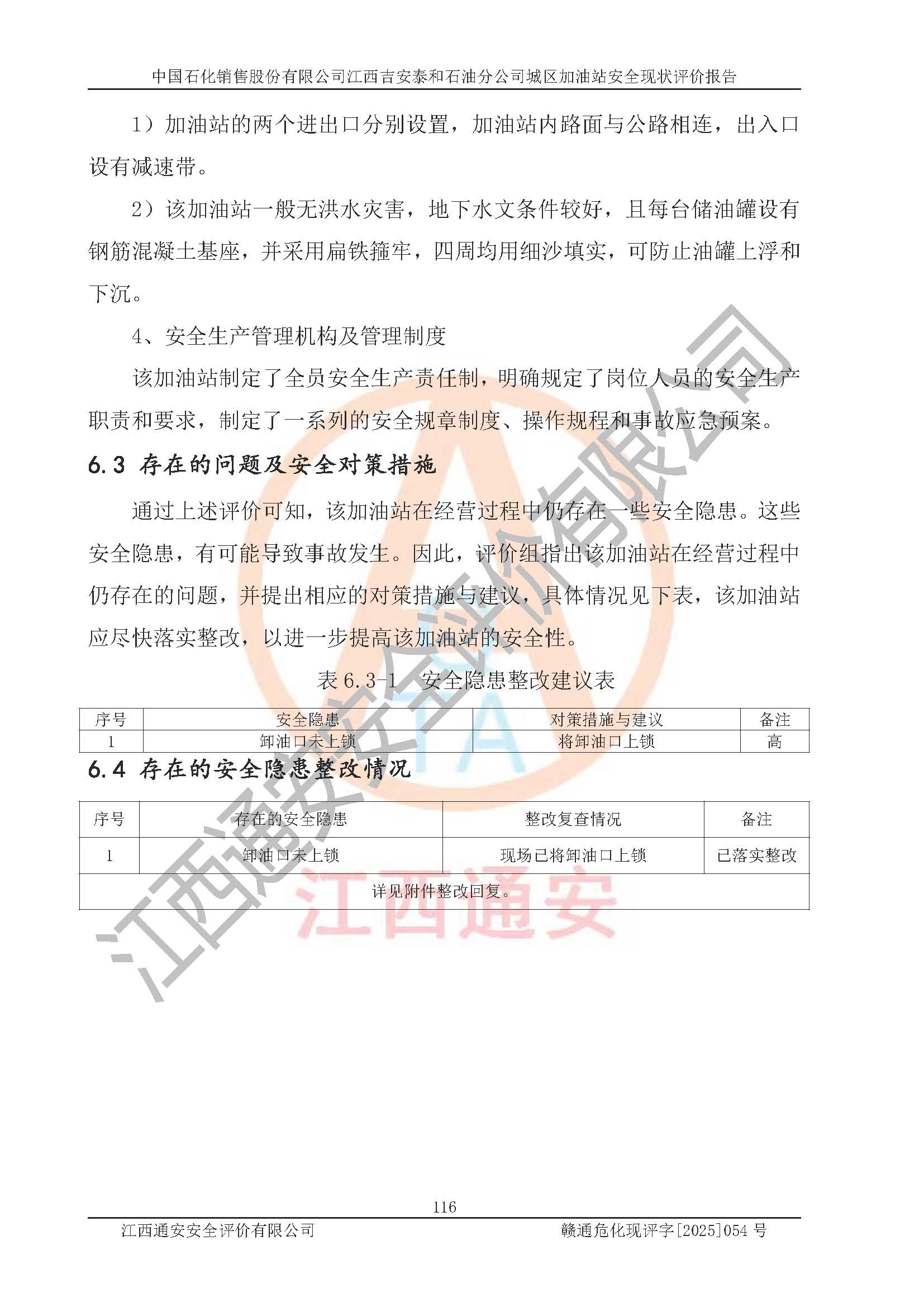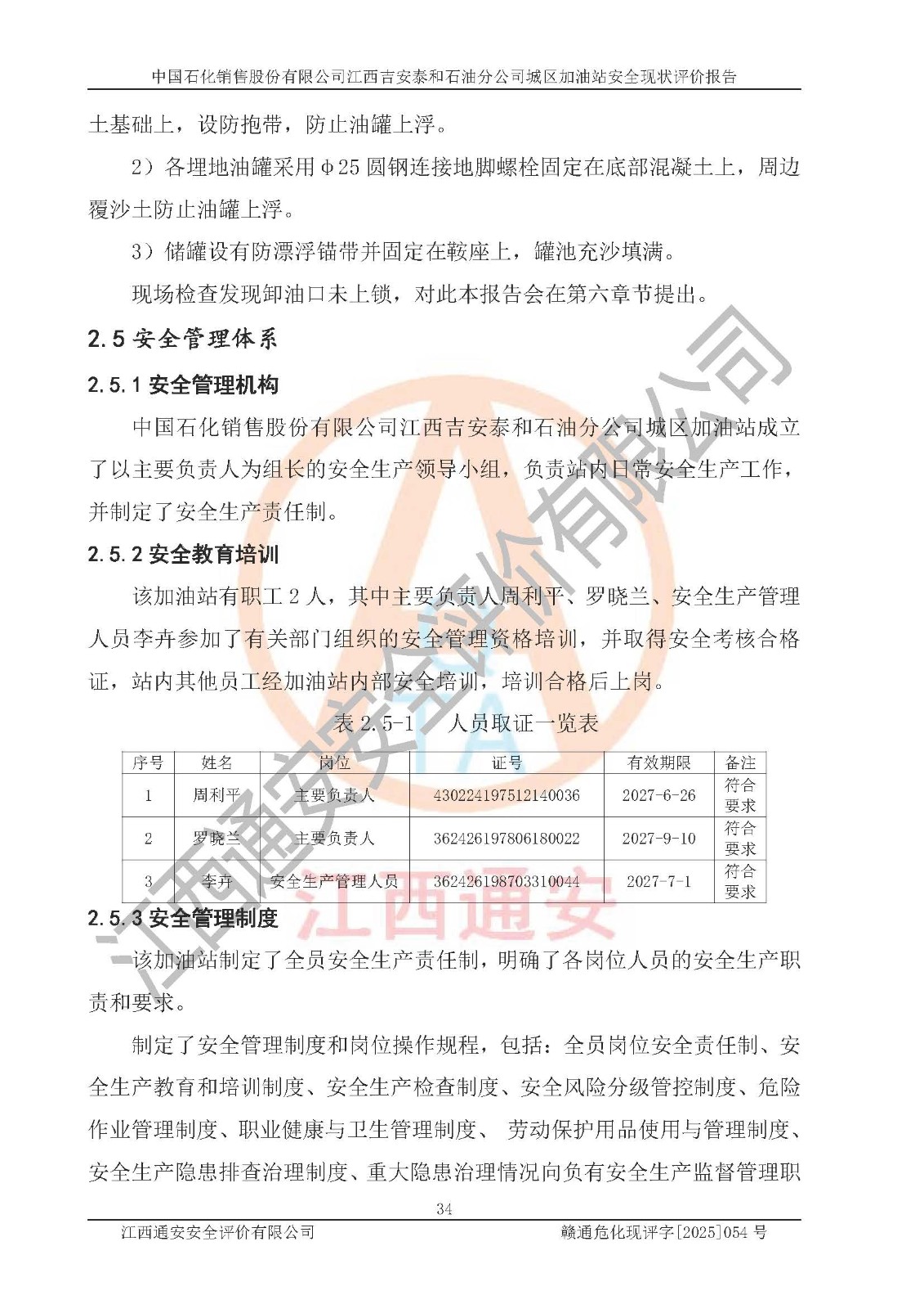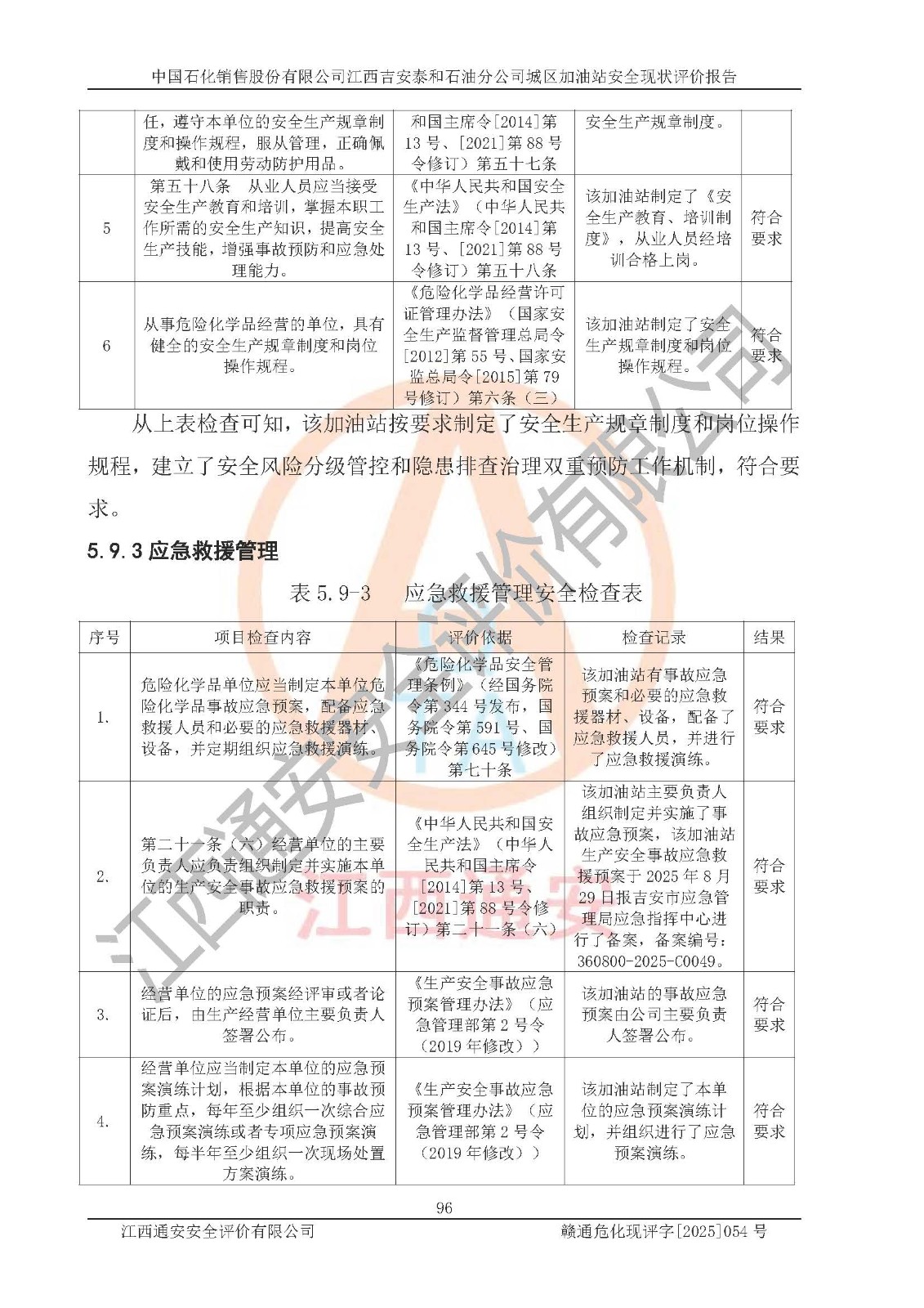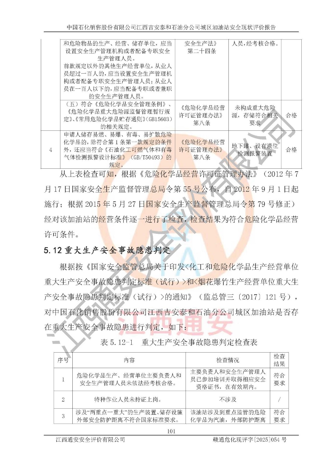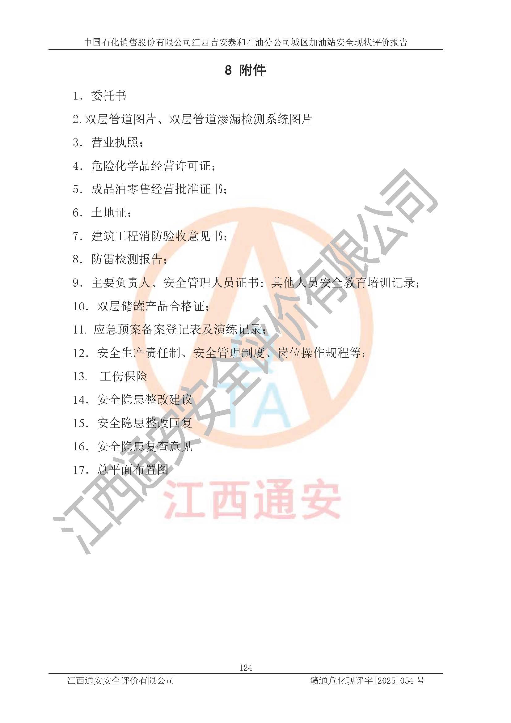 項(xiàng)目名稱 | 中國石化銷售股份有限公司江西吉安泰和石油分公司城區(qū)加油站 安全現(xiàn)狀評(píng)價(jià)報(bào)告 | ||||