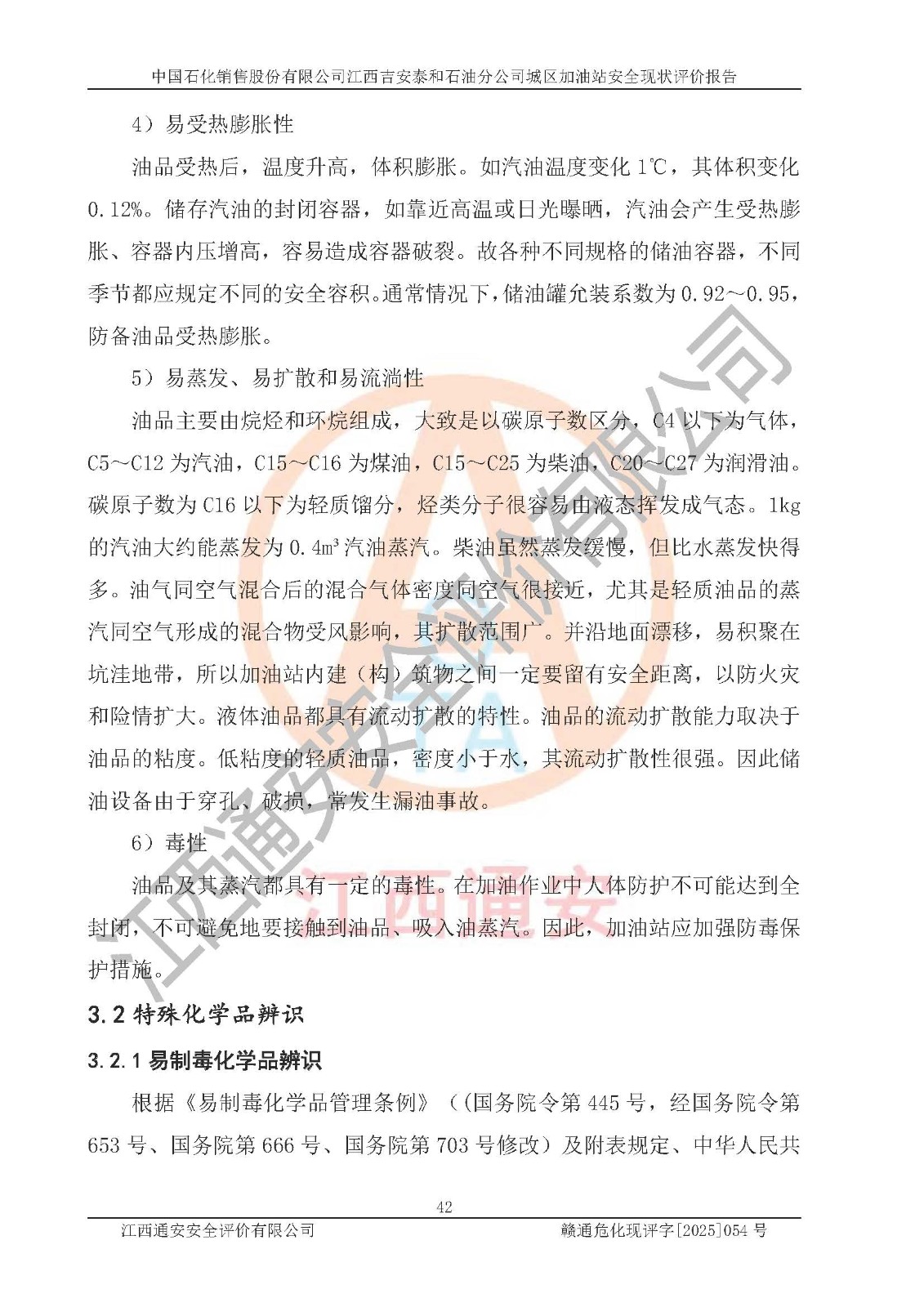 項(xiàng)目簡介 | 中國石化銷售股份有限公司江西吉安泰和石油分公司城區(qū)加油站于2003年6月5日經(jīng)吉安市市場監(jiān)督管理局核準(zhǔn)注冊成立,營業(yè)場所位于江西省吉安市泰和縣城工農(nóng)兵大道。類型:外商投資企業(yè)分公司,投資人:周利平,營業(yè)執(zhí)照統(tǒng)一社會(huì)信用代碼為:91360826767019030J。營業(yè)執(zhí)照核準(zhǔn)經(jīng)營范圍:許可項(xiàng)目:危險(xiǎn)化學(xué)品經(jīng)營,成品油倉儲(chǔ),成品油零售,成品油零售(不含危險(xiǎn)化學(xué)品),**類增值電信業(yè)務(wù),第二類增值電信業(yè)務(wù),第三類醫(yī)療器械經(jīng)營,出版物零售,**代理業(yè)務(wù),***零售,發(fā)電業(yè)務(wù)、輸電業(yè)務(wù)、供(配)電業(yè)務(wù),互聯(lián)網(wǎng)直播技術(shù)服務(wù),酒類經(jīng)營,食品銷售,小食雜,網(wǎng)絡(luò)文化經(jīng)營,藥品零售,燃?xì)饨?jīng)營,煙草制品零售,出版物批發(fā),旅游業(yè)務(wù),住宿服務(wù),餐飲服務(wù),港口經(jīng)營,保稅倉庫經(jīng)營,保稅物流中心經(jīng)營(依法須經(jīng)批準(zhǔn)的項(xiàng)目,經(jīng)相關(guān)部門批準(zhǔn)后在許可**期內(nèi)方可開展經(jīng)營活動(dòng),具體經(jīng)營項(xiàng)目和許可期限以相關(guān)部門批準(zhǔn)文件或許可證件為準(zhǔn))一般項(xiàng)目:成品油批發(fā)(不含危險(xiǎn)化學(xué)品),成品油倉儲(chǔ)(不含危險(xiǎn)化學(xué)品),辦公用品銷售,電池銷售,輪胎銷售,**類醫(yī)療器械銷售,第二類醫(yī)療器械銷售,低溫倉儲(chǔ)(不含危險(xiǎn)化學(xué)品等需許可審批的項(xiàng)目),電動(dòng)自行車銷售,寵物食品及用品批發(fā),電動(dòng)汽車充電基礎(chǔ)設(shè)施運(yùn)營,非電力家用器具銷售,化妝品批發(fā),化妝品零售,個(gè)人衛(wèi)生用品銷售,會(huì)議及展覽服務(wù),金銀制品銷售,集中式**充電站,普通貨物倉儲(chǔ)服務(wù)(不含危險(xiǎn)化學(xué)品等需許可審批的項(xiàng)目),人力資源服務(wù)(不含職業(yè)中介活動(dòng)、勞務(wù)派遣服務(wù)),食品互聯(lián)網(wǎng)銷售(僅銷售預(yù)包裝食品),食用農(nóng)產(chǎn)品零售,外賣遞送服務(wù),消毒劑銷售(不含危險(xiǎn)化學(xué)品),新能源汽車換電設(shè)施銷售,站用加氫及儲(chǔ)氫設(shè)施銷售,鐘表銷售,**化學(xué)產(chǎn)品銷售(不含危險(xiǎn)化學(xué)品),保健食品(預(yù)包裝)銷售,針紡織品銷售,服裝服飾零售,日用品銷售,五金產(chǎn)品零售,家用電器銷售,單用途商業(yè)預(yù)付卡代理銷售,電子產(chǎn)品銷售,潤滑油銷售,石油制品銷售(不含危險(xiǎn)化學(xué)品),戶外用品銷售,汽車銷售,摩托車及零配件零售,摩托車及零配件批發(fā),農(nóng)副產(chǎn)品銷售,化肥銷售,農(nóng)用薄膜銷售,安防設(shè)備銷售,禮品花卉銷售,計(jì)算機(jī)軟硬件及輔助設(shè)備零售,橡膠制品銷售,機(jī)械設(shè)備銷售,珠寶首飾批發(fā),珠寶首飾零售,玩具銷售,樂器批發(fā),樂器零售,家具銷售,建筑材料銷售,機(jī)動(dòng)車充電銷售,技術(shù)服務(wù)、技術(shù)開發(fā)、技術(shù)咨詢、技術(shù)交流、技術(shù)**、技術(shù)推廣,機(jī)動(dòng)車修理和維護(hù),物業(yè)管理,停車場服務(wù),居民日常生活服務(wù),票務(wù)代理服務(wù),廣告制作,廣告發(fā)布,廣告設(shè)計(jì)、代理,洗車服務(wù),信息咨詢服務(wù)(不含許可類信息咨詢服務(wù)),軟件開發(fā),貨物進(jìn)出口,食品進(jìn)出口,技術(shù)進(jìn)出口,進(jìn)出口代理,汽車裝飾用品銷售,租賃服務(wù)(不含許可類租賃服務(wù)),小微型客車租賃經(jīng)營服務(wù)(除依法須經(jīng)批準(zhǔn)的項(xiàng)目外,憑營業(yè)執(zhí)照依法自主開展經(jīng)營活動(dòng))。 中國石化銷售股份有限公司江西吉安泰和石油分公司城區(qū)加油站設(shè)有1臺(tái)0#柴油/0#柴油雙槍加油機(jī)、1臺(tái)95#汽油/92#汽油/92#汽油/98#汽油4槍加油機(jī)、1臺(tái)98#汽油/92#汽油/92#汽油/95#汽油4槍加油機(jī)、1臺(tái)92#汽油/95#汽油/95#汽油/98#汽油4槍加油機(jī)布置;1臺(tái)30m30#柴油雙層埋地儲(chǔ)罐、1臺(tái)30m392#汽油雙層埋地儲(chǔ)罐、1臺(tái)30m398#汽油雙層埋地儲(chǔ)罐、1臺(tái)30m395#汽油雙層埋地儲(chǔ)罐,油品*大儲(chǔ)存能力為105m3(柴油罐容積折半計(jì)入油罐總?cè)莘e),屬二級(jí)加油站,汽油卸油、加油設(shè)置了油氣回收系統(tǒng)。 中國石化銷售股份有限公司江西吉安泰和石油分公司城區(qū)加油站于2022年10月24日經(jīng)吉安市應(yīng)急管理局核準(zhǔn),換發(fā)了新的《危險(xiǎn)化學(xué)品經(jīng)營許可證》,證書編號(hào):贛吉?;?/span>經(jīng)字[2022]360800000057號(hào),許可范圍:成品油。**期2022年10月31日至2025年10月30日。 中國石化銷售股份有限公司江西吉安泰和石油分公司城區(qū)加油站2023年12月4日經(jīng)吉安市商務(wù)局核準(zhǔn),換取了新的《成品油零售經(jīng)營批準(zhǔn)證書》,證書編號(hào):油零售證書第吉0321號(hào),批準(zhǔn)從事成品油(汽油、柴油)零售業(yè)務(wù)。證書**期至2023年12月4日至2028年12月3日。 | ||||