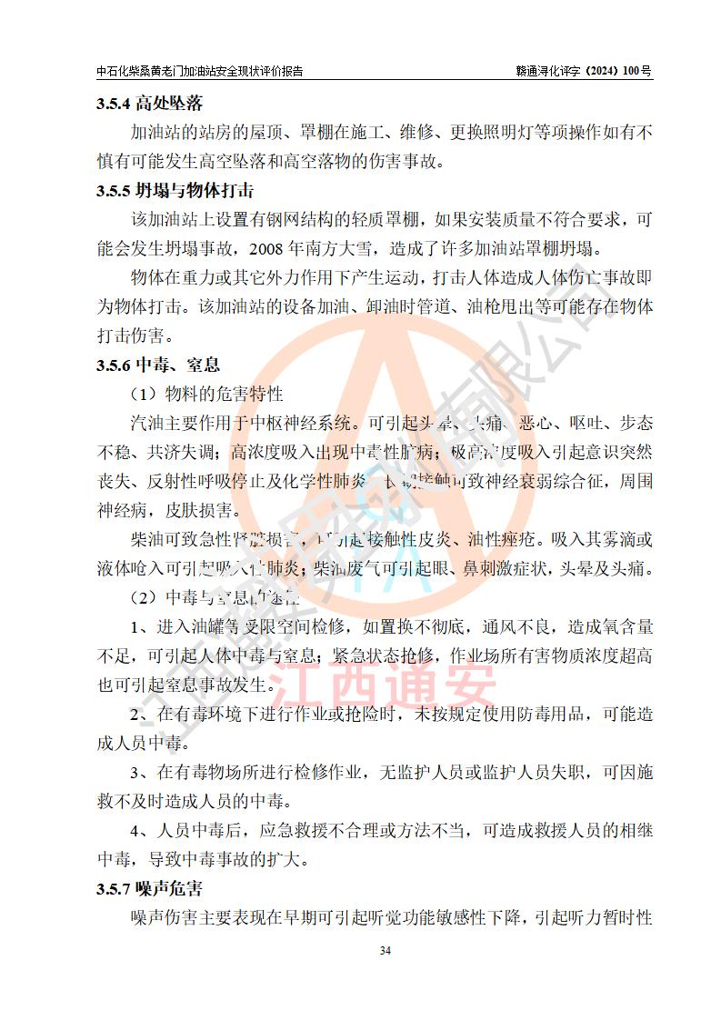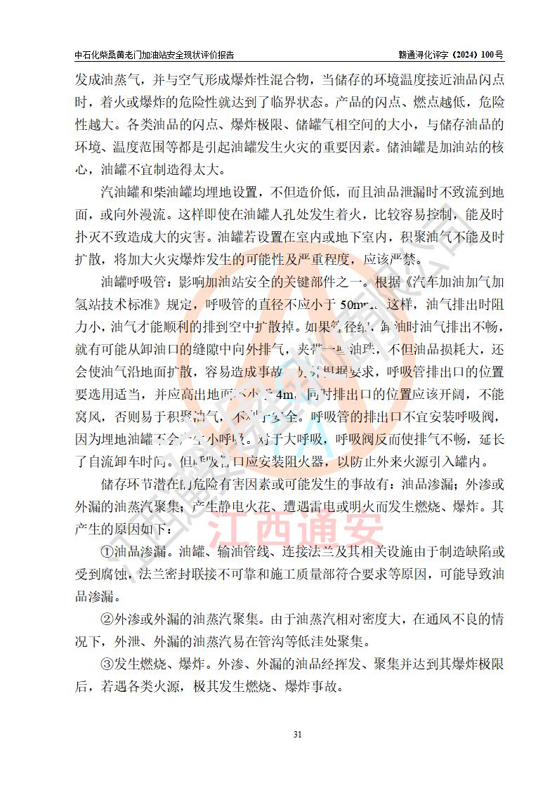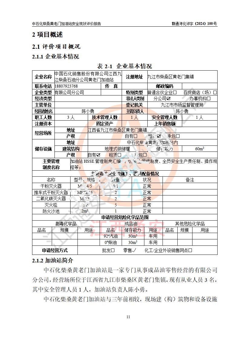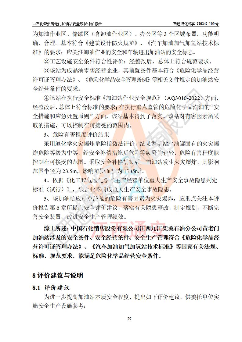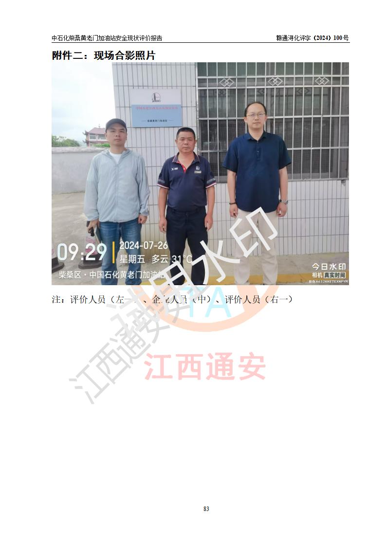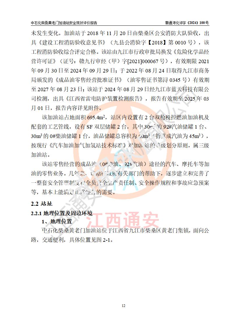評價報告名稱 | 中國石化銷售股份有限公司江西九江柴桑石油分公司黃老門加油站安全現狀評價報告 | |||