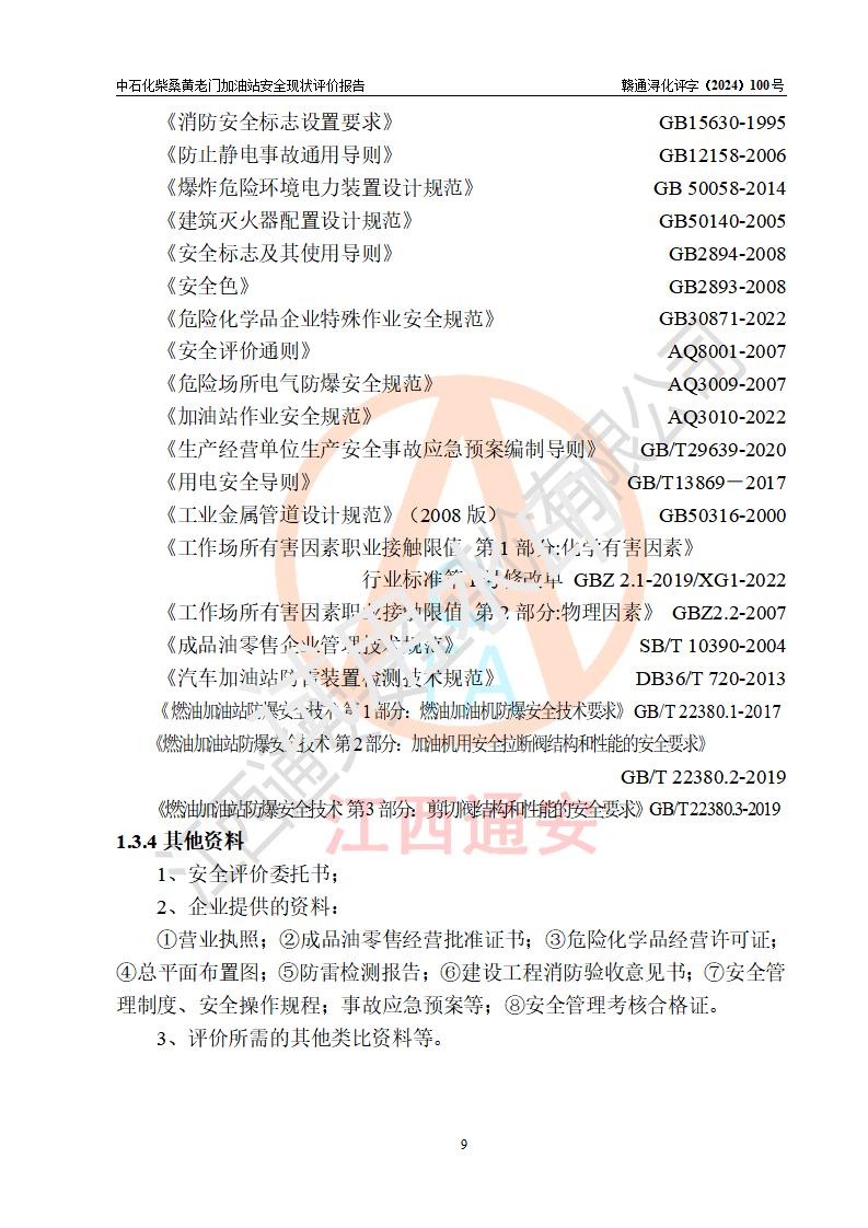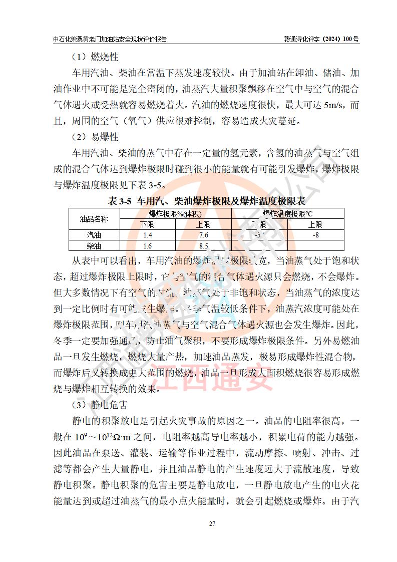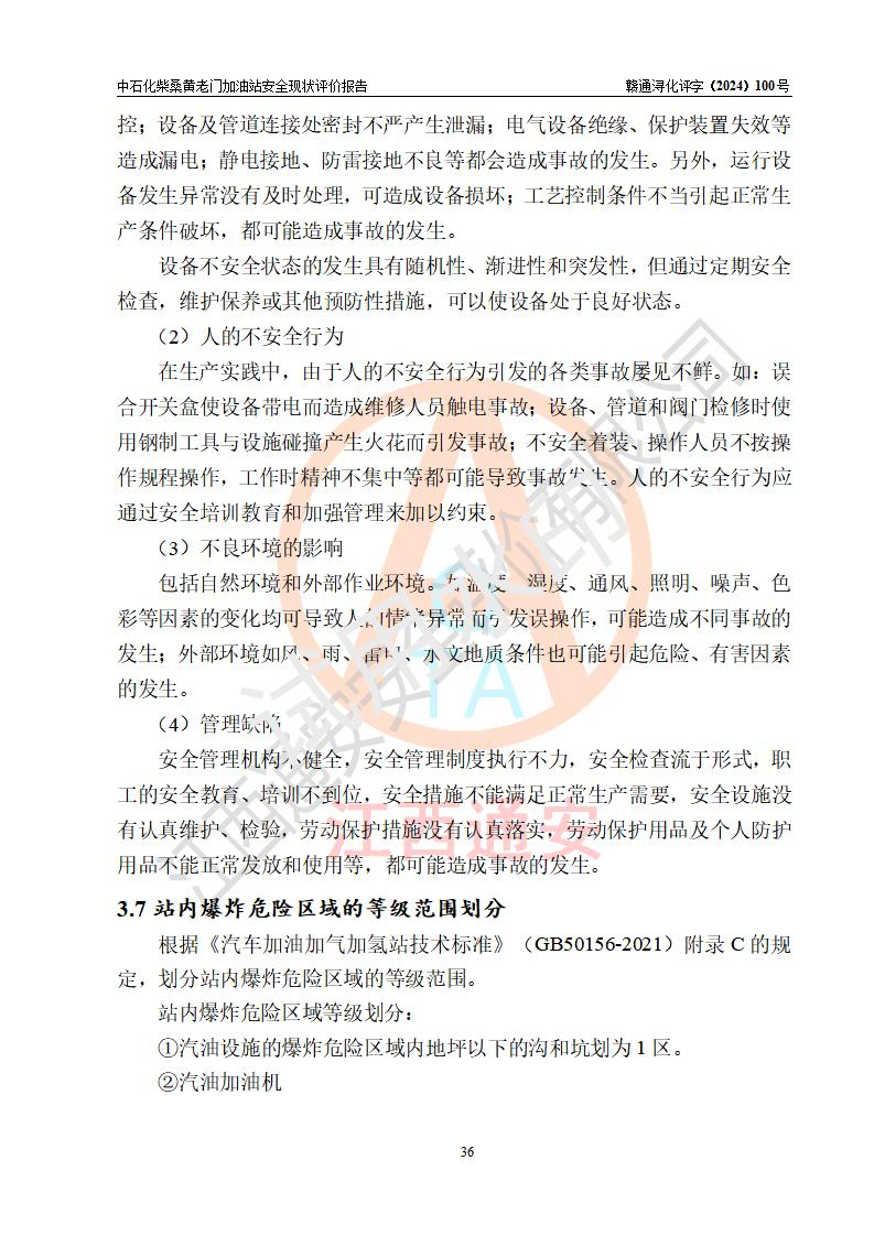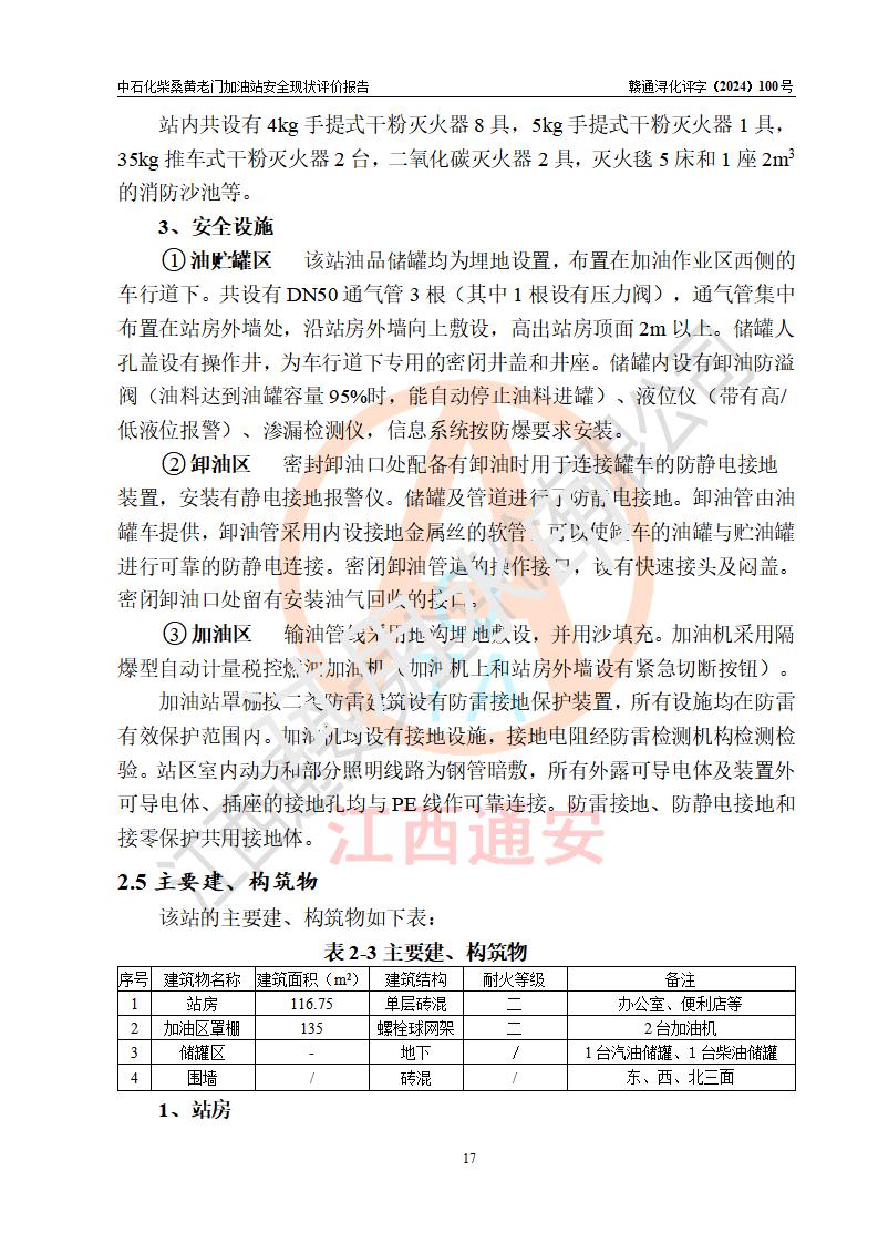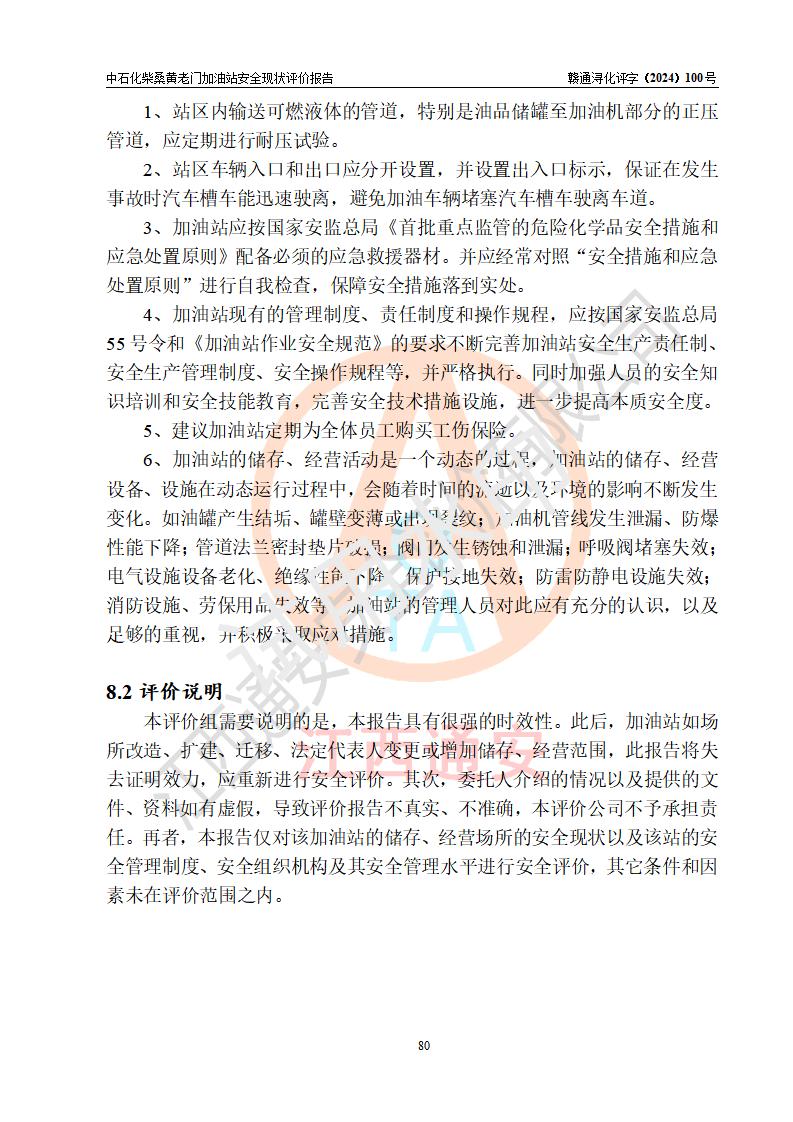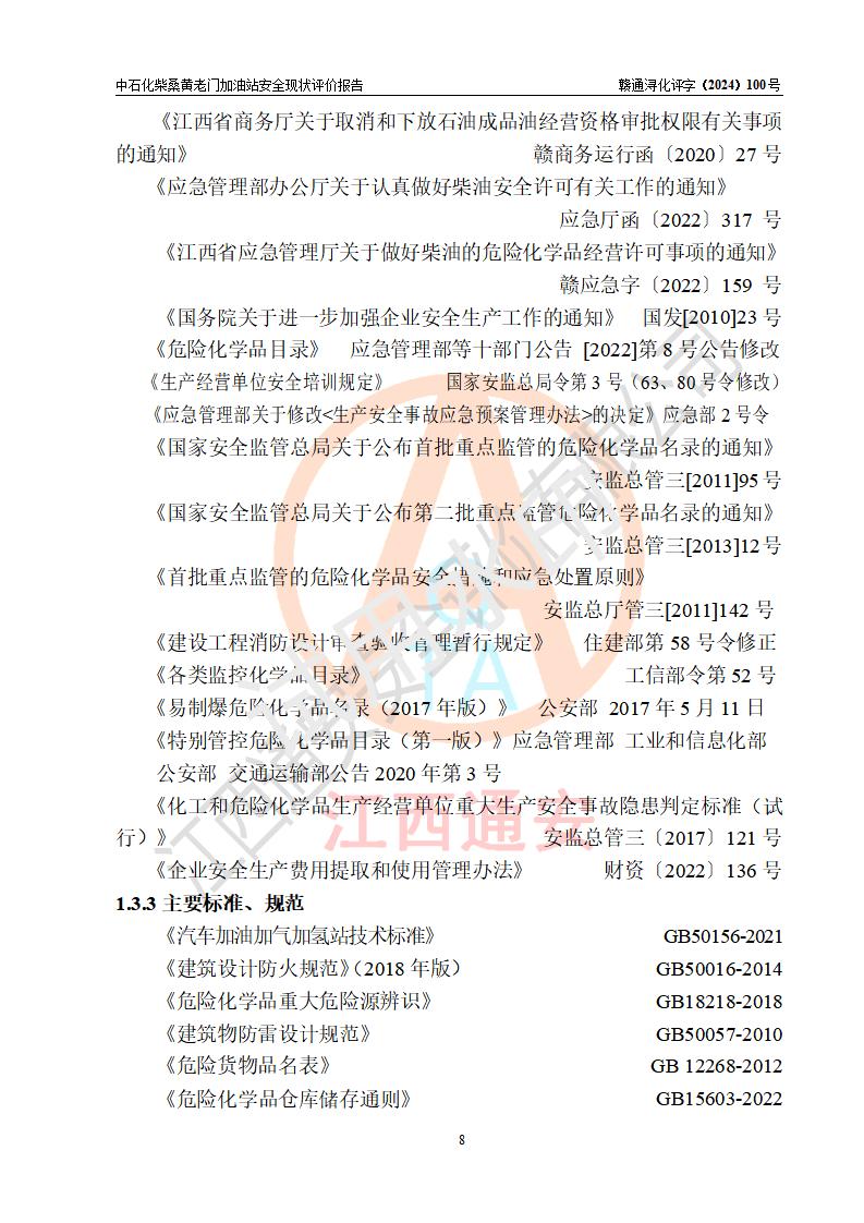評價報告名稱 | 中國石化銷售股份有限公司江西九江柴桑石油分公司黃老門加油站安全現狀評價報告 | |||