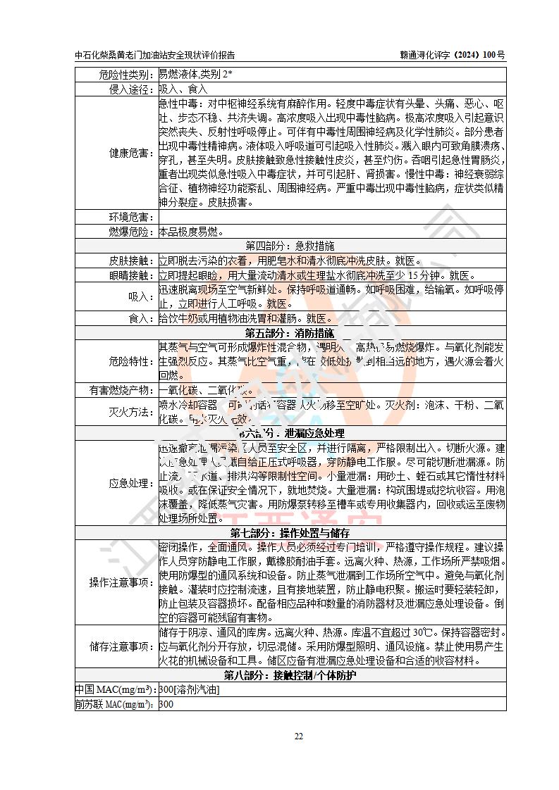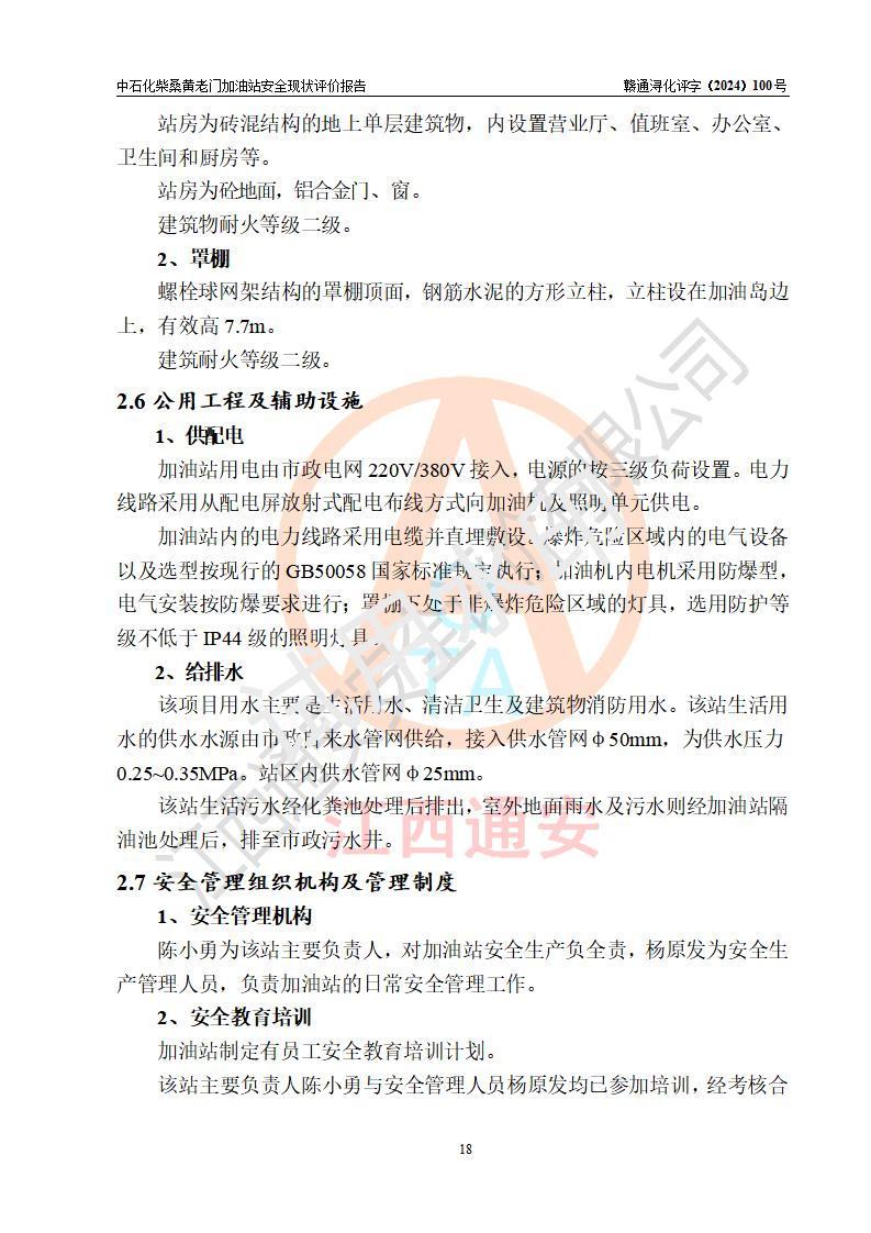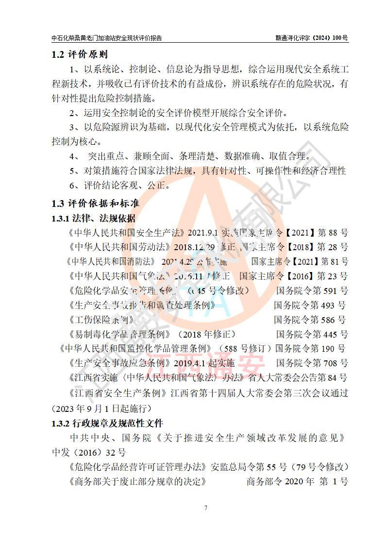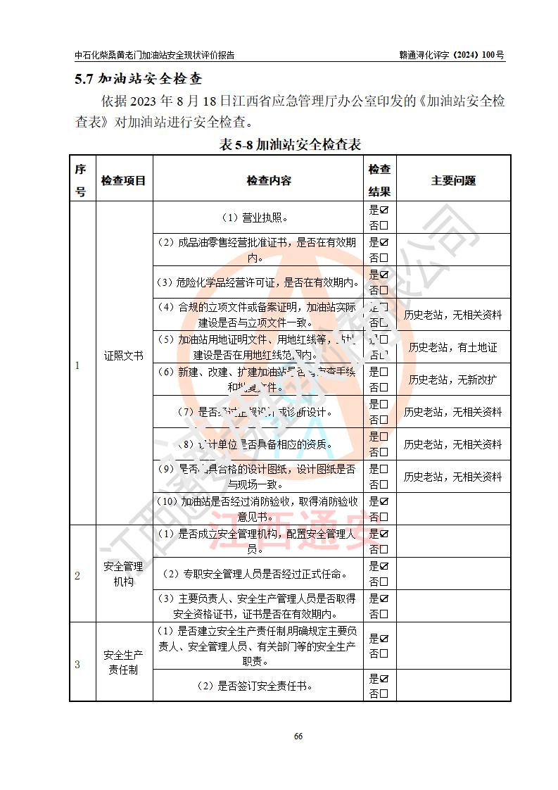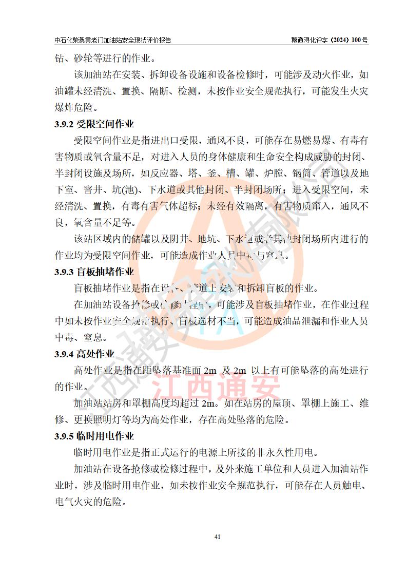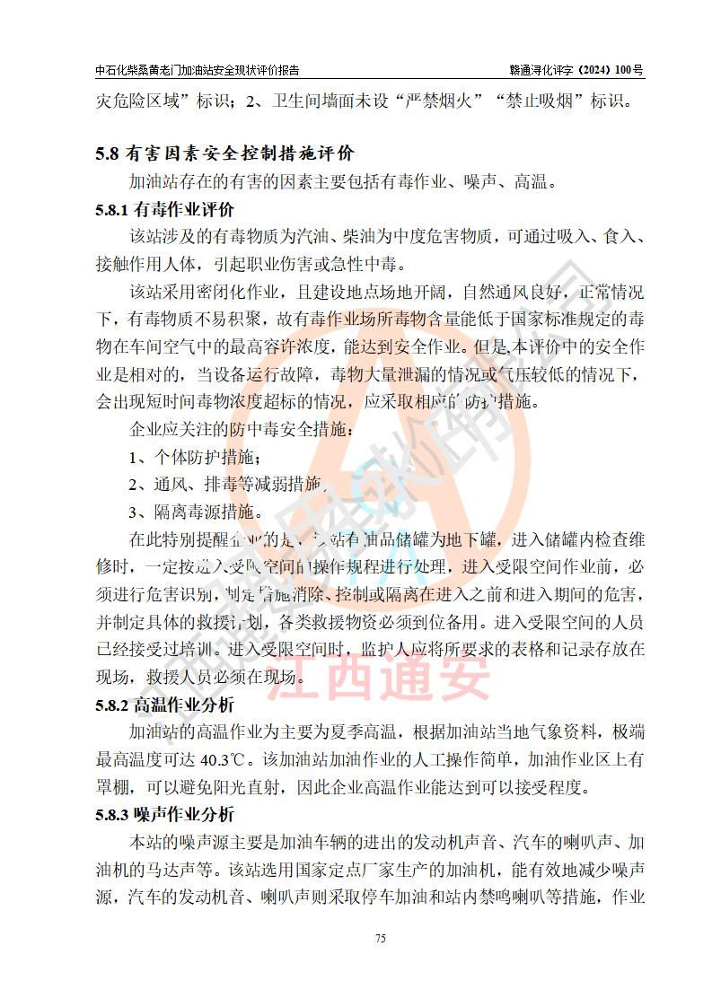 評價報告名稱 | 中國石化銷售股份有限公司江西九江柴桑石油分公司黃老門加油站安全現狀評價報告 | |||